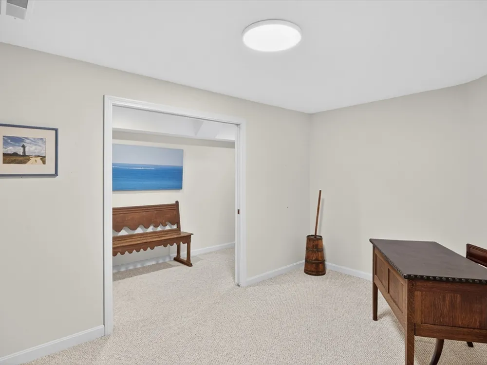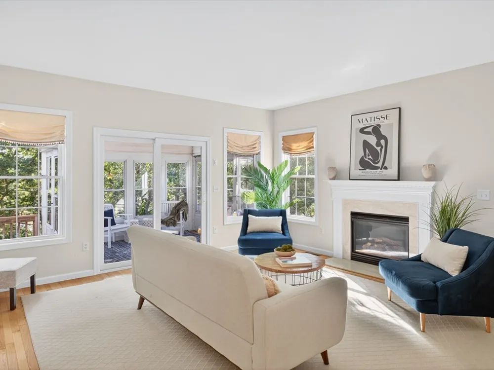 Stunning + bright "Milton" home w/custom window treatments located in the 55+ Great Island neighborhood in The Pinehills. Elegant dining room w/ hardwood flooring, crown trim + chair-rail w/a bay window. Living room w/ feature wall, hardwood flooring + slider to spacious trex deck w/private pond views. First floor primary suite has ensuite bath + shower + walk-in closet. The laundry room + office add to the first level living. Dine in kitchen w/SS appliances. Lovely staircase greets you at the front door and leads you to second floor guest suite w/ expansive den + bedroom w/ensuite bath and plenty of privacy. Bright walkout basement w/glass slider + 2 large windows and a bedroom and additional flex space. Enjoy amenities nearby at Overlook Clubhouse (1 min stroll via walking path) with indoor pool + jacuzzi, gym, billiards room, walking trails, tennis, pickle ball and bocce. Great Island Pond (.2 miles) & Stonebridge Club all part of HOA, w/ snow + trash removal. Tesla charger inc.