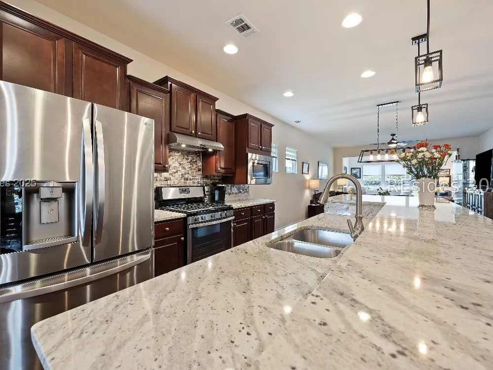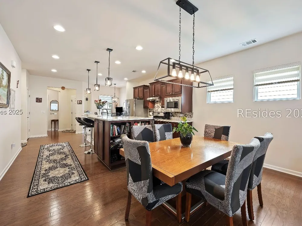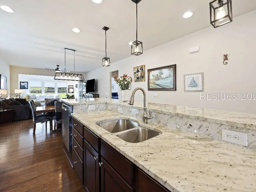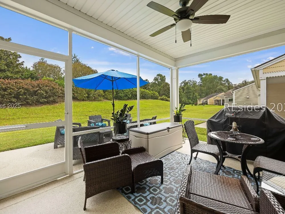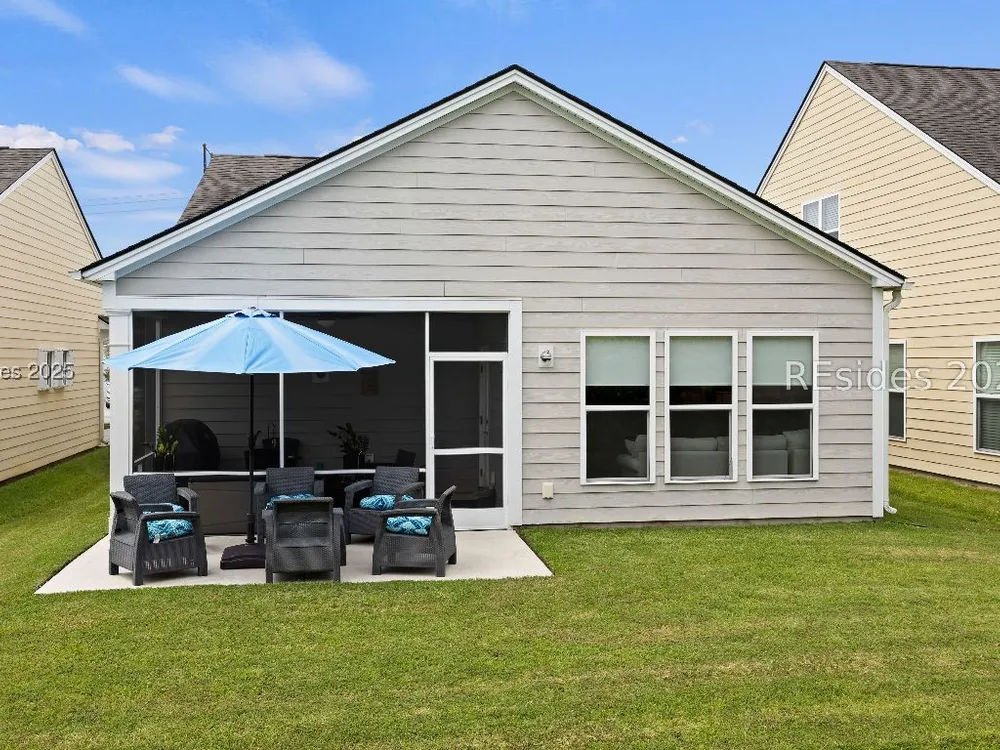 Welcome to this impeccably maintained Sun City Steel Creek model, built in 2015 and located in the highly desirable Beaufort County. This thoughtfully designed home blends comfort, style, and function featuring two spacious bedrooms, an extended sunroom perfect for year-round enjoyment, and a screened lanai that opens to a tranquil patio overlooking lush, mature landscaping. Enjoy upgraded all-wood flooring throughout, elegant granite countertops with a custom backsplash, premium lighting fixtures, and high-end cabinetry with pull-out drawers and pantry shelving for easy organization. This home was built for relaxed, effortless living and offers a move-in ready experience with every detail meticulously cared for. Whether you're entertaining guests, enjoying your morning coffee in the sunroom, or unwinding in the private backyard, this home delivers. Don't miss this rare opportunity to own a home that combines location, luxury, and lifestyle. Schedule your private tour today.