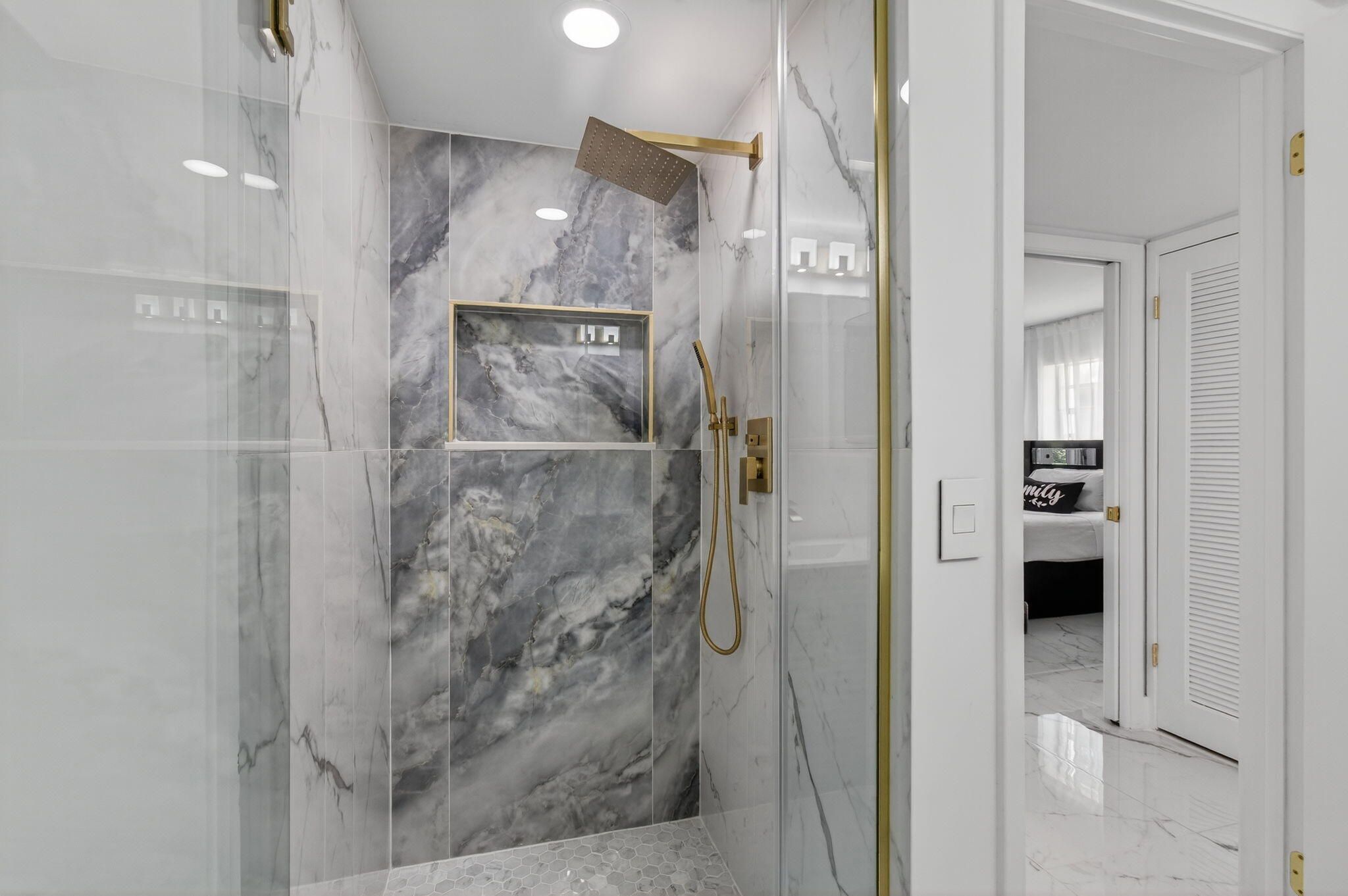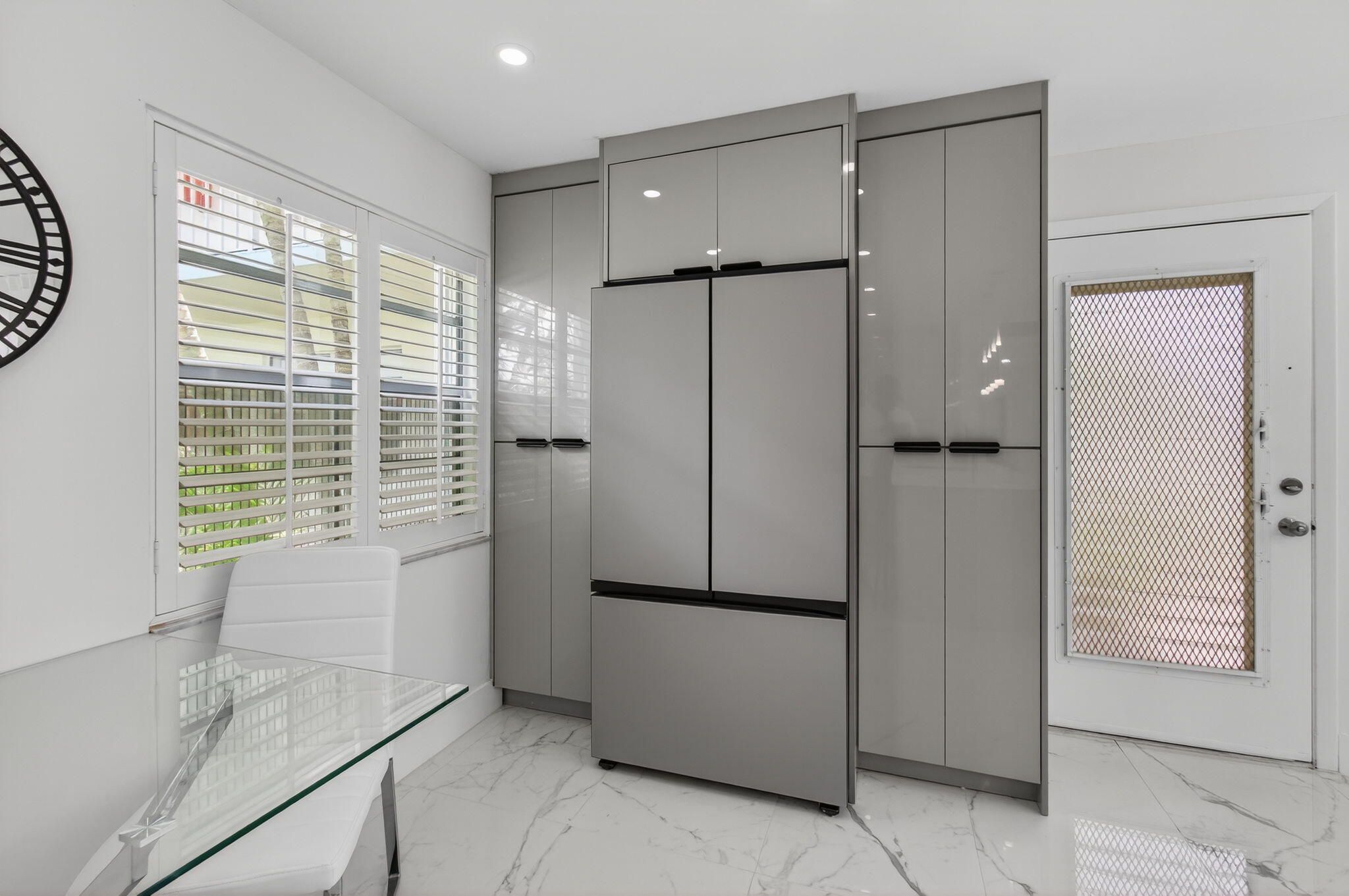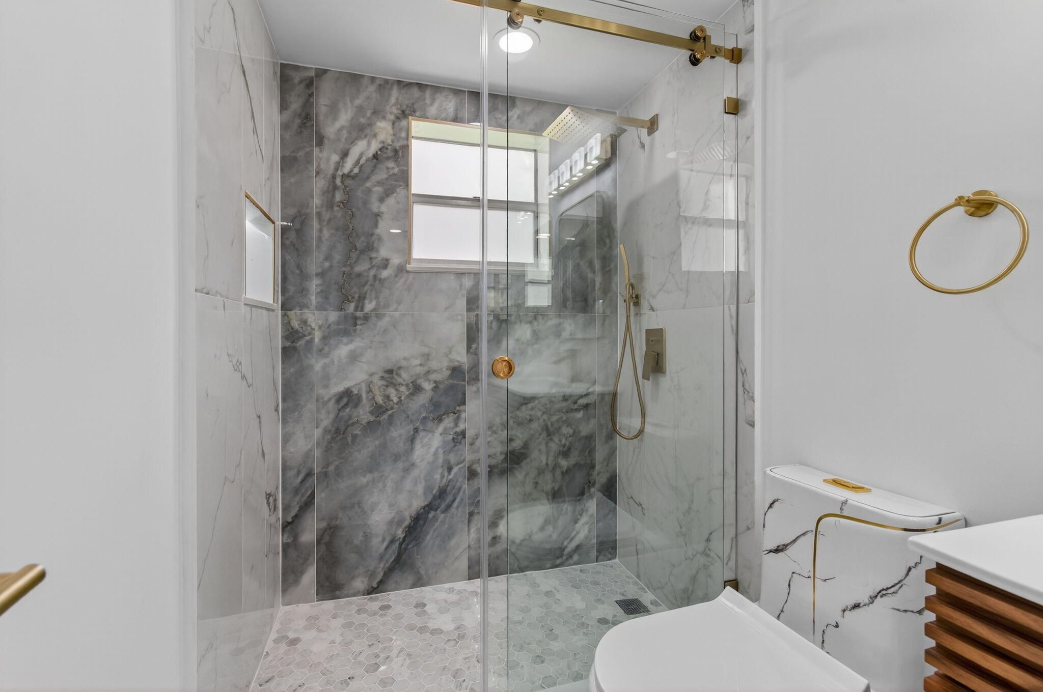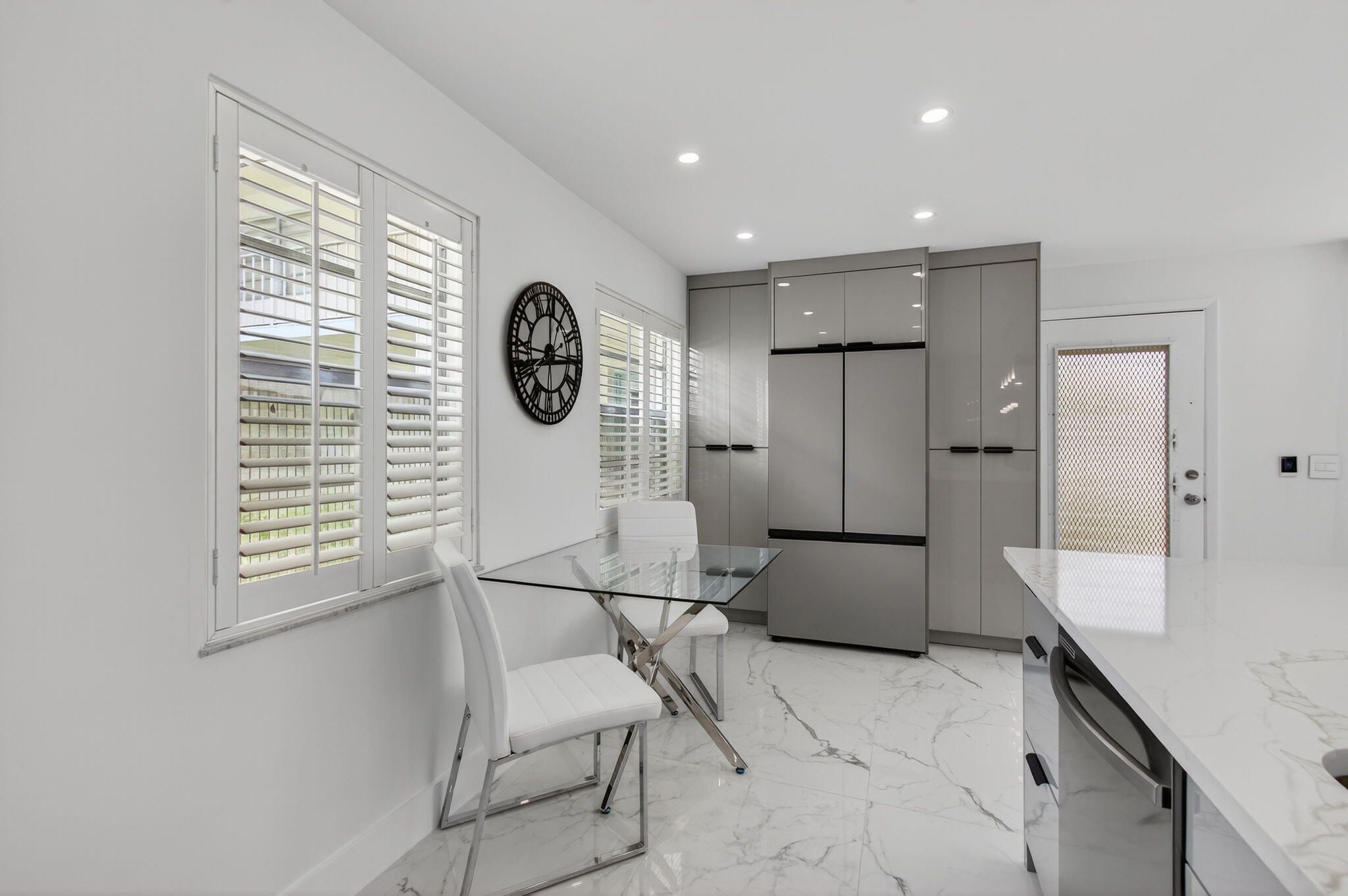 Prepare to be impressed--this 1st-floor 2 bed, 2 bath Kings Point condo showcases one of the most stunning top-to-bottom designer renovations in the community, offering pure modern luxury. The open-concept layout features tile floors throughout, a gourmet kitchen with quartz counters, large counter peninsula, stainless steel appliances, and elegant lighting. The living room boasts a custom accent wall with fireplace and mounted TV, while spa-inspired baths and spacious bedrooms create comfort and style. A new washer & dryer add everyday convenience, and the enclosed patio with tranquil garden view is the perfect spot to relax. Kings Point offers resort-style living with golf, pools, tennis, pickleball, fitness, clubhouse, theater, dining, and more--just minutes from downtown Delray Beach.