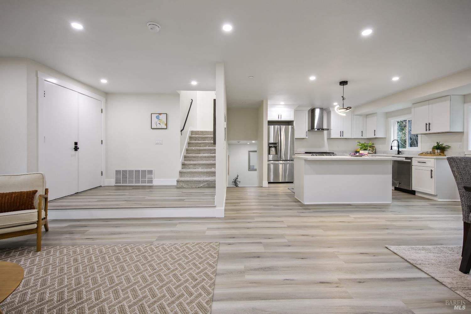 Welcome to this beautifully renovated tri-level home in the desirable 55+ Leisure Town community. Thoughtfully redesigned to improve flow and functionality, this 4-bedroom, 3-bath residence blends classic character with modern upgrades throughout. The reconfigured kitchen features an island, added window with backyard views, and an enhanced layout that creates seamless connection between living spaces. Updated flooring, contemporary lighting, and fresh interior and exterior paint provide a bright, cohesive feel. A new roof, energy-efficient windows, updated HVAC, and whole house fan add comfort and efficiency. The versatile tri-level design offers excellent separation of space, including a bedroom and full bathroom on the lower garage levelideal for guests, extended family, or multigenerational living. All three full bathrooms have been updated, and bedrooms feature new carpeting. Turnkey and thoughtfully improved, this home also includes access to Leisure Town's amenities, offering a lifestyle of comfort and ease.