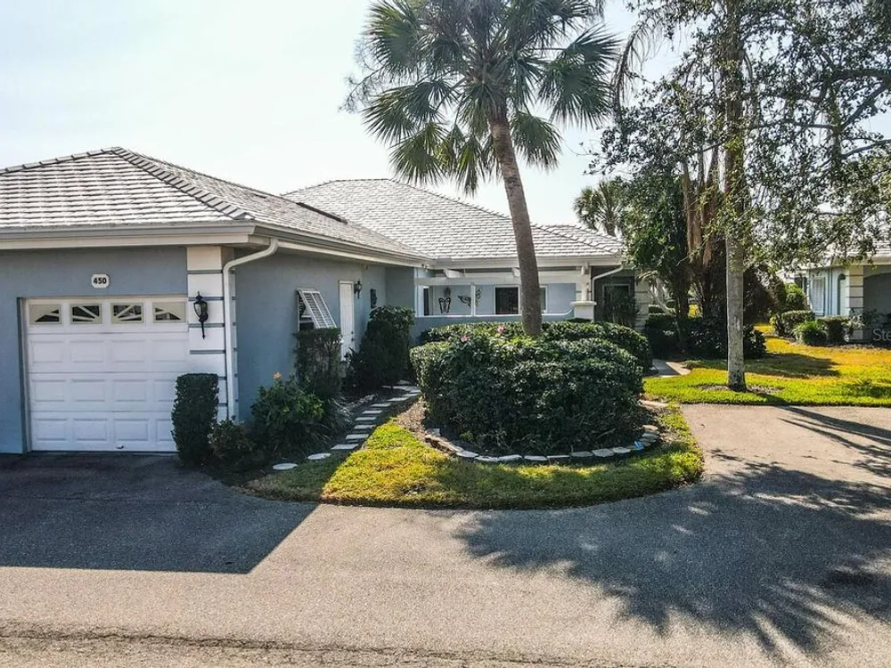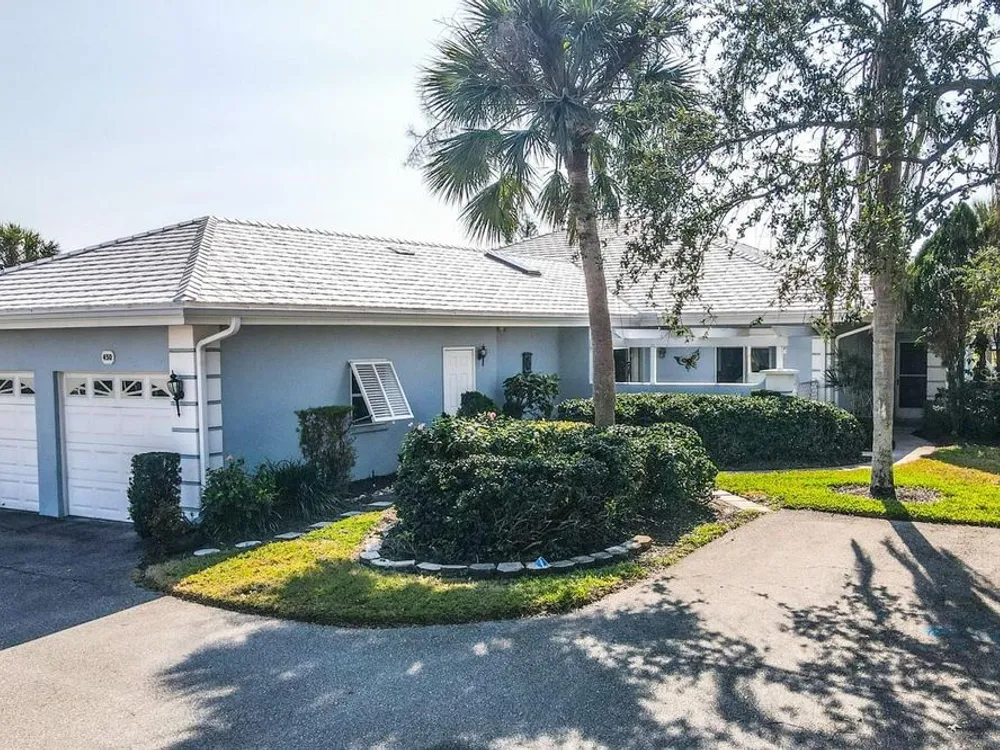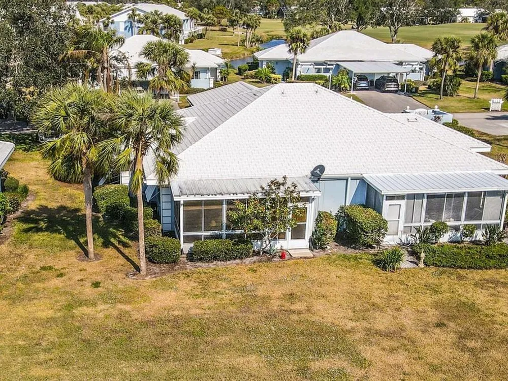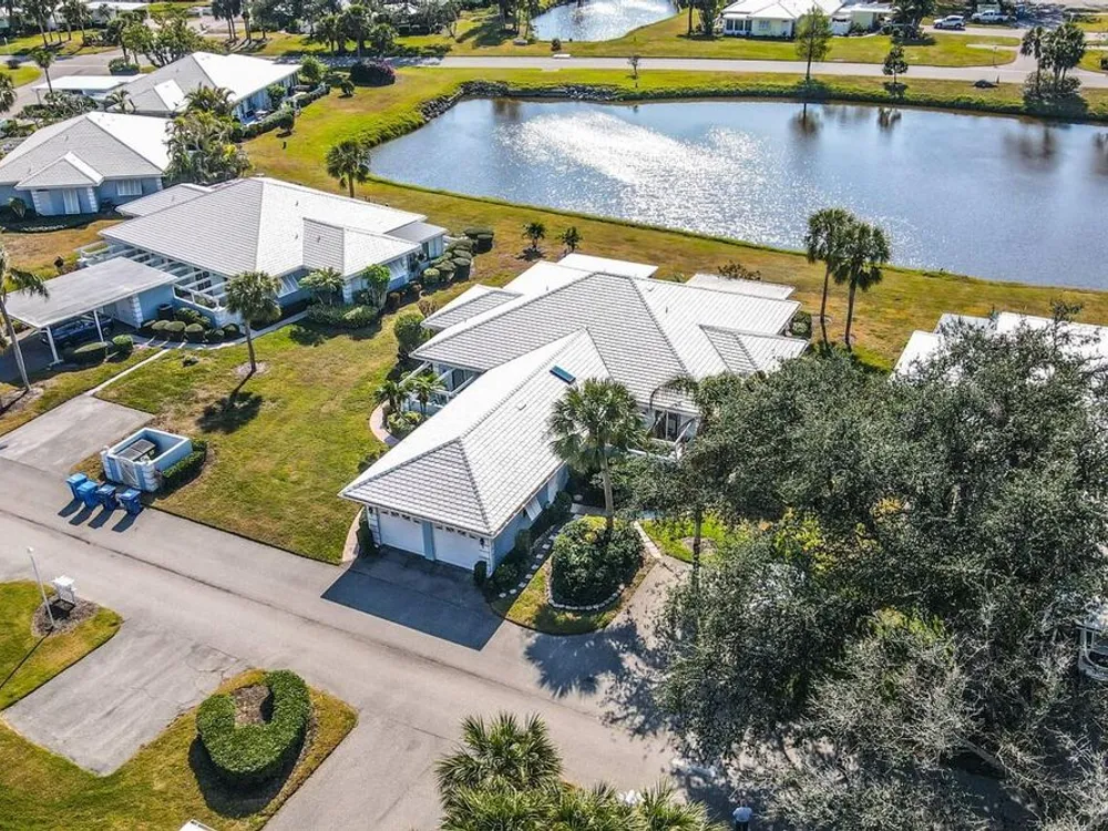 This charming 2 Bedroom Paired Villa with a Den located in Augusta Villas at The Plantation Golf and Country Club offers a serene living experience with picturesque sparkling Lake views. A unique attached 1 car Garage allows for additional Storage perfect for golf clubs, beach gear and all sporting equipment. The Gourmet Kitchen features modern Appliances, granite countertops and ample wood Cabinetry complete with an Island perfect for prepping the evening dinners. Sliding Glass doors lead into a private Courtyard where your Gas Grill is easily accessed. The Attached Glass Enclosed Sun Room invites you to relax with your morning coffee while enjoying the beautiful Southern lake views. Both Bedrooms are generously sized with the Main Bedroom offering an attached Den complete with Sliding Doors and a Skylight providing lots of natural light. This home comes partially furnished (please see the list attached). Augusta Villas all have New Roofs and have the privilege of 2 Community Pools where neighbors gather to relax and catch up on the latest news. If Golf, Pickleball, Tennis, Fitness or Bocce are your passion then Membership is available at The Plantation Golf and Country Club.
