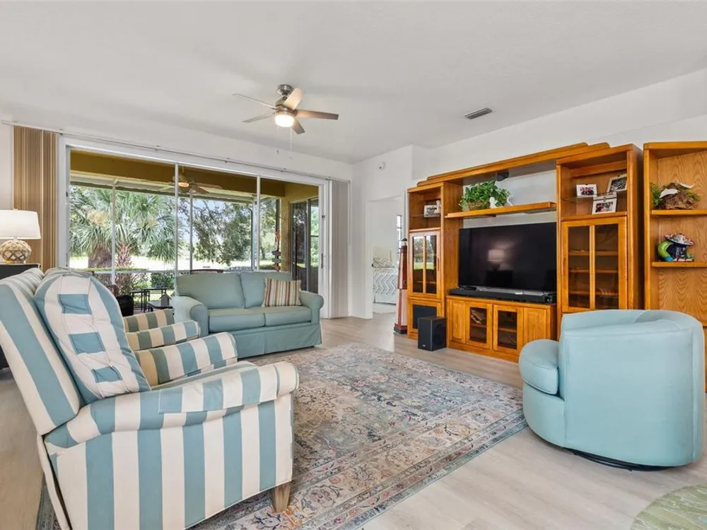 BACKING ONTO HOLE #1. Welcome to 4500 Golf Club Lane, a beautifully maintained fully furnished 3-bedroom, 2-bath home offering 1,710 sq. ft. of living space in the highly sought-after Silverthorn Golf & Country Club community. Perfectly positioned with a backyard view of Hole #1, this residence blends comfort, style, and a true golfer’s lifestyle. Step inside to find an open, light-filled floor plan featuring spacious living and dining areas, ideal for both entertaining and everyday living. The well-appointed kitchen offers ample counter space, generous cabinetry, and a breakfast nook overlooking the fairway. The primary suite features a walk-in closet and a private en-suite bath with a soaking tub and separate shower. Two additional bedrooms provide flexibility for family, guests, or a home office. Enjoy Florida living at its finest from the covered lanai and backyard, where serene views of the golf course create the perfect setting for morning coffee or evening relaxation. Silverthorn Golf & Country Club is a gated community offering resort-style amenities, including an 18-hole championship golf course, clubhouse, pool, tennis courts, fitness center, and more. Conveniently located near shopping, dining, and major highways, this home truly has it all.