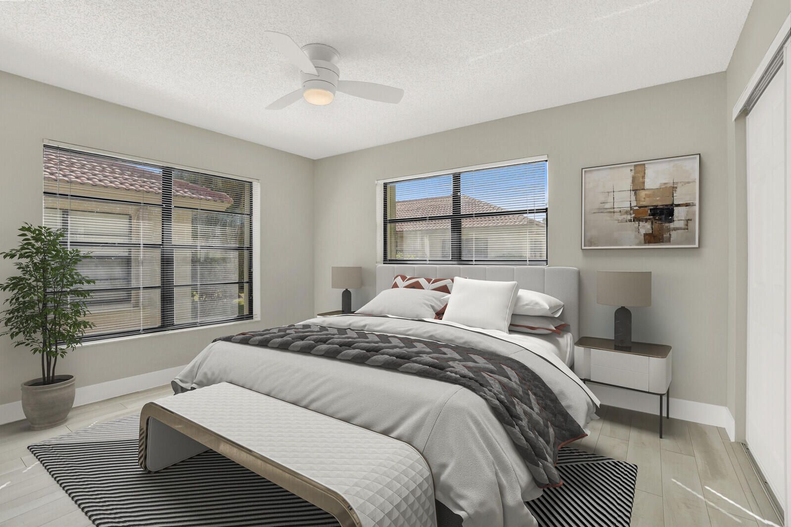 Beautifully renovated 2-bedroom, 2-bath villa with a 1-car garage in the highly desirable 55+ gated community of Bent Tree Villas West. This move-in-ready residence features a bright, open floor plan with tasteful modern updates, including fully renovated kitchen and bathrooms, spacious living areas, and a walk-in closet in the primary bedroom. An enclosed Florida room overlooks expansive green space, creating a peaceful and private setting ideal for relaxing or entertaining. Enjoy truly maintenance-free living, as the association covers cable, water, sewer, trash, roof and gutter maintenance, landscaping, exterior building upkeep, and building insurance. Residents enjoy access to a saltwater pool, clubhouse, library, billiards room, and a full calendar of social activities in this active and welcoming community. Ideally located just minutes from shopping, dining, medical centers, Tri-Rail, Brightline, I-95, and the Florida Turnpike. Beautiful ocean beaches, downtown Delray Beach, and Palm Beach International Airport are all within easy reach. This is a rare opportunity to own a stylish, low-maintenance villa in one of Boynton Beach's best-kept secrets.