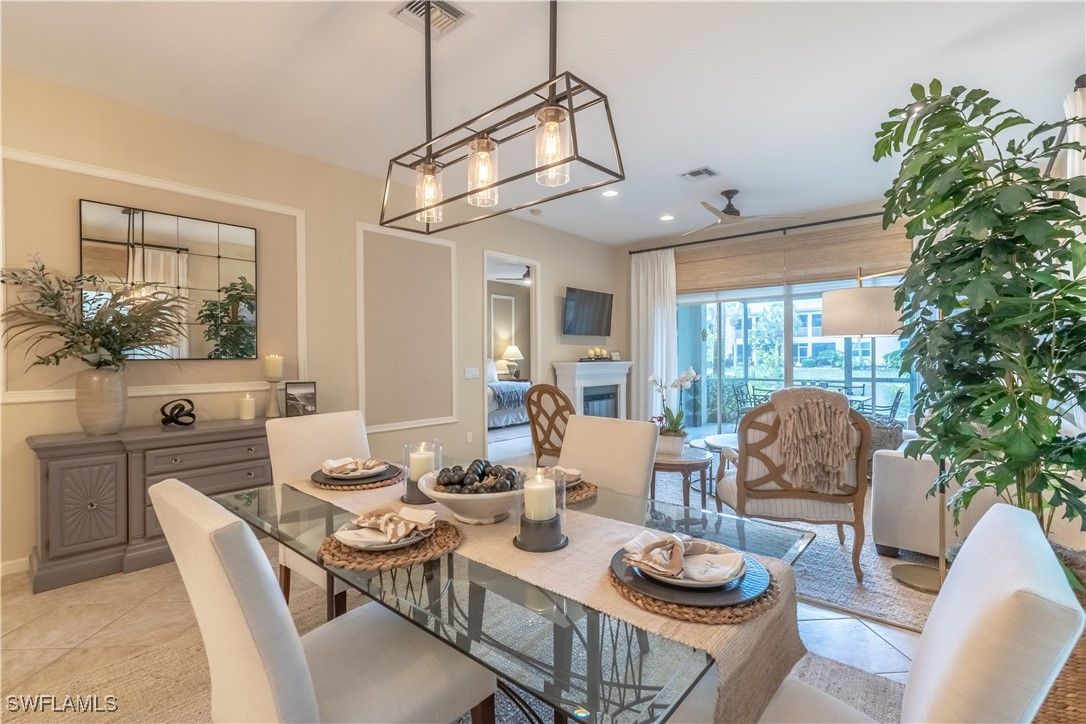 Great opportunity to purchase a former model home! This end-unit villa offers 2 bedrooms plus a den, 2 bathrooms, a 2-car garage, and a serene lake view. Large windows throughout the villa bring in an abundance of natural light. As you step into this meticulously maintained home, you’ll immediately notice the thoughtful upgrades, designer wallpaper, custom wall accents, and spacious room layout. The primary bedroom features a fantastic lake view, roomy walk-in closets, dual sinks, and a separate tub and shower. The second bedroom lives like a private master suite with its own privacy door, while the den opens to a charming private courtyard—offering both ample space and excellent privacy. The roof was replaced in 2019, and the HVAC system and water heater were upgraded in 2022. Located in the highly sought-after Fiddler’s Creek community, conveniently positioned between Naples and Marco Island, residents enjoy resort-style amenities including a Club & Spa, tennis, pickleball, bocce, playground, resort pool and spa, and two onsite restaurants—Gator Grill and Caxambas. Optional golf and beach club memberships (Tarpon Club) are available, along with a full calendar of events for kids and adults alike, from balloon art and face painting to wine tastings and comedy shows. You’ll never be bored!