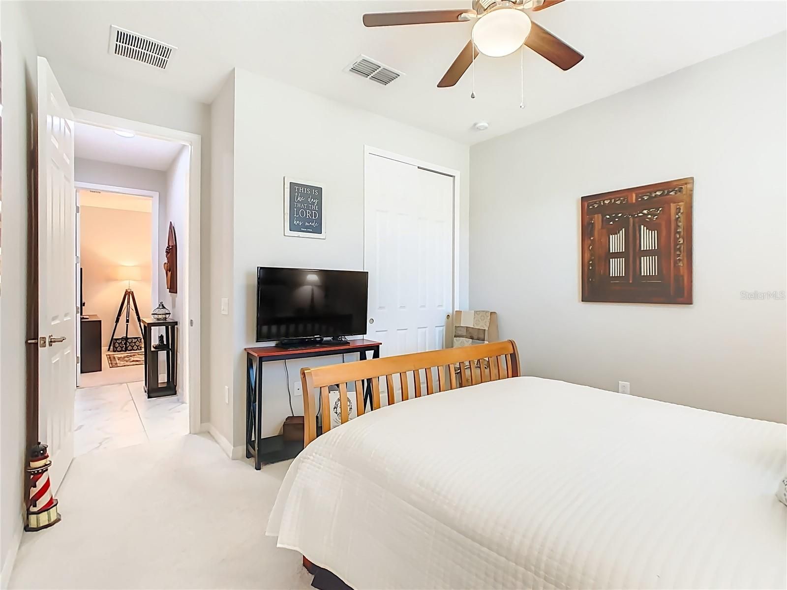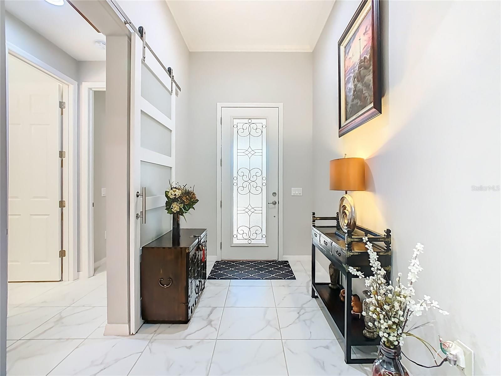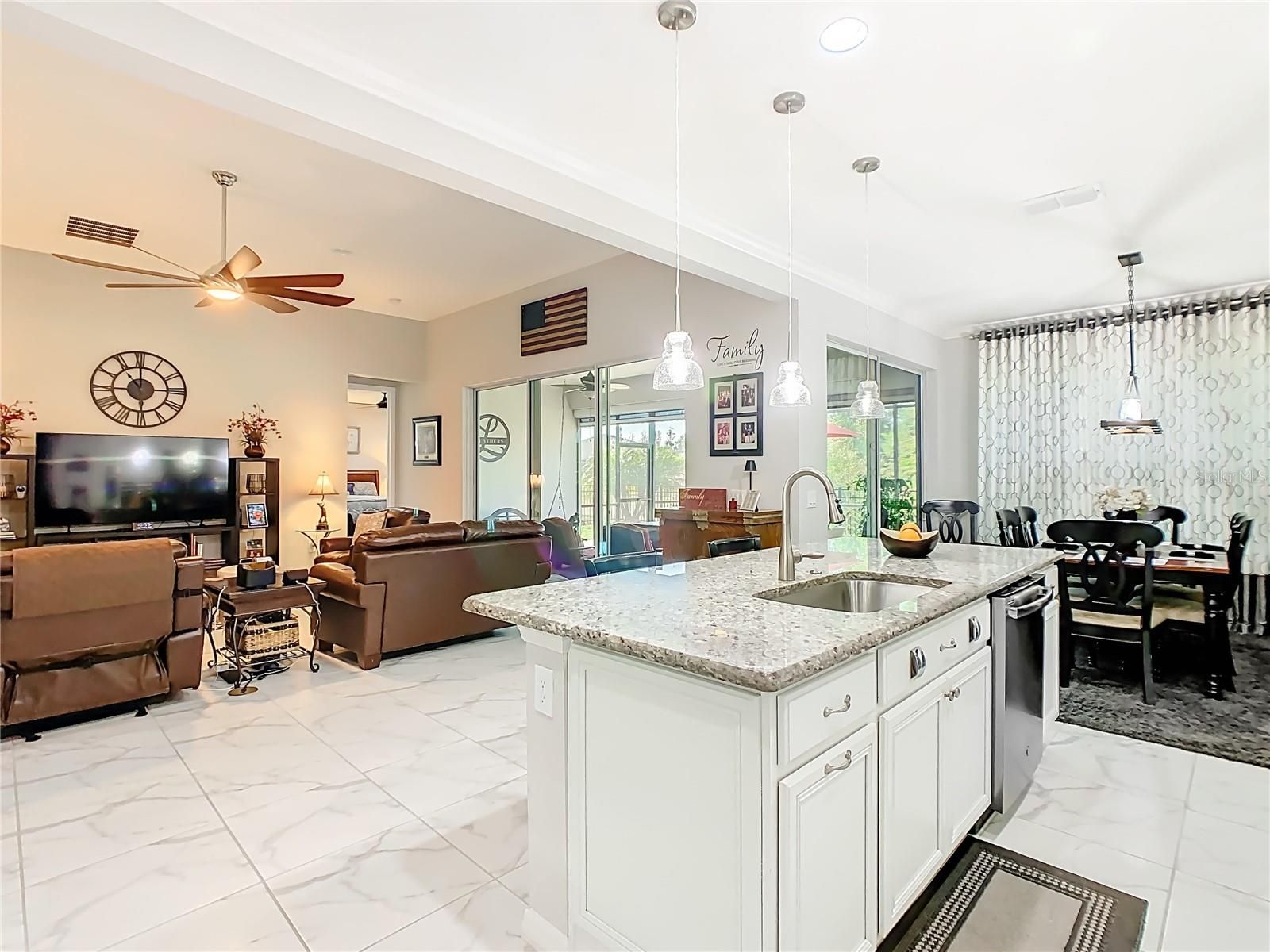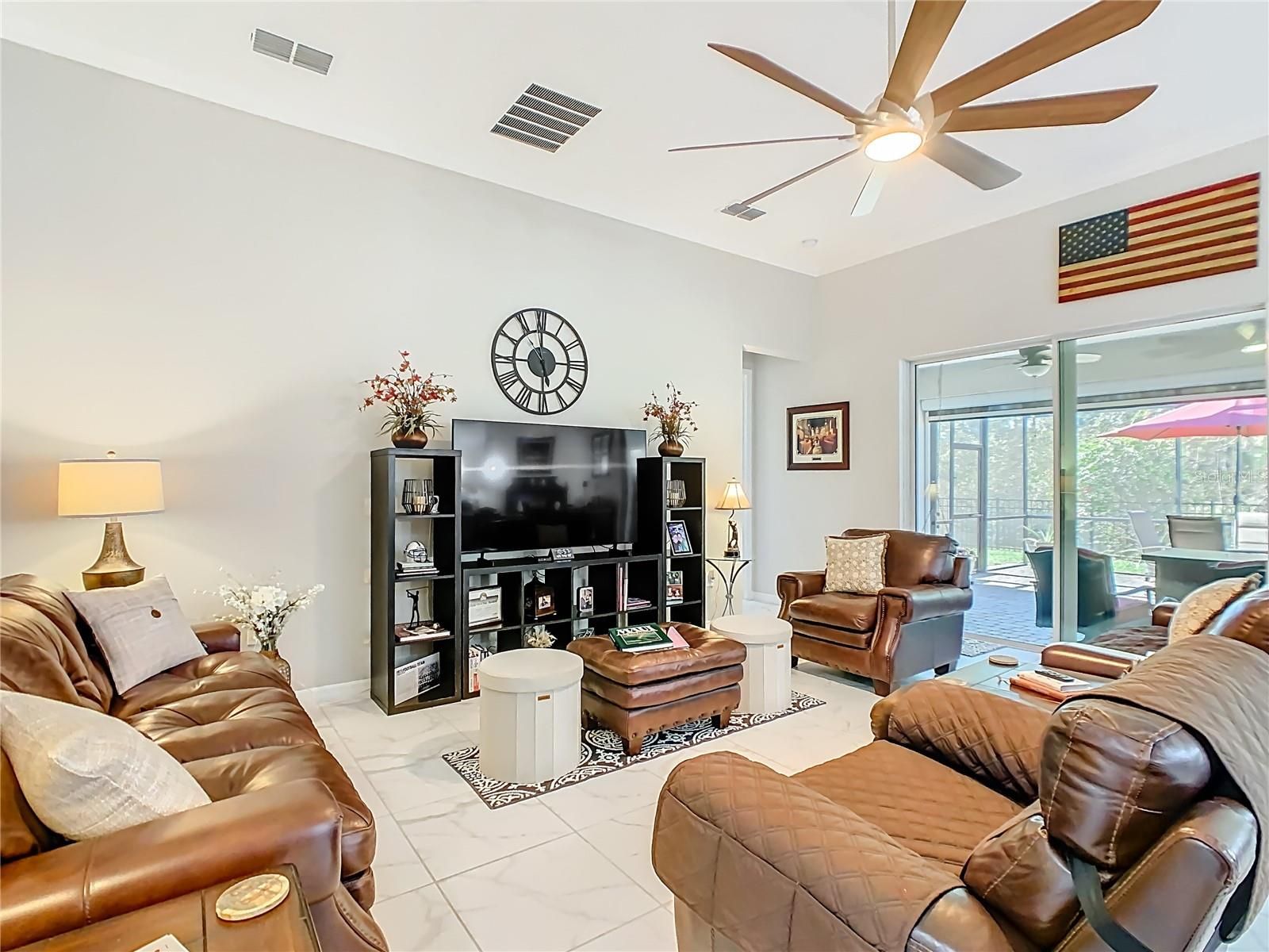 AMAZING SORANO Model built in 2018 on a CONSERVATION lot with a TWO CAR garage PLUS a connected GOLF CART garage on a Cul-de-Sac in the Verona subdivision of Solivita. UPGRADES INCLUDE: 8' doors & DOUBLE PANE Low E VINYL FRAME windows throughout. CROWN MOLDING in Foyer, Great Room & Kitchen. 20" Marble Pattern CERAMIC TILE in Foyer, Great Room, Dining Room & Kitchen. Carpet in bedrooms. There are 2 very sleek BARN DOORS, one at the entry to the 2nd & 3rd bedrooms & the other at the Laundry Room. There also is a SOLAR TUBE in the hallway adjacent to the Laundry room. All 3 bathrooms have QUARTZ counters. GOURMET KITCHEN features GRANITE counters, 42" upper cabinets with CROWN MOLDING & LIGHT RAILS, PULL-OUT drawers & POT DRAWERS in lower cabinets, GLASS SUBWAY TILE backsplash, ISLAND with deep single bowl sink, RECESSED, PENDANT & UNDER-CABINET lights, a pantry and STAINLESS STEEL appliances including an upgraded TWO DOOR, TWO DRAWER REFRIGERATOR with CHANGEABLE front door panels. Primary Suite includes BLACKOUT curtains, Recessed Lights & a walk-in closet. Its bathroom has DUAL SINKS, a WALK-IN shower with bench & an upgraded SEAMLESS GLASS enclosure. Bathroom between the 2nd & 3rd bedrooms has a WALK-IN shower w/ an upgraded glass enclosure. 3rd bathroom has a tub with a shower. Air Handler has a Germicidal UV Light System. ARCHITECTURAL STONE Accents at the front of the house, PAVERS surrounding the front flower beds, the Front Entryway is SCREENED and the Front Door has a LEADED GLASS INSERT. The LANAI is extended & screened with a motorized SCREEN SHADE for the covered portion of the lanai. The BACKYARD IS FENCED & there is an OPEN PATIO area adjacent to the screened lanai. ***PLEASE NO BUYER CONTINGENCY OFFERS. **Solivita is an active adult 55+ community located in Kissimmee, Florida. It is approximately 50 minutes from Disney World & the Orlando International Airport. Solivita has a total of 5,470 homes. Approximately 10,000 - 11,000 people live in Solivita during the winter while approximately 7,500 live in Solivita during the summer. Enjoy your active years in this piece of paradise. Solivita's amenities include: - a manicured SOFTBALL diamond & field - 36 holes of CHAMPIONSHIP GOLF that can be played by joining the Stonegate Golf Club or paying as you go - 2 STATE of the Art AMENITY centers w/ updated exercise equipment, yoga studio & meeting rooms - 3 restaurants - 14 HEATED POOLS - 17 PICKLEBALL courts - 9 TENNIS courts - 4 BOCCE BALL courts - 4 SHUFFLEBOARD courts - 3 HORSESHOE pits - a BILLIARDS room - miles of bike paths - 2 DOG PARKS (Small & Large Dogs) - Corn Hole - Tot Lot PLAYGROUND - COMMUNITY GARDEN - over 250 resident clubs. The HOA: - maintains the LANDSCAPING & IRRIGATION systems in the common areas as well as at individual homesites. PROVIDES SECURITY with gate guards and mobile patrols including the Polk County Sheriff - allows AUTOMATED GATE ACCESS for residents via license plate readers - provides residents with Fiber Optic Internet & TV service.***Poinciana Lakes Plaza is a MAJOR NEW SHOPPING CENTER directly across from the Solivita Main Gate. It features Sprouts Grocery, TJ MAXX, Ross, Burlington, Rack Room Shoes, 5 Below, Ulta, Outback, First Watch, 5 Guys, Panda Express, Bojangles, Jersey Mike's Subs, 5 Guys, Papa John's Pizza, Burrito Bar, Cold Stone Creamery, Urgent Care, Dentist, Hand & Stone Massage, America's Best Eyeglasses, Crunch Fitness, Hair Cuttery, Petco, TD Bank, Verizon Mobile & More.