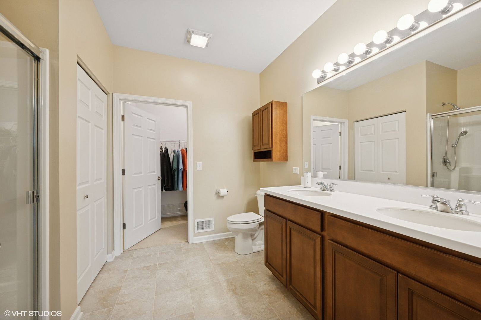 - Bedroom on Main Level, Walk-In Closet(s), Den, Other Room(s), Separate Shower, Dual Sinks, Kitchen/Dining Combo