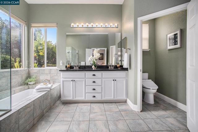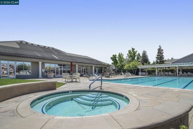 Sweet deal on this exquisitely remodeled home! Light and airy with soaring ceilings, custom moldings and recessed lights. Beautiful hand-scraped hardwood floors. At the heart of the home is an expansive great room with a gourmet kitchen, breakfast nook and family room. The home chef will enjoy the oversized kitchen island, farm-style sink, and stainless appliances. Owners can retreat to a spacious spa-like primary suite that has access to the back patio. The second bedroom is en-suite with updated bath. All bathrooms have been remodeled. Work from home in a convenient separate office. This space can also be used as a craft room or third bedroom. Dual paned windows and custom shutters add to the home's energy efficiency. A 3-bay garage provides extra storage. Environmentally friendly artificial turf minimizes water usage at the front and back yard. Plants are on a drip irrigation system. Summerset is a vibrant 55+ community with many healthy lifestyle amenities: pool, tennis, gym, pickleball and more. Central location close to shops, restaurants and freeway access. 30 minutes to Livermore or Walnut Creek.
