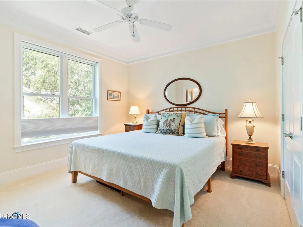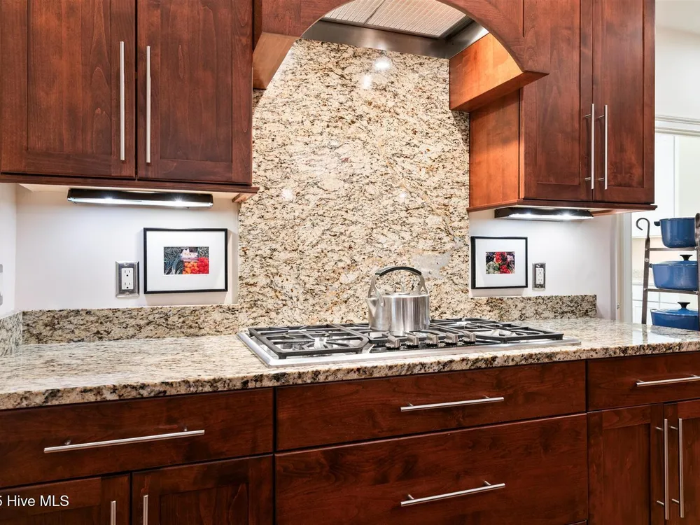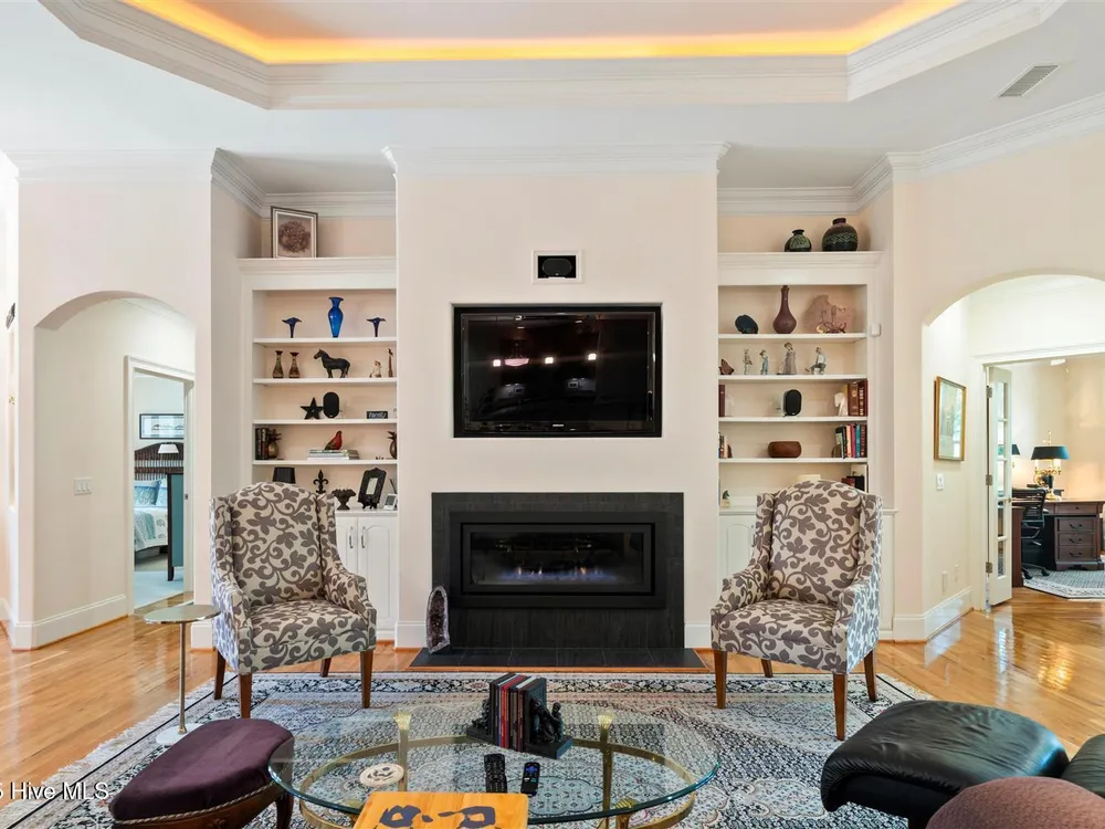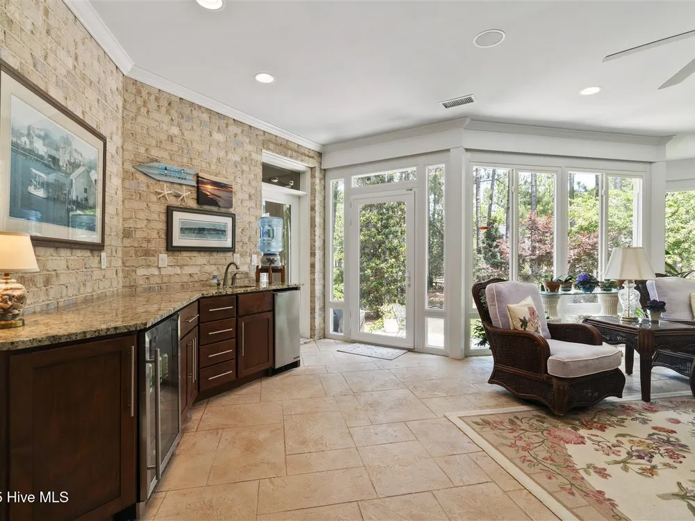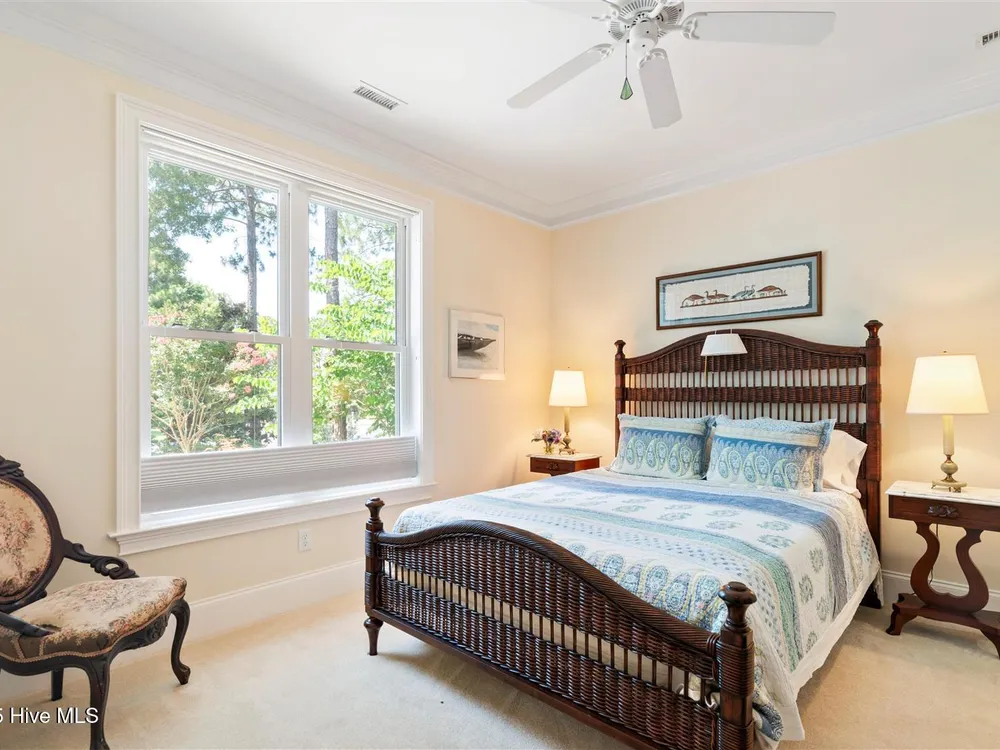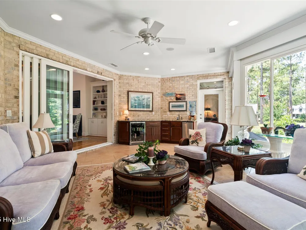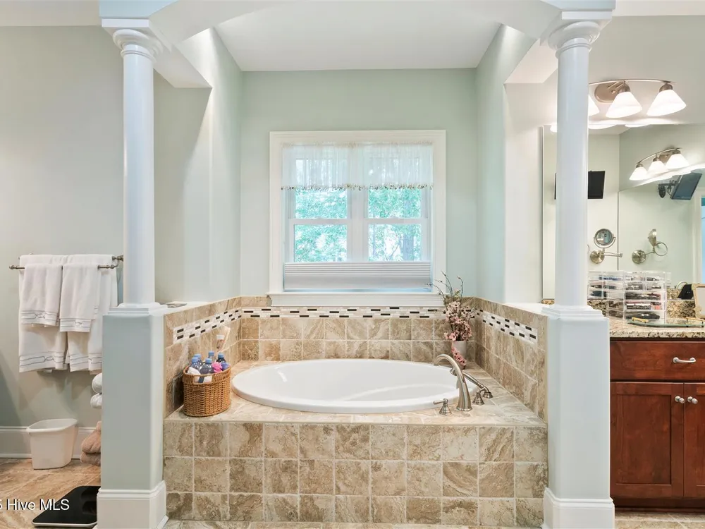 Enter through the gorgeous front door and discover elegance at its best! Gleaming Hardwood floors, a popular Open Floor Plan and large Sunlit rooms in over 4,000 square feet. The formal Dining room with a large beautiful window, wainscoting, trey ceiling with accent lighting opens to a spacious Great room. A very attractive Linear Gas Fireplace surrounded by built-ins and another trey ceiling with accent lighting makes this the perfect entertainment space. The Kitchen seamlessly blends functionality and style. Stainless steel appliances, two pantries, pull-out drawers, Thermador gas cooktop, KitchenAid double ovens, granite countertops and Food Prep Island are a chef's dream. You will love the Breakfast area with a beautiful built-in Display cabinet. The Carolina Room with telescoping glass doors opens to a large space that is inviting, light-filled and comfortable with backyard Nature views. Wet bar with beverage cooler and ice maker add to easy living! The Owners Suite is serene and spacious with a large closet. The spa-like Bath is generous with a heated floor, two vanities, granite countertops and a large tile shower. A large Laundry is conveniently located outside the Owners Suite. The split floor plan has two Guest Bedrooms and a full Bath affording privacy for you and your guests. A home Office and Powder room are also located on the main level. The outdoor Patio is located off the Carolina Room. Upstairs is a Flex Space with a full Bath and walk-in Closet that can be used as an additional bedroom or whatever you prefer. Garage is oversized and includes a conditioned storage room. A new Roof was installed in 2024. Please see upgrade list in Documents. Welcome Home to Coastal North Carolina!