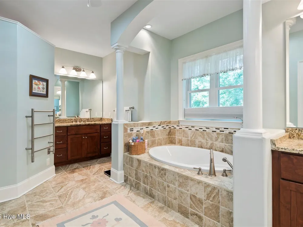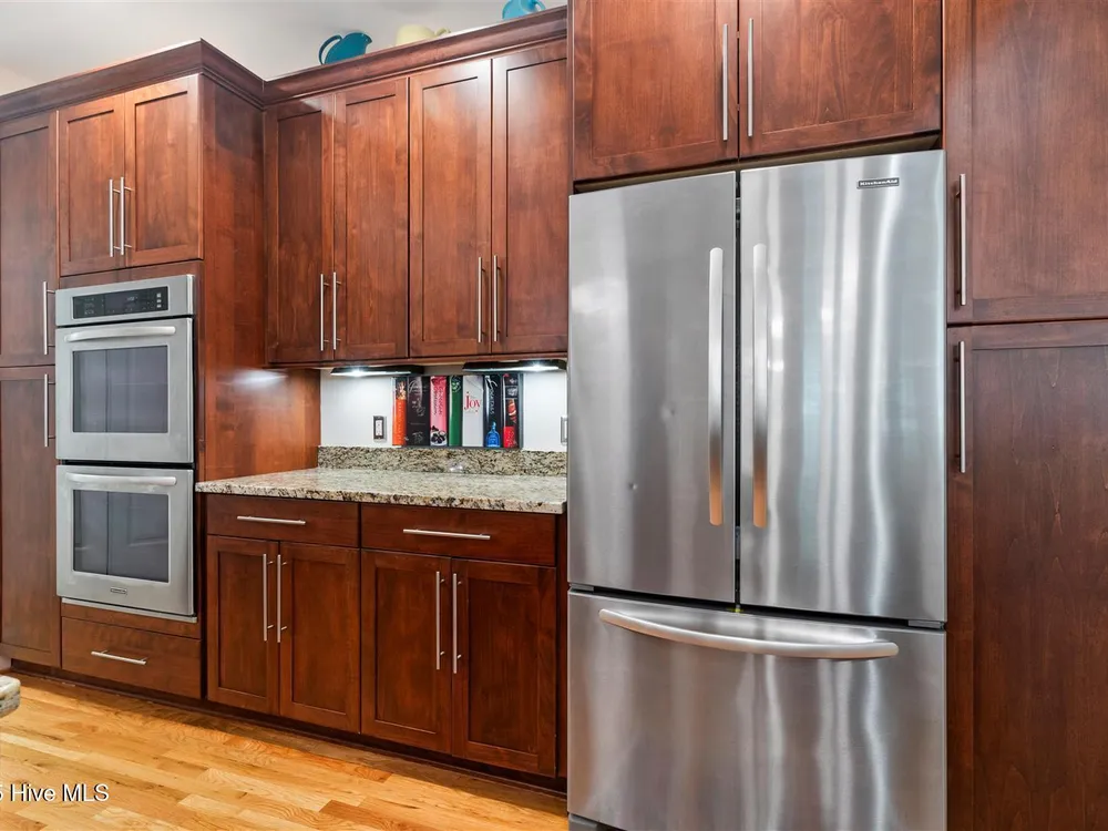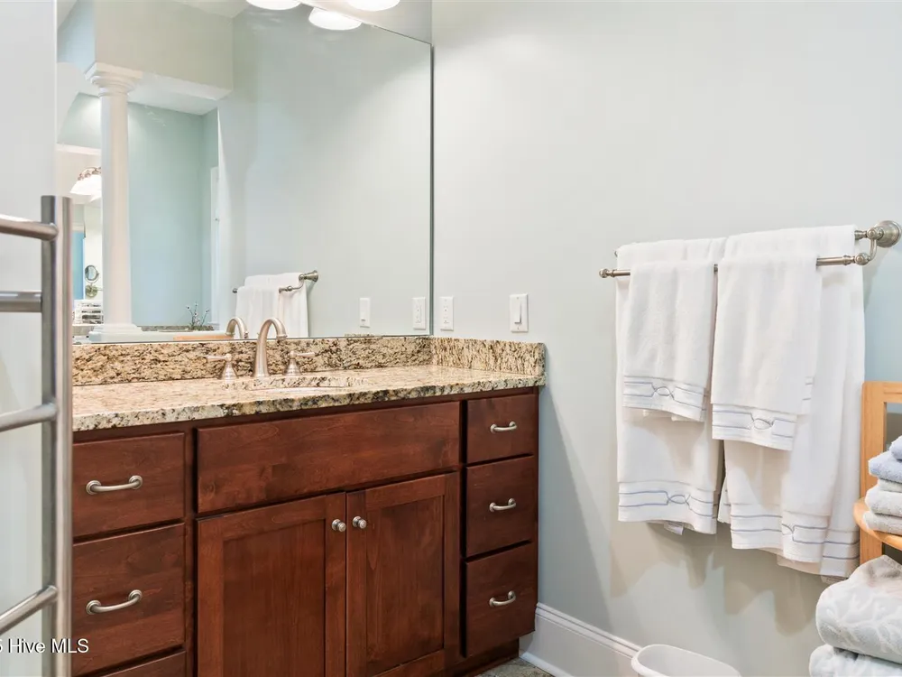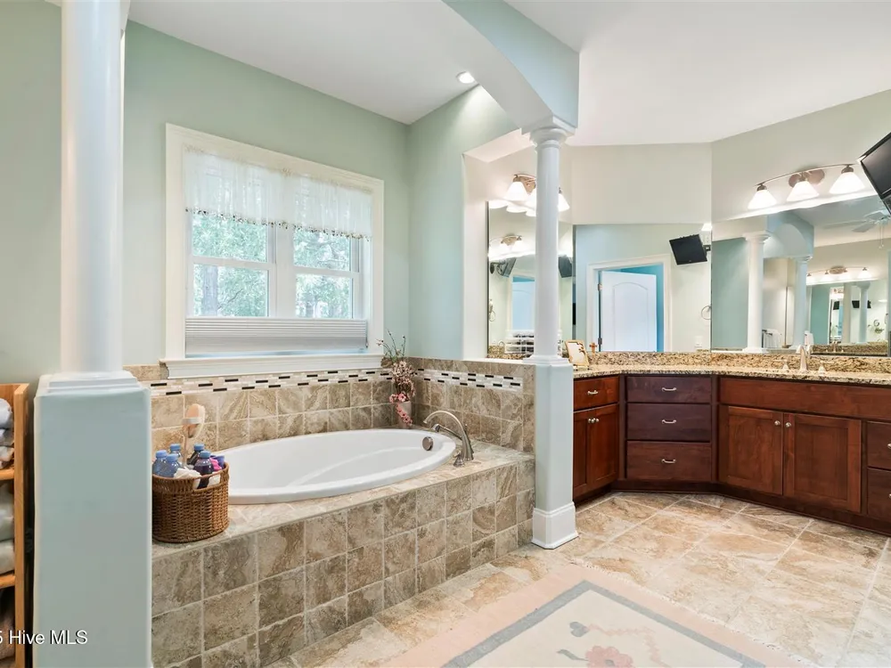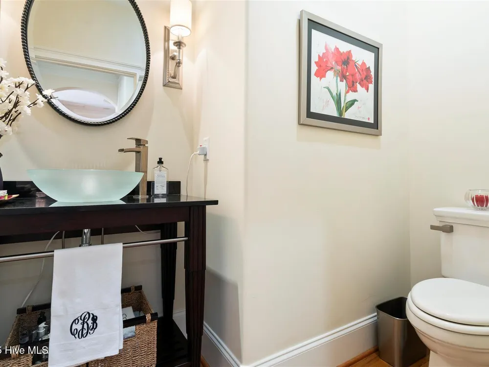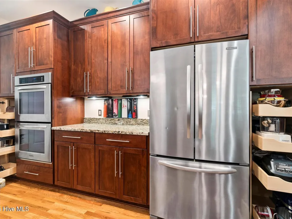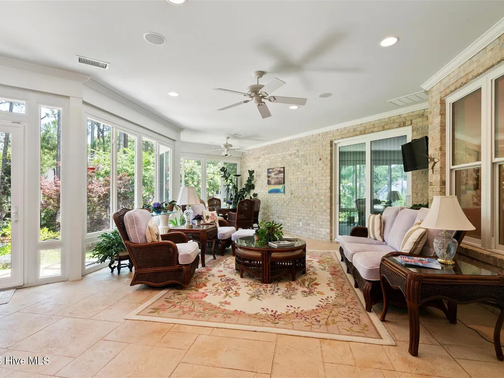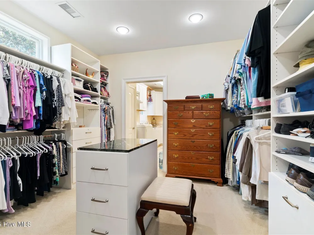 Enter through the gorgeous front door and discover elegance at its best! Gleaming Hardwood floors, a popular Open Floor Plan and large Sunlit rooms in over 4,000 square feet. The formal Dining room with a large beautiful window, wainscoting, trey ceiling with accent lighting opens to a spacious Great room. A very attractive Linear Gas Fireplace surrounded by built-ins and another trey ceiling with accent lighting makes this the perfect entertainment space. The Kitchen seamlessly blends functionality and style. Stainless steel appliances, two pantries, pull-out drawers, Thermador gas cooktop, KitchenAid double ovens, granite countertops and Food Prep Island are a chef's dream. You will love the Breakfast area with a beautiful built-in Display cabinet. The Carolina Room with telescoping glass doors opens to a large space that is inviting, light-filled and comfortable with backyard Nature views. Wet bar with beverage cooler and ice maker add to easy living! The Owners Suite is serene and spacious with a large closet. The spa-like Bath is generous with a heated floor, two vanities, granite countertops and a large tile shower. A large Laundry is conveniently located outside the Owners Suite. The split floor plan has two Guest Bedrooms and a full Bath affording privacy for you and your guests. A home Office and Powder room are also located on the main level. The outdoor Patio is located off the Carolina Room. Upstairs is a Flex Space with a full Bath and walk-in Closet that can be used as an additional bedroom or whatever you prefer. Garage is oversized and includes a conditioned storage room. A new Roof was installed in 2024. Please see upgrade list in Documents. Welcome Home to Coastal North Carolina!