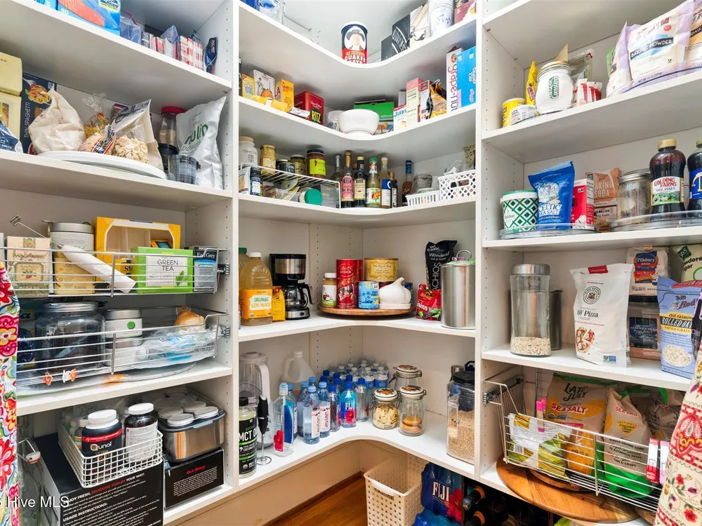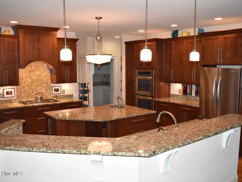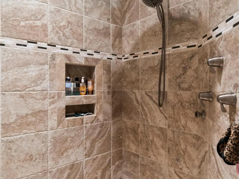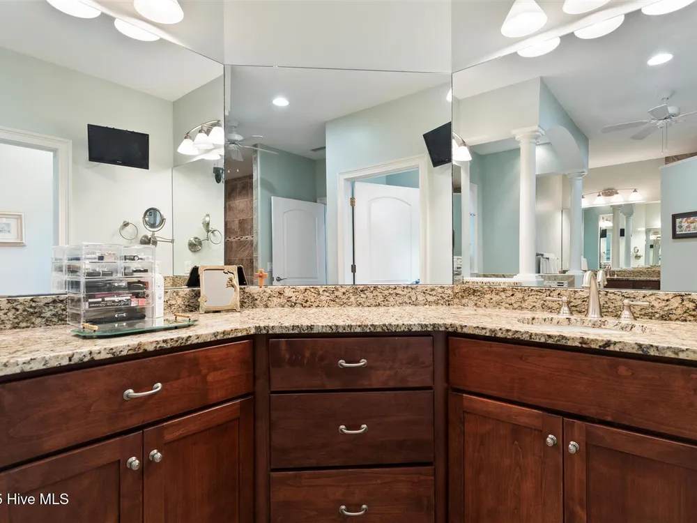- Ceiling Fan(s), Sound System, Wet Bar, Walk-In Closet(s), Walk-in Shower, Vaulted Ceiling(s), Tray Ceiling(s), Entrance Foyer, Pantry, Master Downstairs, Kitchen Island, High Ceilings, Gas Log, Central Vacuum
