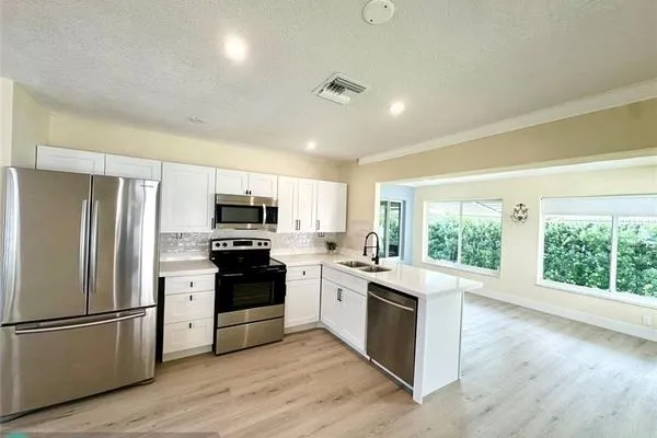 Priced below appraisal value! Very quiet street in the Mainlands of Tamarac. 55+ community. One occupant must be 55 and over. Home has a newer roof, newer attic insulation and new AC ducts. One full bath and the other bathroom does not have a shower. The kitchen is GORGEOUS - soft close cabinets and drawers, quartz countertops, recessed LED lighting, and a modern subway tile backsplash. The entire home has luxury vinyl plank flooring which is 100% waterproof. – the flooring is beautiful! Home has a transferable Termite warranty! New gutters, updated electric panel, and IMPACT windows. Stacked washer and dryer unit is located on the outside covered patio area. Monthly HOA fee is $100. No Children under 18. Yes, the HOA does require a 725 Credit Score. Please see MLS attachments.