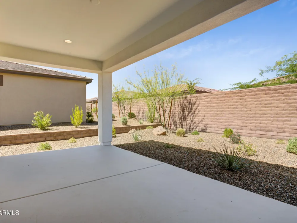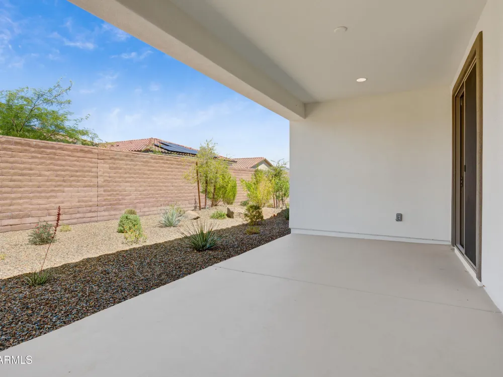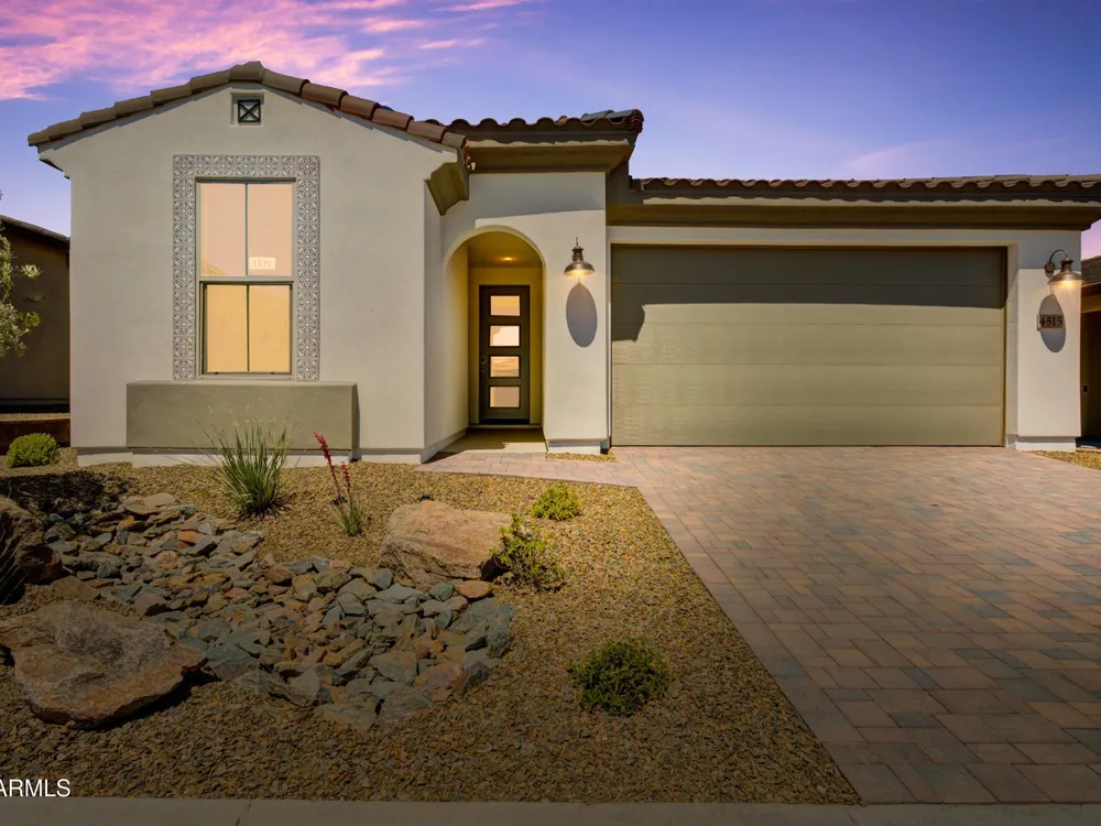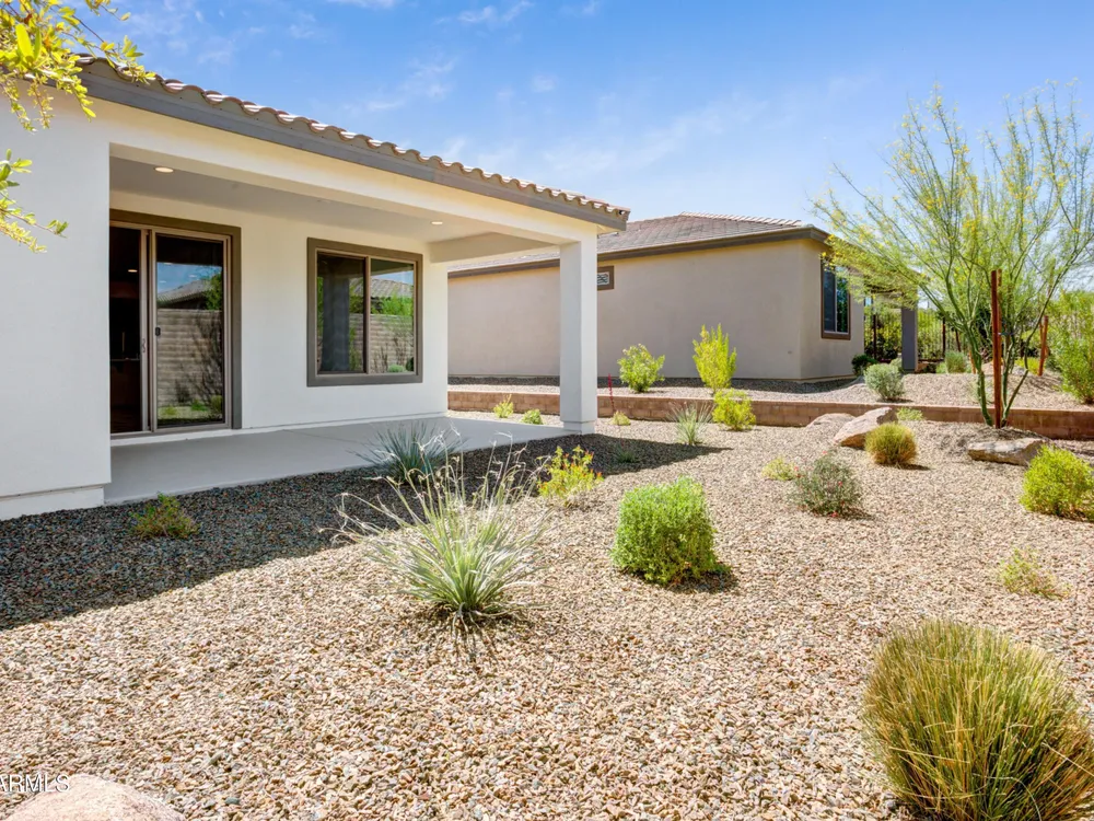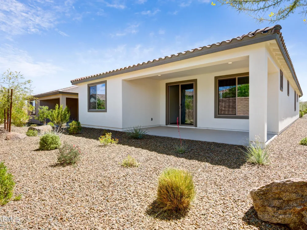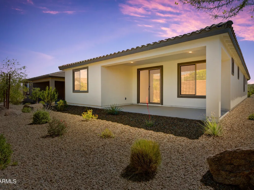 Shea-built Flourish plan in the Freedom Collection at Wickenburg Ranch. 1,811 sq ft, 3 bed, 2 bath, 2-car garage w/4' extension. 9' ceilings, upgraded flooring, Eclipse-stained cabinets w/soft-close drawers, Fantasy White granite, built-in Café appliances, LED under-cab lighting & pendant lights. Primary bath w/Shea shower, heavy glass enclosure, tile surround & brushed nickel fixtures. Extended patio, Smart TV wall sleeves, custom landscape, garage service door, & utility sink rough-in. Enjoy access to clubhouse, golf, dining, resort pool & more. This Shea-built Flourish floor plan in the Freedom Collection offers 1,811 sq ft of thoughtfully upgraded living in Wickenburg Ranch. With 3 bedrooms, 2 baths, and a 2-car garage with a 4' extension, this home features 9' ceilings and a flexible layout designed for entertaining and everyday ease. Enjoy Nantucket maple cabinetry in Eclipse stain with soft-close drawers, full overlay design, and under-cabinet LED lighting. The kitchen shines with Fantasy White satin granite counters, a built-in GE Café stainless appliance package, custom backsplash, and pendant lighting. The primary bath features a heavy glass Shea shower, brushed nickel fixtures, and ceramic tile throughout. Additional upgrades include luxury flooring, an extended covered patio, Smart TV wall sleeves, custom landscaping, utility sink rough-in, and premium exterior finishes.