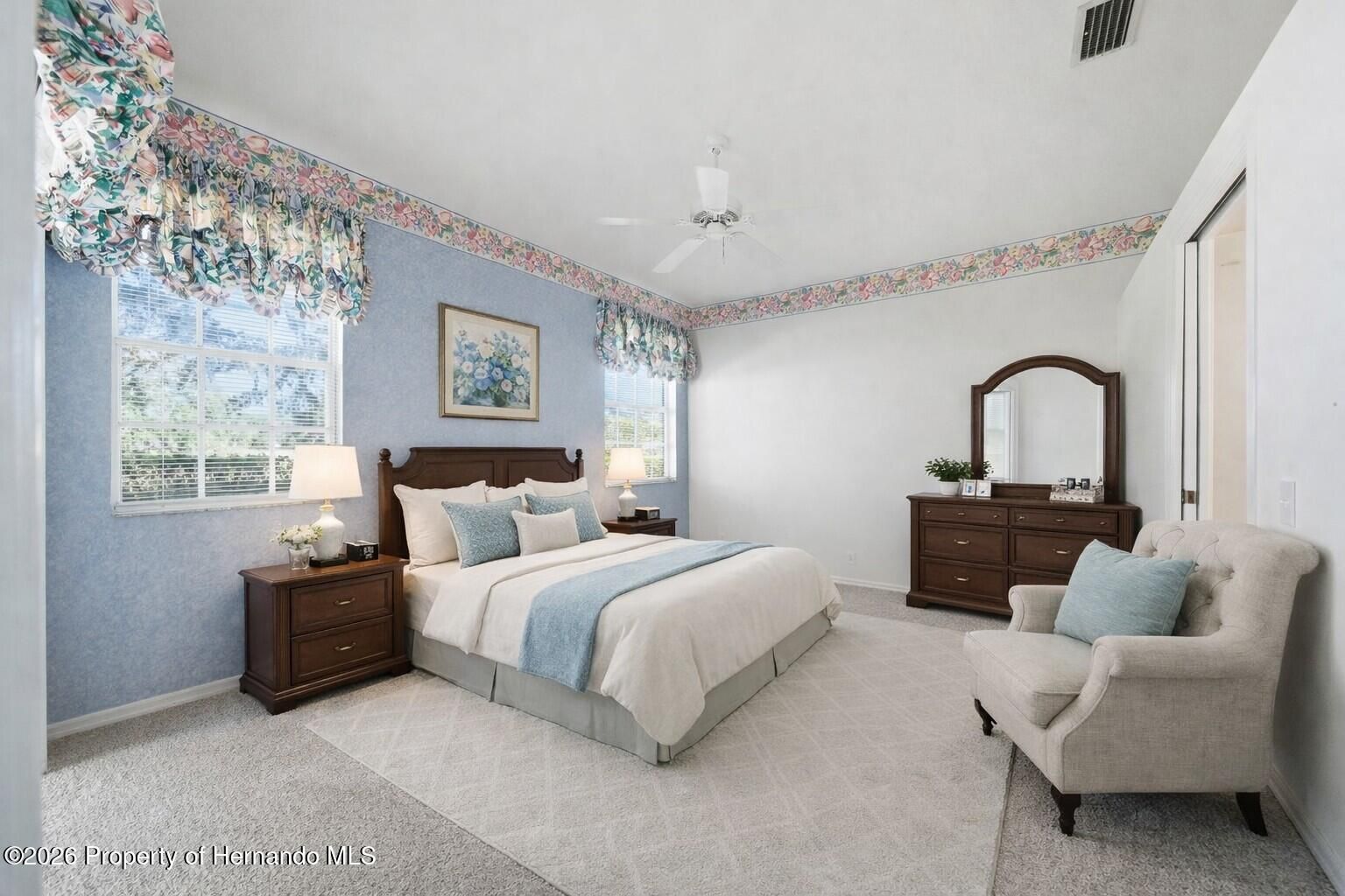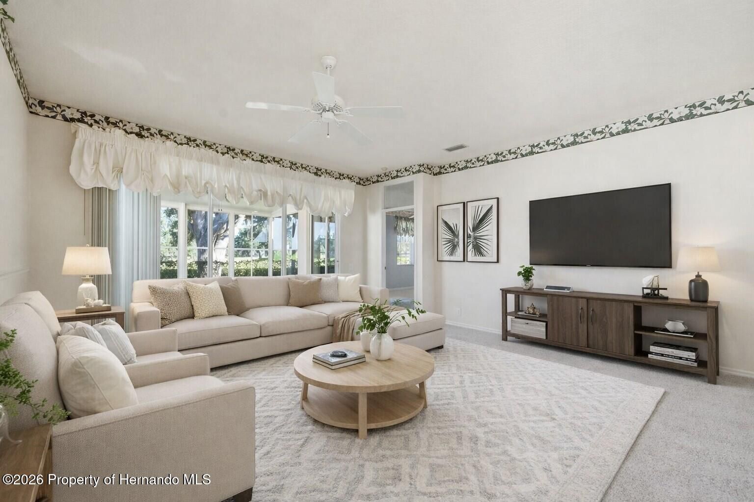 Welcome to 4516 Golf Club Lane, a beautiful villa home in the gated golf course community of Silverthorn! This former model home offers 2 spacious bedrooms, 2 full bathrooms, an enclosed Florida room, and a flex space that can be used as an office/den or an additional bedroom. This meticulously maintained one-owner home clearly showcases pride in ownership and features brand new carpet throughout. The front of the home is complemented by a paver driveway leading to a 2-car garage for ample storage and parking. Situated directly on the golf course, you can enjoy beautiful views of the semi-private Joe Lee 18-hole championship course. The community offers a wealth of amenities, including a junior Olympic swimming pool, tennis, basketball, and pickleball courts, a fitness center, a children's play area, a library, and a vibrant community center and clubhouse, making it perfect for active lifestyles and social gatherings. Conveniently located near shopping centers and medical offices, this property is also less than three miles from the Suncoast Expressway entrance, offering easy access to Tampa. Don't miss your chance to own this home in one of the area's most sought-after communities. Call today to schedule your private showing! One or more photo(s) has been virtually staged.