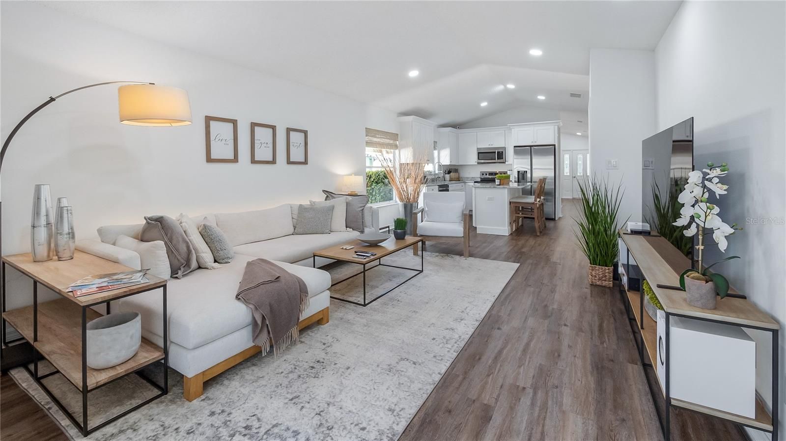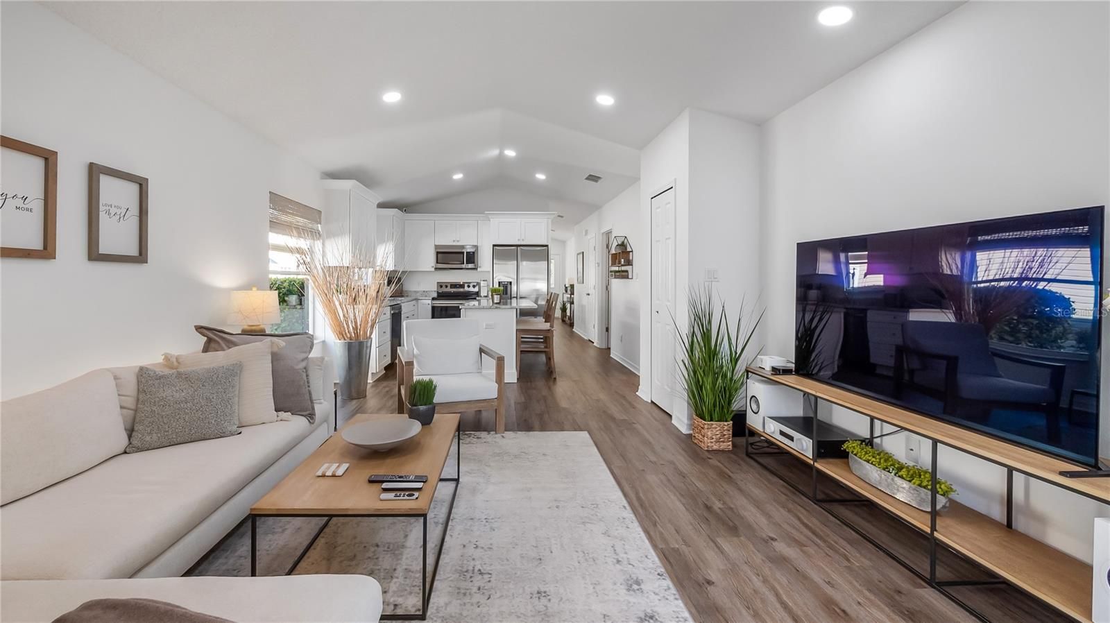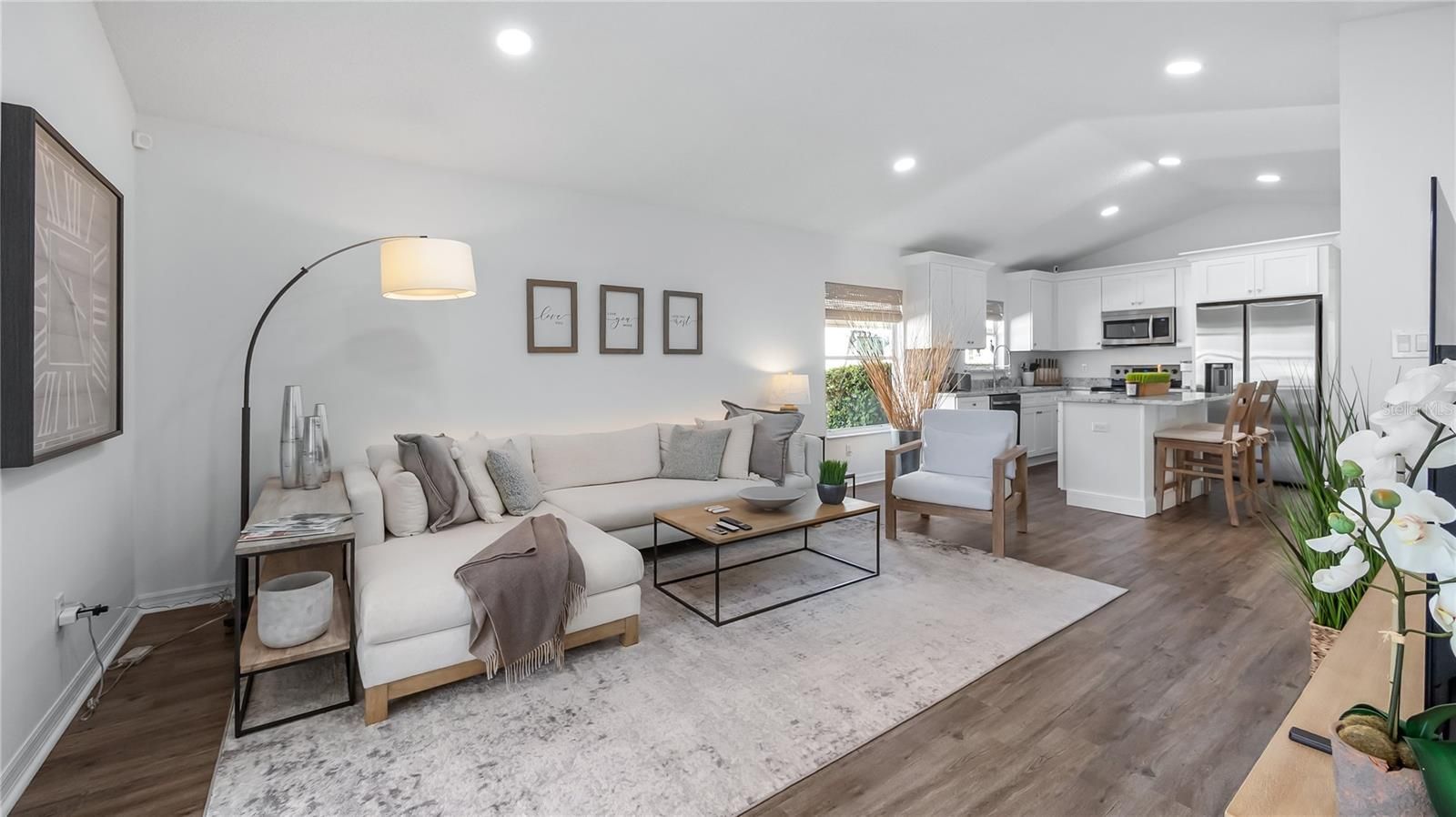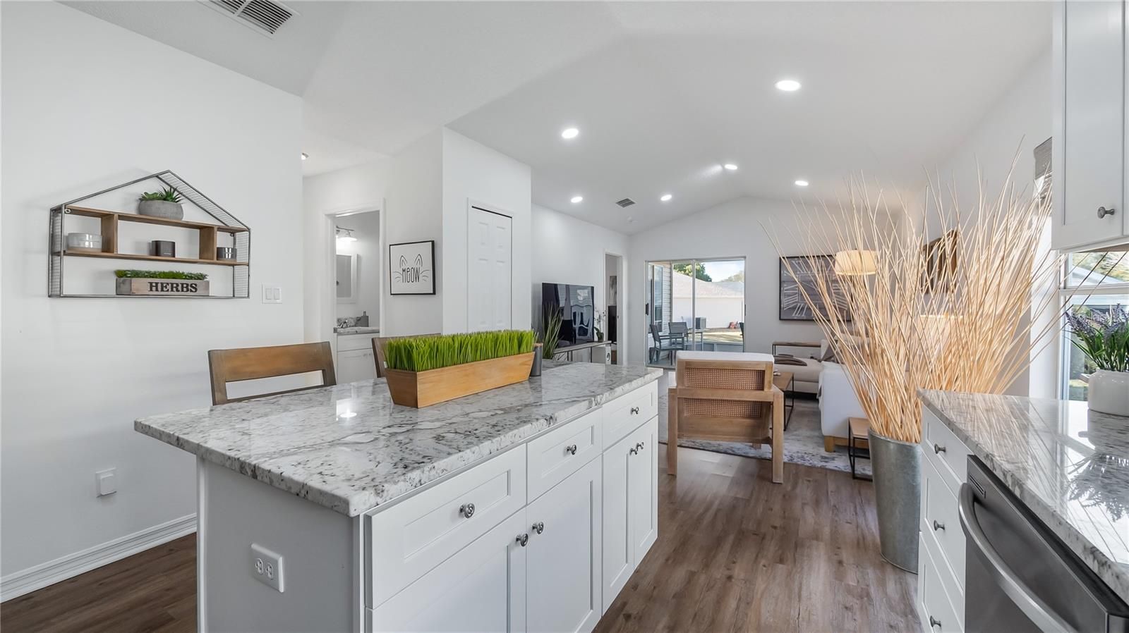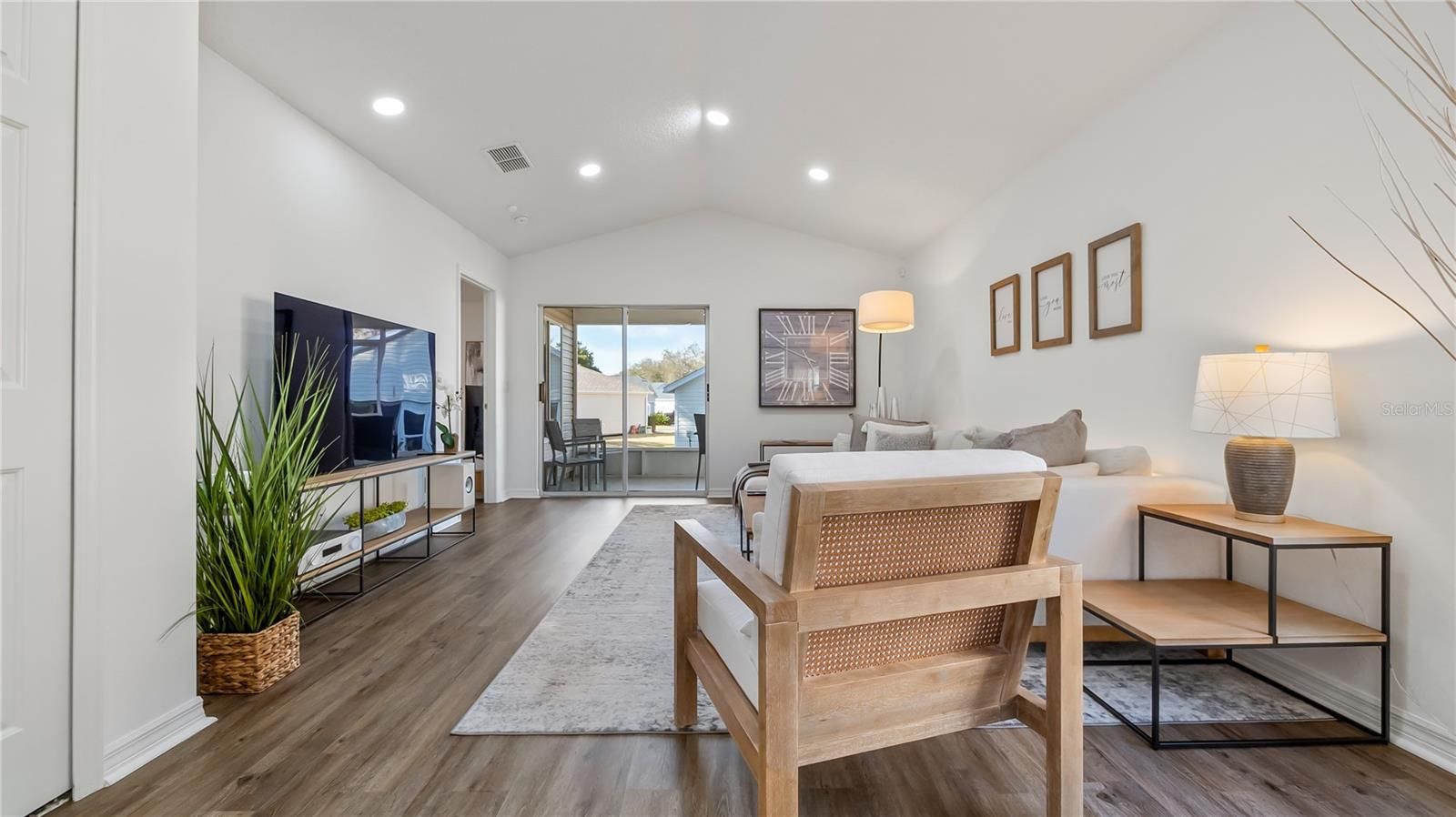 Welcome home to effortless Florida living in this beautifully remodeled residence located within the highly sought-after Plantation community. Designed for comfort, style, and simplicity, this home offers truly maintenance free living in a setting known for its exceptional amenities and vibrant lifestyle. Step inside and you are immediately welcomed by a bright, open floor plan and abundant natural light. The entire home has been thoughtfully updated, featuring luxury vinyl plank flooring, and custom LED lighting throughout. Every detail has been carefully selected to create a clean, timeless aesthetic that feels both classic and inviting. At the heart of the home is a stunning, completely remodeled kitchen designed for both everyday living and entertaining. Solid wood cabinetry with crown molding and soft-close drawers is paired with elegant granite countertops and brand new stainless steel appliances. A spacious kitchen island provides generous seating, making it the perfect gathering place for friends and family. The primary suite is a private retreat, featuring a beautifully designed bathroom with a zero threshold walk-in shower, frameless glass enclosure, rain head and handheld shower wand, and a custom shower niche. Granite-topped vanities, updated mirrors, and an oversized walk-in closet with custom drawers, cabinets and hanging bars complete this fabulous space. The open living and kitchen areas overlook the screened porch and peaceful backyard, creating a seamless transition between indoor and outdoor living. The second bedroom is equally well appointed with upgraded closet system with plenty of storage configurations, luxury vinyl plank flooring, and modern LED lighting. Major components have already been addressed for peace of mind, including a roof installed in 2020 and a newer air conditioning system from 2019, while nearly every other element of the home has been fully refreshed or replaced. Located in the gated 55+ Plantation community, residents enjoy an extraordinary lifestyle with two championship 18-hole golf courses, a driving range, three activity centers, three swimming pools, tennis and pickleball courts, bocce ball, shuffleboard, softball, horseshoes, fitness centers, and dozens and dozens of organized activities each week. The HOA fee is only $180 per month. Within Plantation, the Golfview neighborhood offers additional exclusivity with a private screened pool reserved for residents. Golfview also includes lawn maintenance and annual house washing for just $240 per quarter, allowing you to fully enjoy the relaxed lifestyle this community provides. This home is offered beautifully furnished with furnishings available, creating the perfect move-in ready opportunity—just bring your toothbrush and begin enjoying everything this exceptional home and community have to offer. Please see the interior/drone video then make your appointment to come see this gorgeous home.
