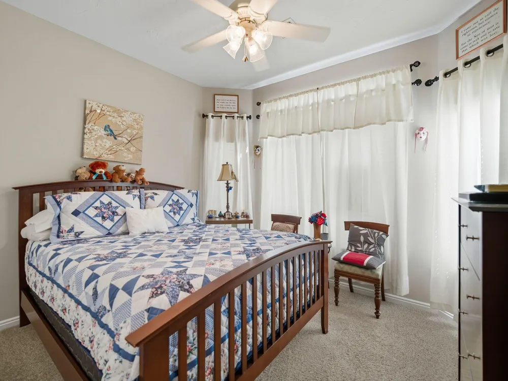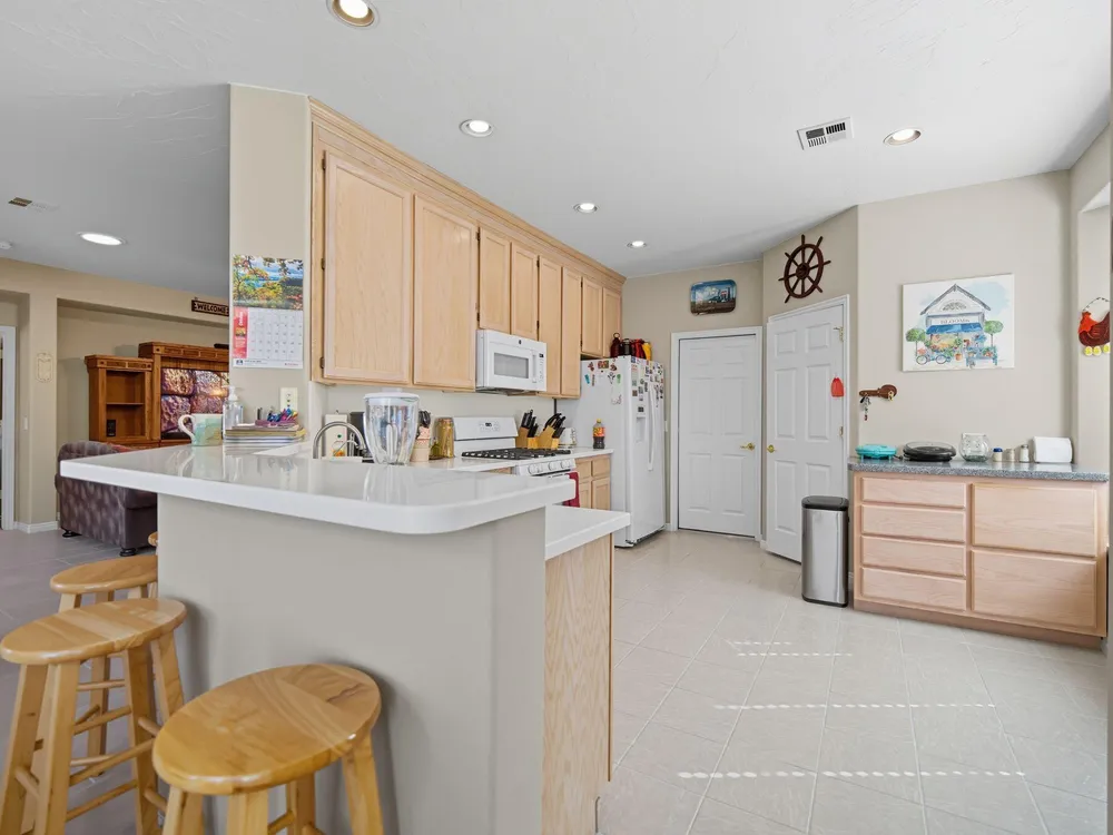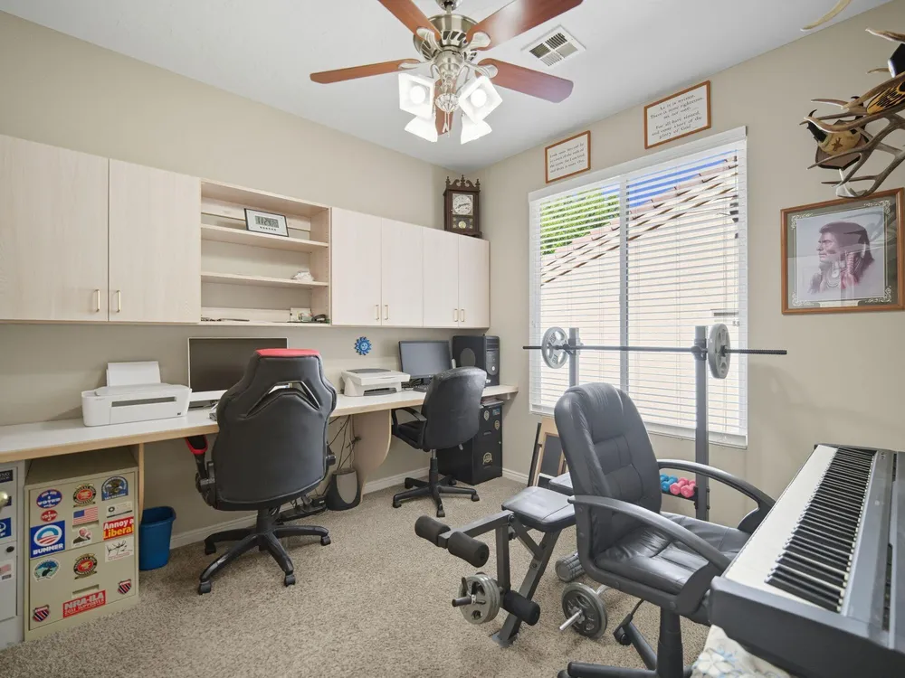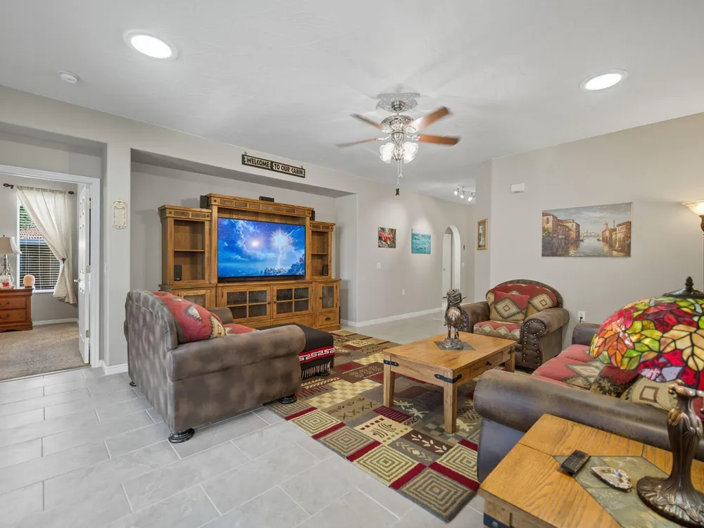 Fantastic SunRiver 55+ Community Home!! Looking for a beautifully updated home and a true turn-key lifestyle? You've arrived! This stunning property features a chef's kitchen with a breakfast bar, dining space, and a spacious primary suite. Enjoy the large sunroom with its own AC, a cozy den with custom built-ins, and the charm of three bay windows that fill the home with natural light. Additional highlights include central vacuum, a full water filtration system with RO, and a 2-car garage with AC/heat, cabinets, and a workbench—perfect for hobbies or extra storage. The home is surrounded by mature landscaping with low maintenance, offering both privacy and beauty. Golf cart and select furniture available! Don't miss your chance to experience the SunRiver lifestyle with golf, pickleball, trails, clubhouse activities, and moreall right outside your door! HIGHLIGHTS AND FEATURES SHEET 4518 S Clear Creek Lane Located In the Sun River 55+ Community! " Beautiful covered Front Entryway " Foyer with tile " Track Lighting " Spacious chef's kitchen with breakfast bar, white Corian / white Corian back splash around Stove/Oven area " Kitchen features Bay window with built-in cushioned seat and tile flooring " All Appliances are G.E./ 5 years old or less " 2 Bedroom 2 Bathrooms with Den/Office (or 3rd Bedroom) " Primary bedroom with ensuite bathroom w/2 sinks and new Low Flush water saving toilet " Shower with handicap rails " Enclosed bath has handicap rails " Guest Bathroom has handicap rails (tub) " Both Bathrooms have tiled flooring " Ceiling fans in all bedrooms, Front room and in the sun room " Sunroom has big sliding glass door surrounded by floor to ceiling windows " New GE Washing Machine " New Gas Water Heater installed " New GE Microwave " Reverse Osmosis Water System at the kitchen sink for great tasting filtered water! " White Oak Cabinets throughout home " New Gas Water heater in the Garage " Recessed Lighting in living room " Spacious living room with 2 Solar Tube Lights " Smart home wiring center in Laundry " Built-in Vacuum System, empties into a large canister in the garage for easy disposal (accessories for the vacuum are included, along with the vacuum) " Patio with a gas stubbed for gas grilling " Mature trees in front and back yards " Xeriscape side and rear yard landscape for less water usage " All front yard landscape, grassy area and shrubs are maintained by the HOA " 2-car garage with abundant Professionally Installed cabinets and work bench " Garage has its own separate A/C and heating unit - mini split " The Water Softener is installed in the Garage " Garage features side door access and new garage door opener This beautiful home is located just 3 blocks from golf course access & 5 blocks away from the dog park What the seller loves about this home Here at the Sun River 55+ Community there are indoor and outdoor lap pools, both have a jacuzzi, whether you want to be inside or outside. The outside Pool & Jacuzzi have a beautiful view of the red desert cliffs in the distance with the 18-hole golf course in the foreground. Go to SunRiverStGeorge.com to see all the Amenities, classes, clubs, and groups, you name it, SunRiver has it!