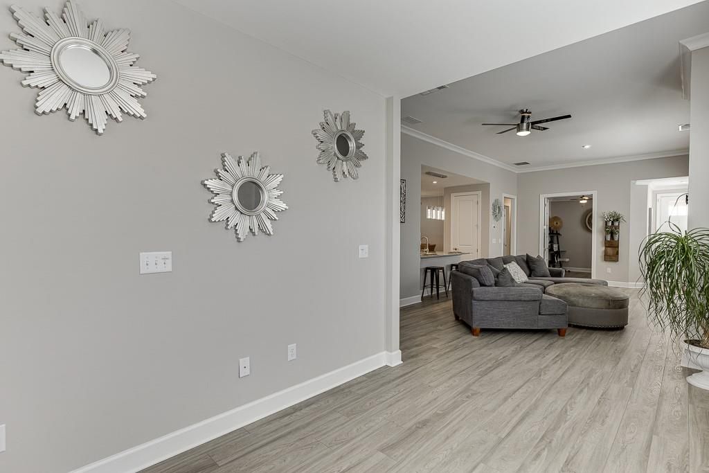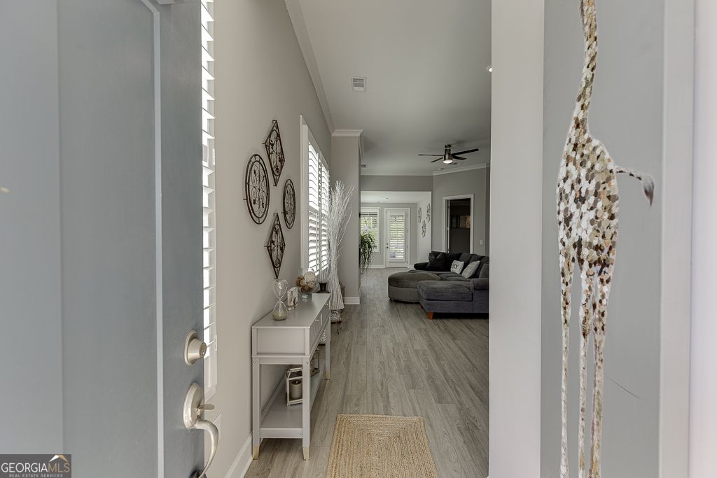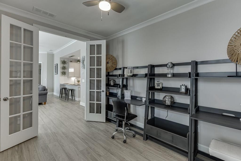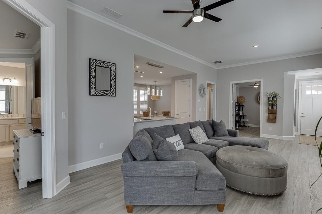 Resort-Style Living in Cresswind at Twin Lakes Experience the perfect blend of luxury, comfort, and vibrant community in this beautifully designed two-bedroom, two-bath home with a dedicated office, located in Cresswind at Twin Lakes-Buford's premier 55+ active adult community. Thoughtfully crafted to enhance everyday living, this home offers an open-concept layout, abundant natural light, and high-end upgrades throughout. An unfinished upstairs space (345 sq. ft.) with roughed-in plumbing provides excellent storage or the opportunity for future expansion. The bright and airy interior welcomes you with luxury vinyl plank flooring, a gas fireplace with blower, and a stunning upgraded kitchen featuring gray quartz countertops, level-four soft-close cabinetry, and stainless-steel appliances. The converted sunroom is perfect for year-round enjoyment, while the screened-in patio with sunshades and extended grilling patio with gas hookup create ideal spaces for entertaining or relaxing outdoors. The owner's suite is a private retreat, offering dual closets and a spa-inspired bathroom with a zero-entry frameless shower, dual shower heads, and elegant granite countertops. Additional highlights include plantation shutters, a utility sink in the garage, Moen plumbing fixtures with lifetime warranty, HardiePlank siding, an in-ground sprinkler system, a Rheem tankless water heater, and lifetime warranties on both the cabinetry and roof.