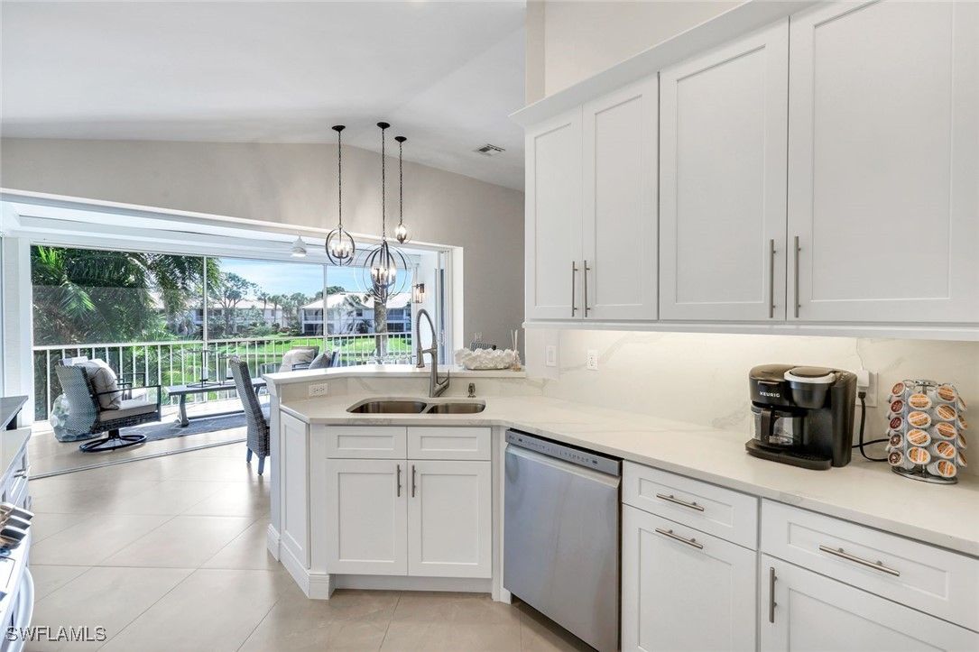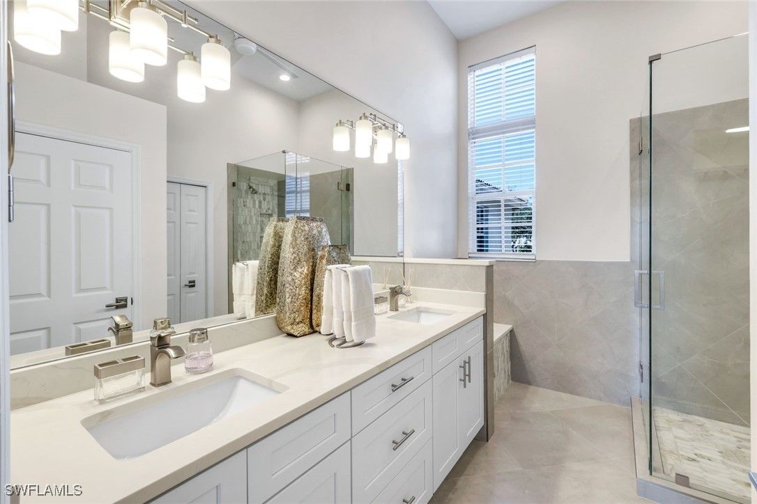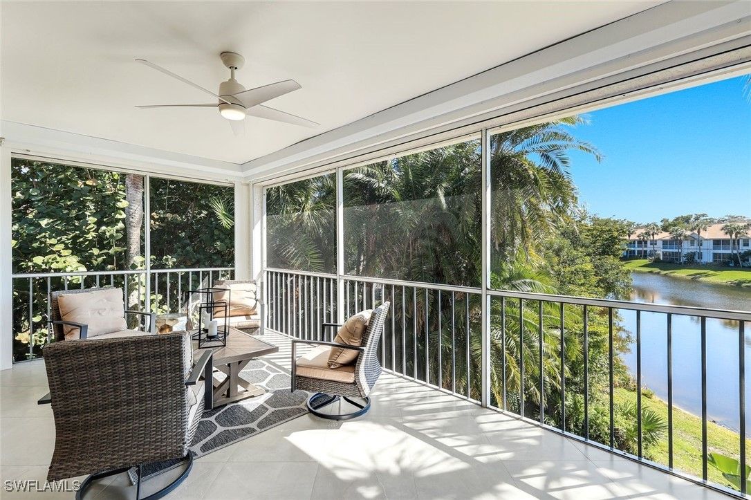 Impressively updated and thoughtfully modernized, this second-floor end-unit coach home in Harbor Landing offers an exceptional blend of refined finishes, privacy, and tranquil lake views. Tastefully furnished and impeccably decorated, the residence is truly move-in ready. New large-format diagonal tile flooring flows throughout, complemented by updated lighting and a cohesive contemporary design that feels both polished and inviting. The kitchen has been fully refreshed with quartz countertops that extend seamlessly into the backsplash, a new undermount stainless steel sink, updated cabinetry and hardware, and newer stainless-steel appliances. In the living room, a built-in recessed electric fireplace adds warmth and style, while pocketing sliders open to the screened lanai—complete with remote-controlled Storm Smart hurricane shutters—creating an effortless indoor-outdoor living experience with serene lake views, ideal for morning coffee or evening relaxation. As a top-floor end unit, the home enjoys high ceilings, abundant natural light, and outstanding privacy, with no neighbors above and additional windows enhancing the open, airy feel. The primary suite has been fully remodeled and features a spa-inspired bath, while each guest bedroom offers its own updated en-suite bath, providing comfort and privacy for family and guests alike. Additional highlights include a private one-car garage and the convenience of a low-maintenance coach home lifestyle. Residents of Harbor Landing enjoy access to a private community pool—one of the newest in Bonita Bay—featuring a waterfall and covered pavilion. Located within one of Southwest Florida’s most sought-after communities, Bonita Bay offers an unmatched array of amenities, including a BRAND-NEW Private Gulf-front Beach Club with complimentary shuttle service, Backwater Jack’s restaurant, more than 12.5 miles of walking and biking paths, and courts for basketball, tennis, pickleball, and bocce ball. The community also features canoe and kayak launches, year-round social activities, and a full-service marina with Gulf access, including opportunities for indoor or outdoor boat storage leases. Optional memberships provide access to five championship golf courses, a state-of-the-art Lifestyle Center with fitness facilities and luxury spa services, 18 Har-Tru tennis courts, and 10 pickleball courts. A rare opportunity to own a fully updated, furnished, light-filled residence in one of Bonita Bay’s most desirable enclaves—this is Florida living at its finest.