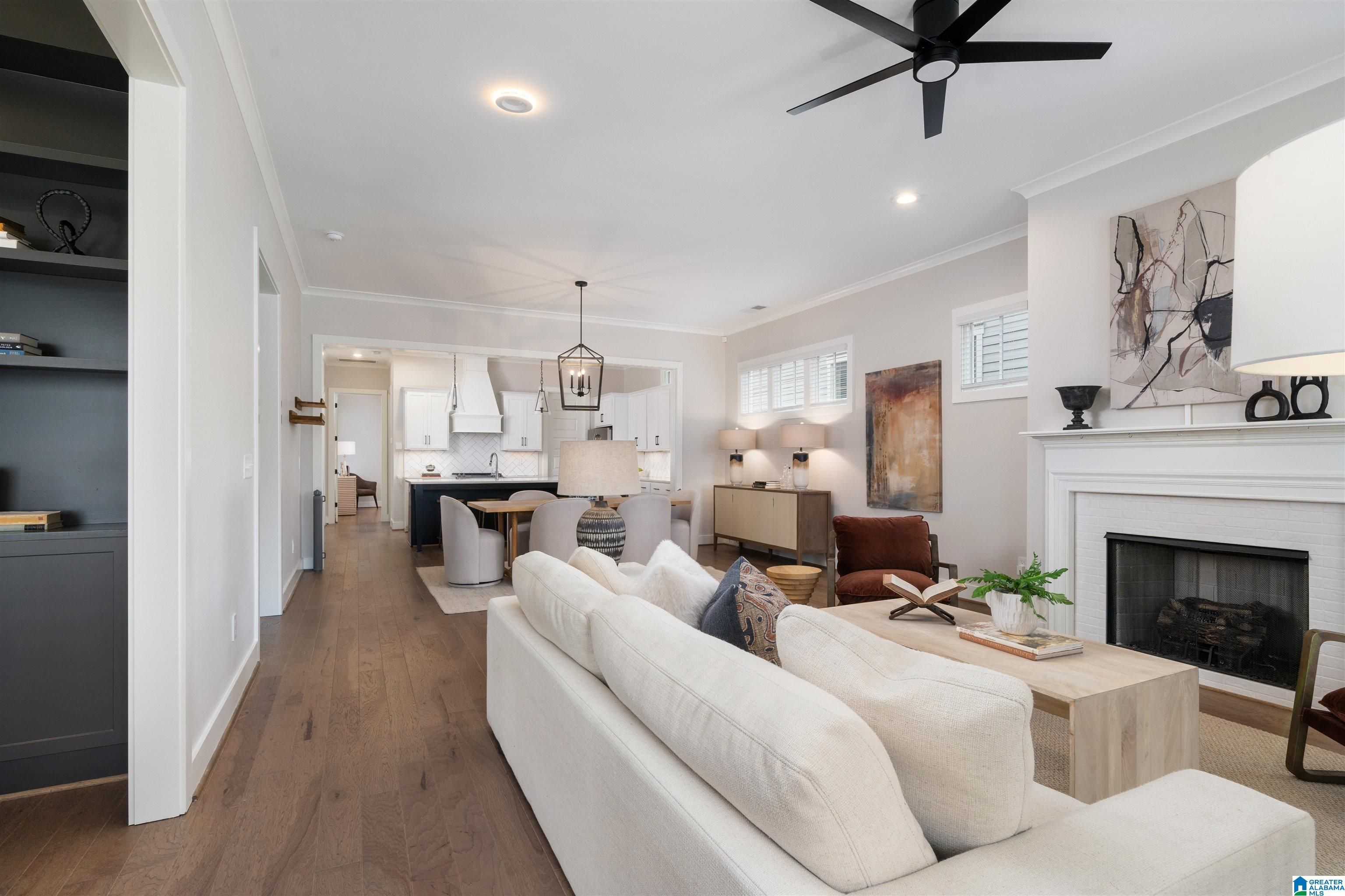Classic curb appeal and move-in ready ease set in one of Birmingham's most sought-after new developments, The Preserve. Enjoy local shops, restaurants, community amenities, and the beauty of Moss Rock just steps from your front door. Inside, the welcoming main level has an open concept floor plan with large living room w/gas fireplace, a dining room, and a beautiful kitchen with island, stainless appliances, a large pantry, and modern fixtures. The master suite has space for a king bed and features a stunning ensuite bath with soaking tub, separate shower, dual vanities, and a walk-in closet. Also on the main, a guest room with full bath and home office. Upstairs, you'll find two bedrooms, two full baths, and a large bonus room. Outside, the porch is wonderful for enjoying the neighborhood, and the back patio is the perfect spot to relax with morning coffee. Main level two car garage as well.