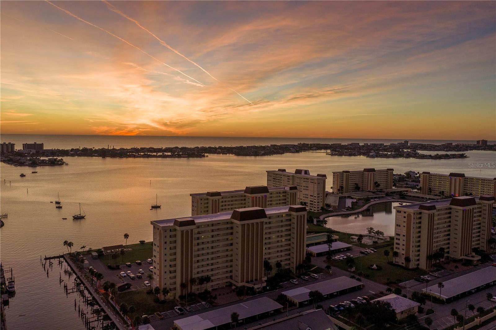 This wonderful waterfront condo is a few mere steps to Boca Ciega Bay and offers magnificent water views and majestic sunsets. It features 2 bedrooms, 2 baths plus a bright and airy Florida room. The kitchen has quartz countertops, glass tile backsplash and lots of cabinets. All new LVP flooring throughout and fresh interior paint. New stainless appliances and water heater in 2015, new AC in 2021, totally replumbed in 2015, impact windows along the waterside and hurricane shutters on all windows and on the Florida room door. Another nice touch is motorized blinds on the west windows plus California closet organizers in both closets. Your assigned covered parking space is just steps from your front door and is deeded to the unit. Sea Towers has amenities galore, including 2 heated pools, a clubhouse, tennis courts, shuffleboard courts, fishing dock, putt-putt golf, pickleball & 24 hours security guard, You're just away from some of the best beaches in the world, shopping & restaurants.