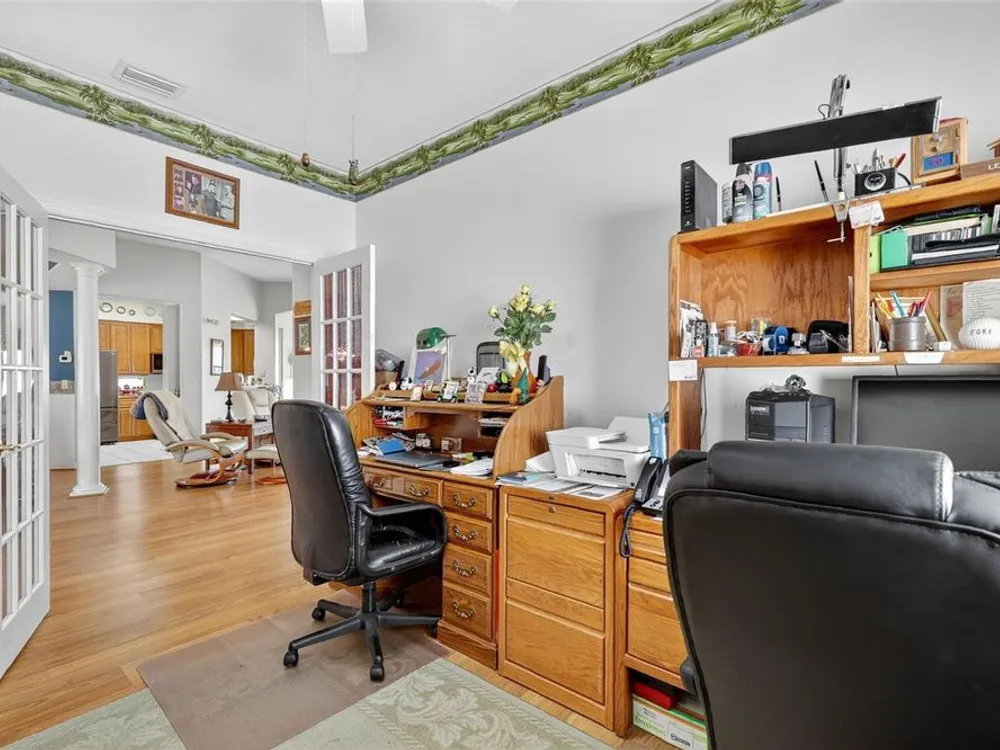 FABULOUS DUCHESS MODEL WITH EXPANSIVE GOLF COURSE AND PALATLAKAHA RIVER VIEWS! SPACIOUS BONUS ROOM! Beautifully maintained and thoughtfully updated, this 2-bedroom, 2-bath home with den offers timeless design and modern comfort throughout. The upgraded kitchen features granite countertops, stylish cabinetry, and stainless steel appliances—ideal for both everyday living and entertaining. You’ll appreciate the bright, open floor plan with elegant solid-surface flooring, a formal dining room with tray ceiling, and a large great room that opens to a versatile bonus room showcasing serene views of the golf course and river. The primary suite includes a tray ceiling, generous walk-in closet, and a luxurious bath with dual sinks, jetted tub, and walk-in shower. The guest suite is equally inviting, while the den offers a perfect space for an office or hobby room. Enjoy peace of mind with a newer roof and HVAC (2017), along with the enduring quality and comfort this popular model is known for. Located in the sought-after, resident-owned community of Royal Highlands, offering gated security, two pools (indoor & outdoor), an 18-hole golf course, restaurant, fitness center, and countless social activities. HOA includes cable, internet, and RV/boat storage. Fairly new golf cart also available for purchase.