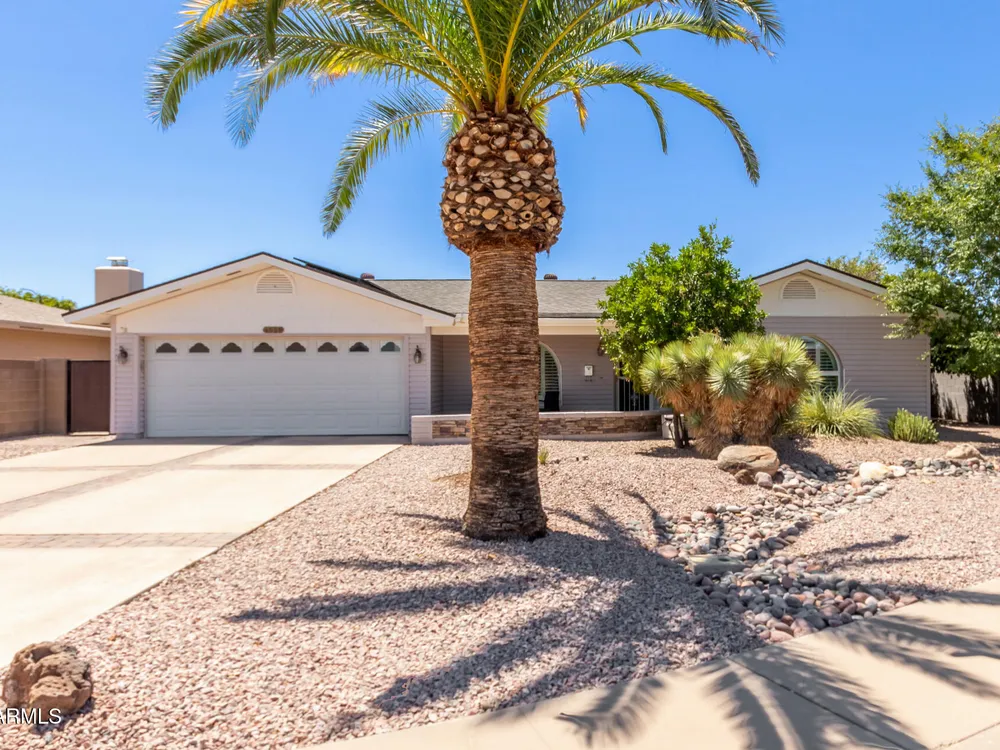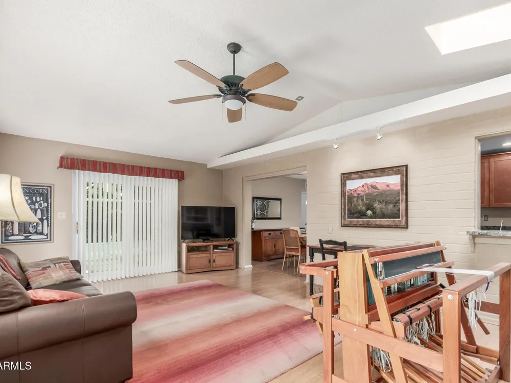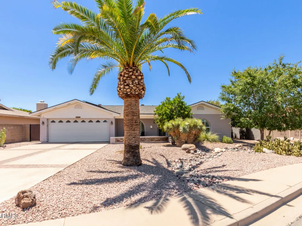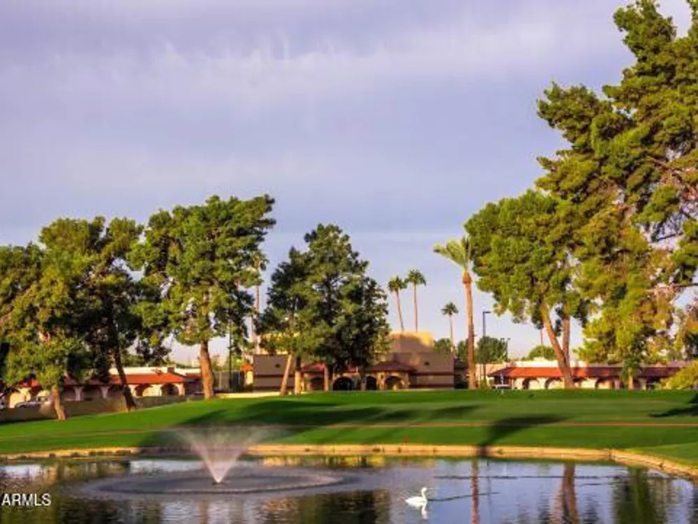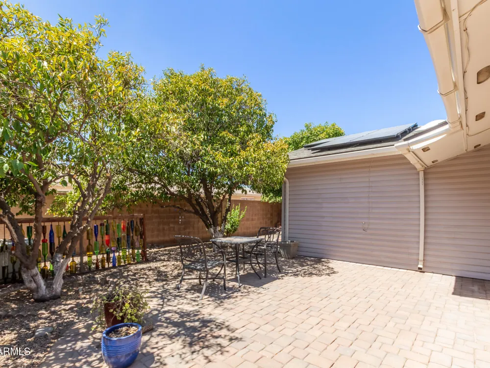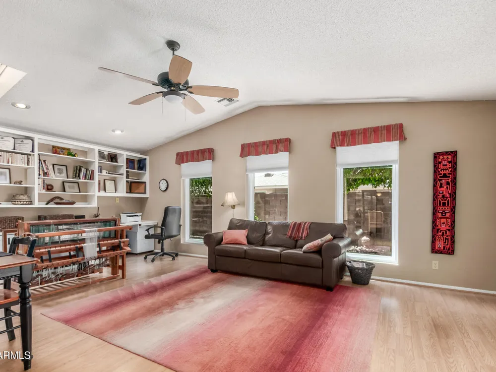 Perfectly located on a desirable cul-de-sac! Start enjoying the comfort and convenience of this energy-efficient residence in the adult Community of Sunland Village! Discover a blend of tile & wood-look flooring, owned solar, built-in book cases, a vaulted ceiling, and plantation shutters in some windows. Entertain with ease in the combined living & dining room or the large family room with a skylight that adds extra charm. The kitchen provides recessed lighting, quartz countertops, abundant cabinetry, and stainless steel appliances. The main bedroom serves as a serene retreat, featuring two mirrored door closets, and a private bathroom with a granite vanity. Spend relaxing afternoons in the Arizona room! This amazing abode won't last!