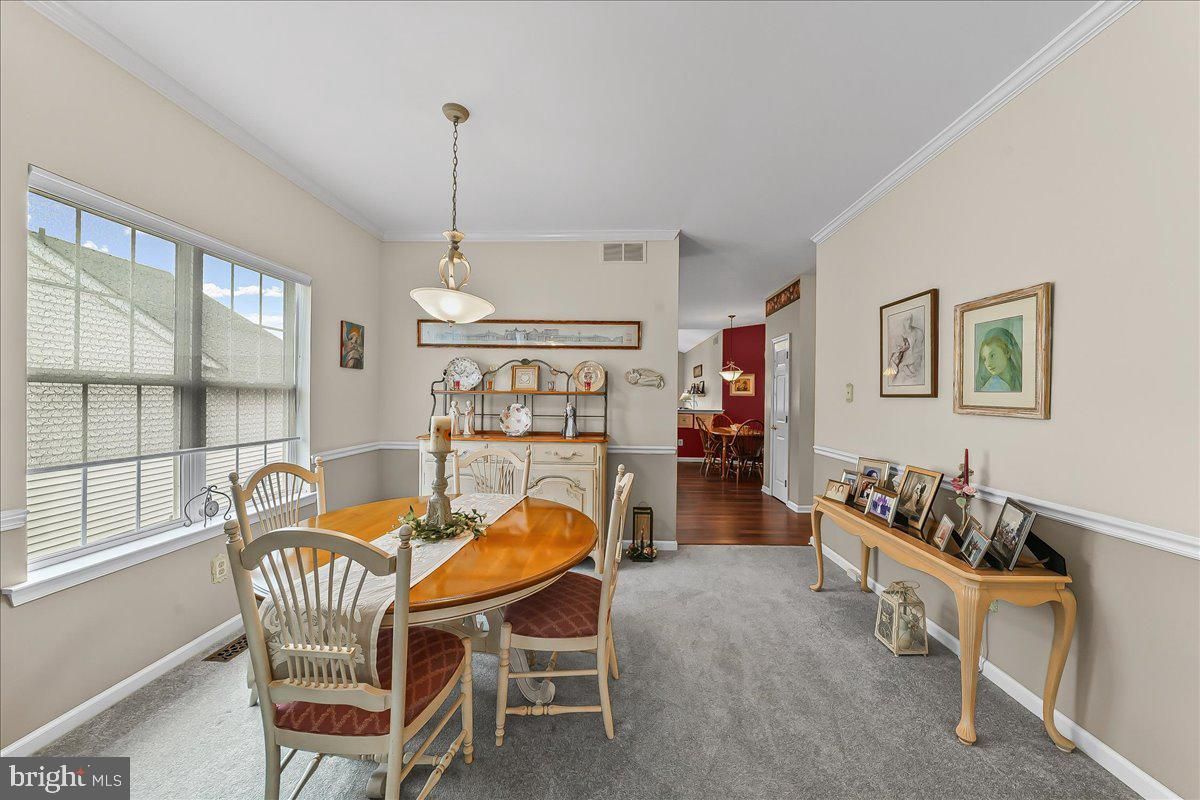 From the moment you walk up to this inviting porch and step inside the front door... you will be in love with this home! Enjoy hours of relaxation on the front porch either with your morning coffee, afternoon book or evening neighborhood watching! Once inside you will be happy to see the spacious living room and dining room combination. What a great area to entertain your new neighbors and old friends! The kitchen is so perfect! The bright white cabinets, island space for food prep, and large breakfast area is always the heart of the home! Connected nicely to the kitchen area is the huge family room! There is so much natural light in this room! And there are sliding doors that take you onto the new back deck! What a fabulous view!! When you want that quiet place to be outside, this is where you'll seek! You won't find a nicer back yard and open space behind you! Wait until you see the primary bedroom and updated bath! WOW! That truly sums it up! The owners have added a frameless shower stall with a seat, two sink vanity, new flooring and linen closet that are to die for! What a retreat at the end of the day! The laminate flooriing and huge walk-in closet add to the perfection of the primary suite! The second bedroom is a very nice size and the hall bath co-located with the bedroom offer a nice guest room/option. The basement is huge and unfinished. Let you grandchildren ride their bikes or skate around in the basement.. seriously! There's tons of room! All of this if the wonderful community, the Villages of Penn Ridge! Make your appointment and get packing!