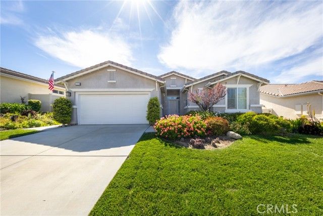 Welcome to this beautifully upgraded, move-in ready home in the prestigious 55+ Four Seasons community in Beaumont! Offering approximately 2,380 sq ft of living space on an expansive over 10,000 sq ft lot, this highly sought-after floor plan features 2 bedrooms, 2 bathrooms, and a versatile office. The spacious living room showcases high ceilings and a cozy fireplace, creating a bright, open, and inviting atmosphere throughout. The open-concept kitchen is designed for both style and function, featuring granite countertops, a gas stove, and a powerful range hood—perfect for everyday cooking and entertaining. It flows seamlessly into the living area and provides direct access to the stunning backyard garden. Step outside into your own private oasis, thoughtfully cultivated over several years. Enjoy a lush landscape filled with organic vegetables and more than 20 fruit trees—perfect for a healthy, farm-to-table lifestyle. Relax among blooming flowers, listen to birdsong, and harvest fresh produce right from your backyard. Interior and exterior upgrades include tile flooring in the main living areas and bathrooms, wood flooring in the bedrooms and office, and elegant custom wood shutters throughout, added retaining wall for extra protection and covered backyard patio, the water heater, oven, and microwave were all recently upgraded 2025. Four Seasons community offers resort-style living in a guard-gated community featuring exceptional amenities: three pools (including an indoor heated pool), three fitness centers, three clubhouses, a library, dog park, and scenic walking trails, ballroom, and libarary for residents to enjoy the lifestyle. Beautiful, peaceful, and truly move-in ready—this exceptional home offers the perfect blend of comfort, lifestyle, and community. Don’t miss this incredible opportunity to make it yours and create lasting memories in a truly special setting.