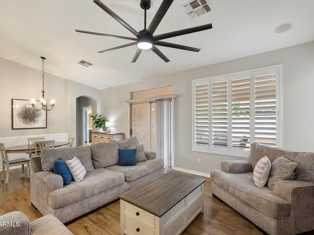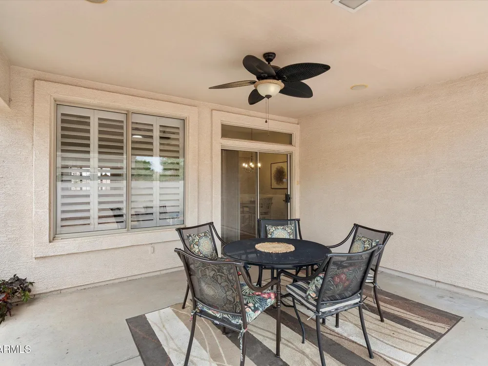 Welcome to this charming 3 bedroom 2 bath Iris model located in Trilogy at Power Ranch, a premier guard gated active adult community in the East Valley. Offering a split floor plan on a fully fenced lot, this home features a delightful covered patio, perfect for entertaining guests or simply enjoying Arizona's spectacular evenings. The home has been thoughtfully updated with tasteful finishes that create a warm and inviting feel the moment you walk through the door. From the fresh paint to the modern fixtures, every detail has been carefully selected to provide both comfort and style The kitchen sparkles with updated appliances and elegant cabinetry, while the bathrooms have been refreshed for a clean, contemporary look. The flooring ties it all together with a seamless flow that complements every space. Truly a move-in-ready home, with all the work already done for you. Nestled at the base of the San Tan Mountains, the community's location provides convenient access to everything Gilbert and Queen Creek have to offer. Within Trilogy, enjoy an abundance of amenities including pickleball, bocce ball, swimming pools, golf, tennis, fitness facilities, dining options, social clubs, and countless activities to suit every interest. This home beautifully combines comfort, community, and convenience, ready for you to start your next chapter.