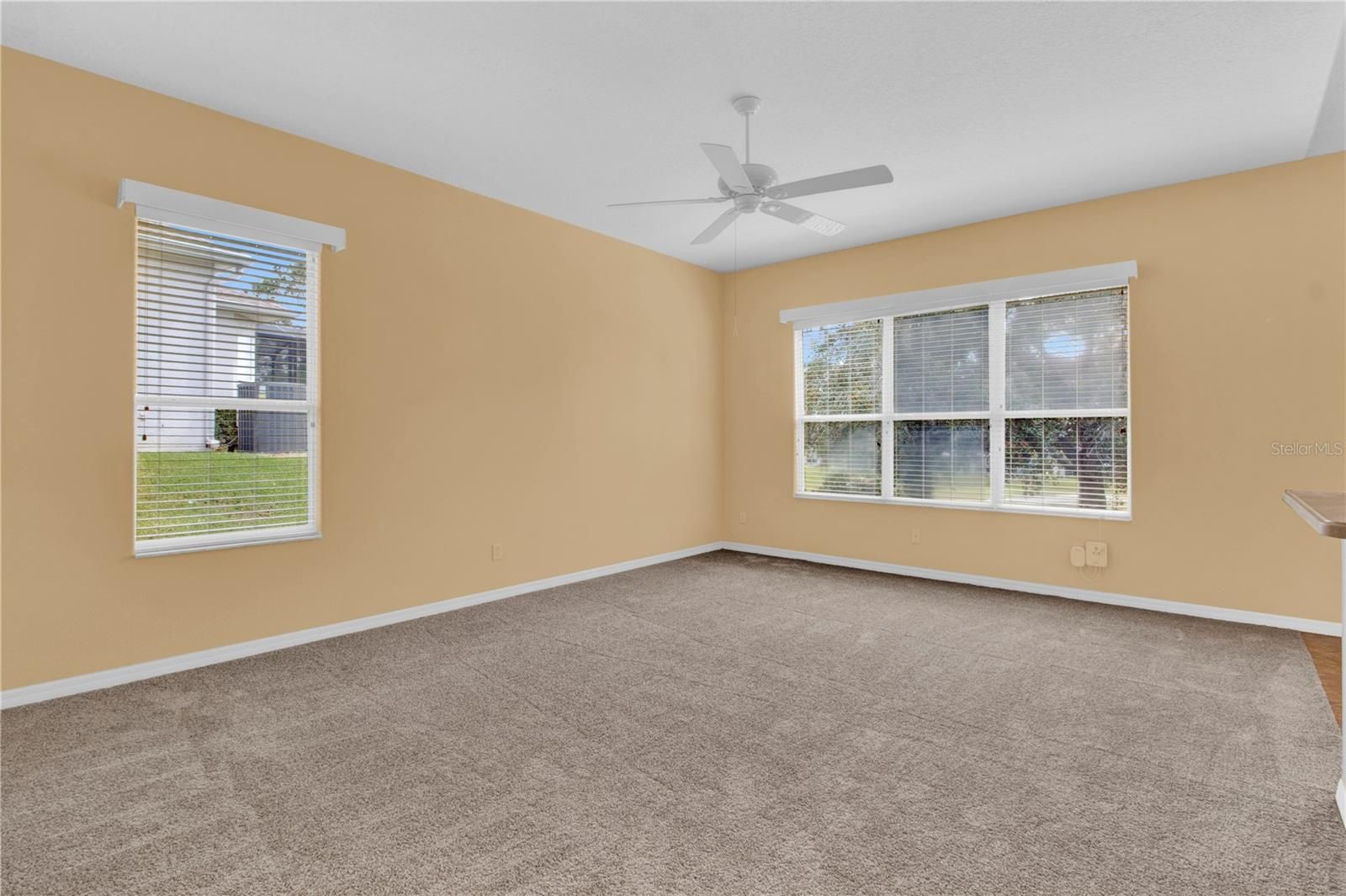 PRICE DROP! Seller will contribute to rate buy down or closing costs! Check out this beautiful, move-in-ready home located on the golf course (hole #12.) Included with your low HOA fee are: two golf courses, pro-shop, restaurant, tennis courts, pickleball courts, shuffleboard, bocce ball, horseshoes, a softball field, billiards, 3 swimming pools, 3 activity centers, 2 fitness centers, a fishing pier, archery, RV & boat storage, and many more amenities. This is such a vibrant community with a wide range of recreational and social opportunities; there are over 200 clubs to fit all your hobby interests! Some of the most recent upgrades to the home include a NEW ROOF, fresh interior paint and brand new carpet. The Hydrangea model home features 15' ceilings, an open, split floor plan, central vacuum, a large front porch and an extended screened-in back lanai where you can watch your favorite golfer! This gated community allows you to come and go with the confidence and security you need! Hang out with your friends at the regal clubhouses for dinners, socials, and even bingo! There is always something to do! The Harris Chain of Lakes boat ramp is just a few miles away and it's just a short trip to the historic downtown Mount Dora for lunch and shopping!