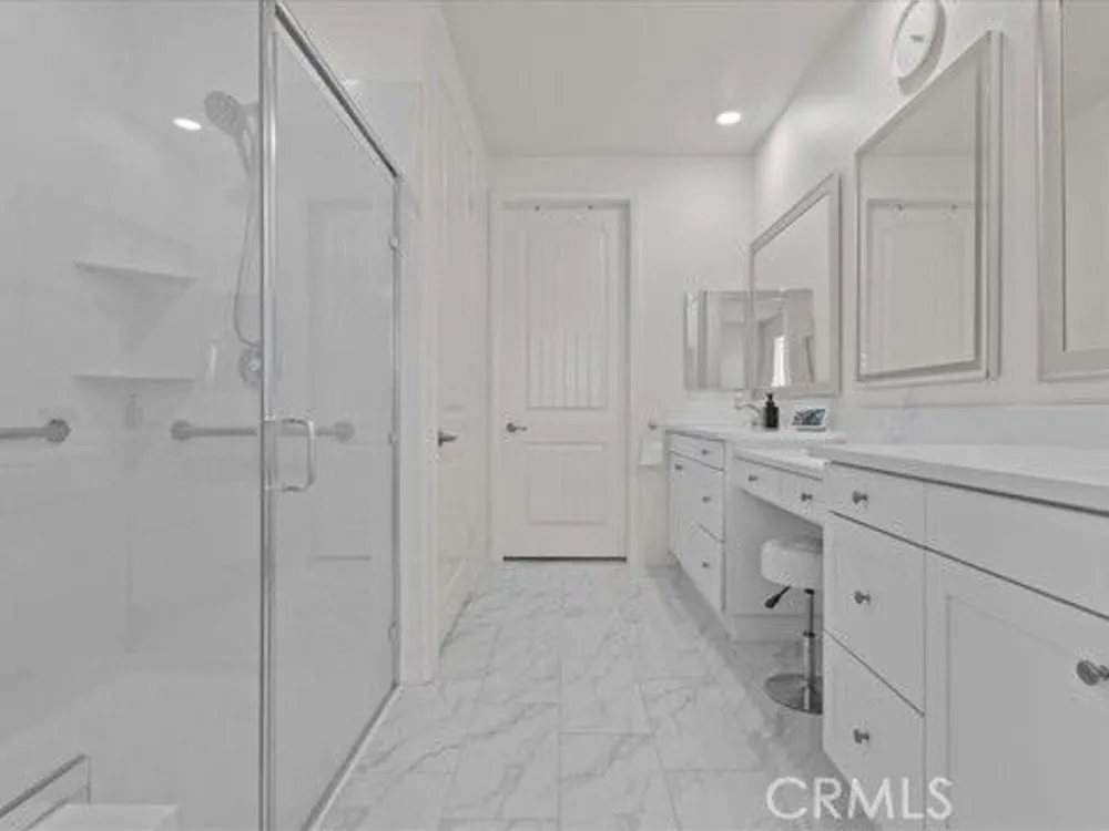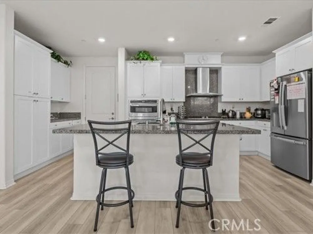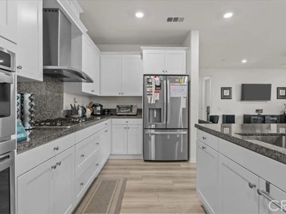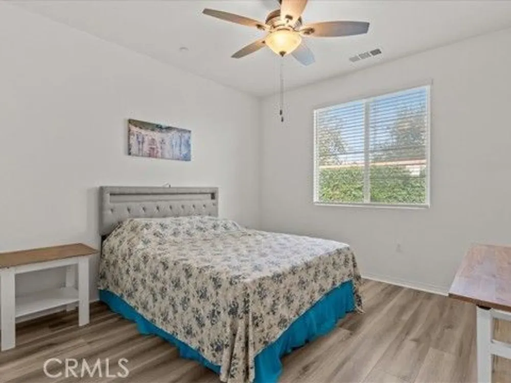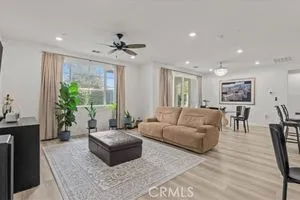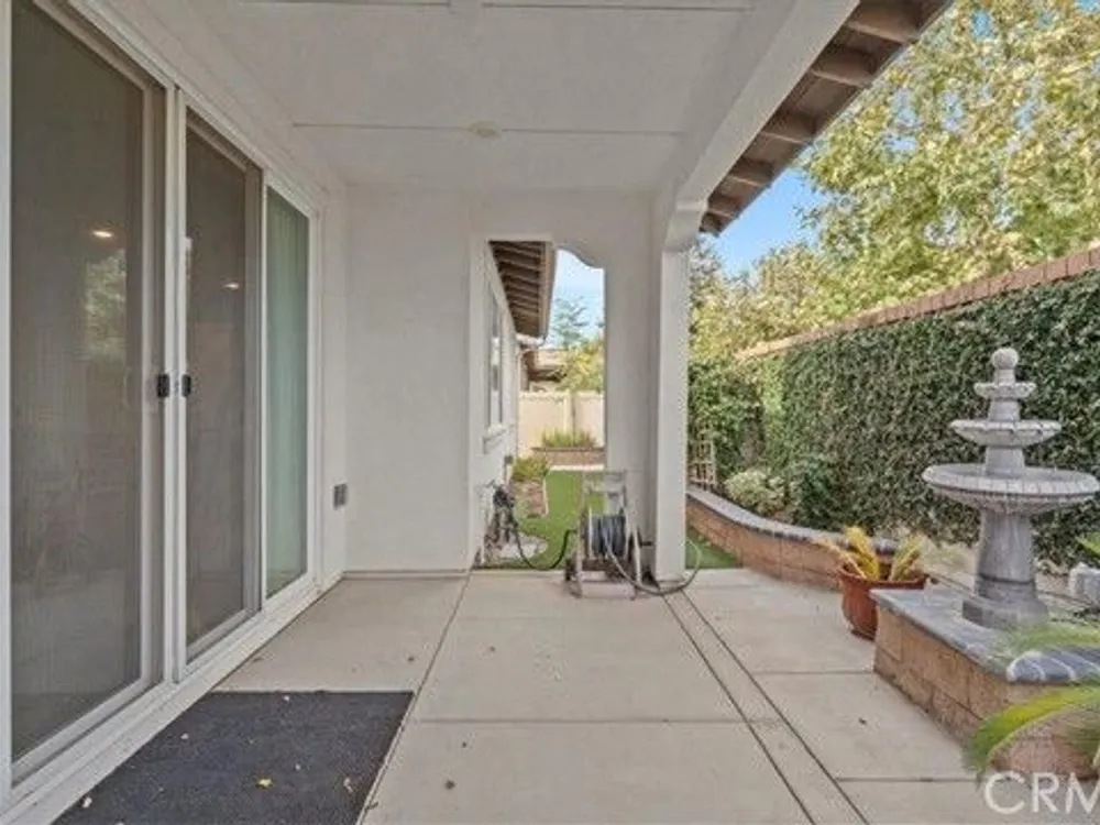 Absolutely gorgeous Spanish Monterey Ranch style home located in the highly sought after 55+ Active Adult Community of Esperanza, a gated masterplan community in Ontario Ranch. TURN-KEY & smart home equipped, this beautiful single-story home built in 2021 features many upgrades, including luxury vinyl plank flooring, tankless water heater, Ring Doorbell, solar panels & much more. Step inside its open floorpan that leads to its gourmet kitchen, formal living & dining rooms with wall to wall windows on its east side, perfect for watching the sunrise. Kitchen includes upgraded granite countertops, stainless steel appliances, kitchen island & for easy access, pull out receptacles. Well lit with recessed lighting throughout as well as dual pane windows & upgraded center-meeting sliding doors that invite plenty of natural light thru the dining room which opens to the well designed backyard that needs minimal upkeep being fully paved complete with artificial turf along with planters for gardening. Enjoy your morning coffee under the covered porch similar to a California Room offering a seamless outdoor & indoor living space. Equally well lit, enjoy the master bedroom with an en-suite, master bath perfect with dual vanities, walk in shower. Adjacent to the master is a separate laundry room for added convenience plus additional bedroom & hallway bath similarly upgraded. Park in the 3-bay garage with plenty of additional street & community parking plus wider driveway entry that leads to its lot premium location with no rear neighbors along its main backyard offering more privacy & open air feel, as it backs to landscaping & sidewalk. Also the front yard features low-maintenance landscaping with mature shrubs and trees that complement the home's Spanish-style architecture, adding to the home’s beautiful curb appeal. And homeowners can enjoy all of the resort-style amenities and activities offered in the La Jolla Club, a 9,000-square-foot clubhouse with swimming pool, fitness center, outdoor kitchen and more. While walking distance to the Station at Eastvale and the Goodman Center anchored by Costco, the home is also only minutes away from the 60 & 15 fwys as Ontario Mills is a short drive for additional shopping, eateries and entertainment. Welcome to 4547 S Luna Privado.