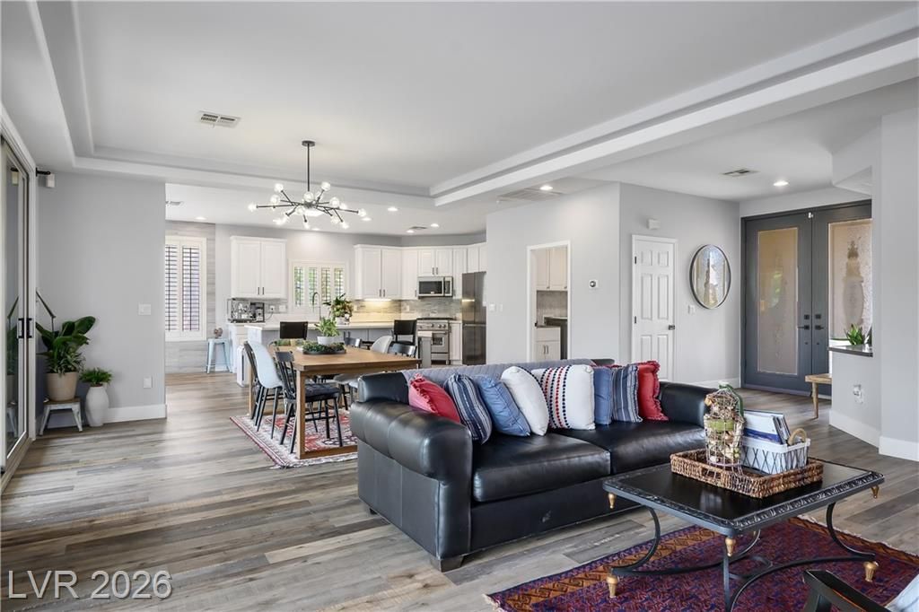 Experience elevated living at 4549 Largo Cantata St, nestled in the prestigious 55+ Siena community—a premier guard-gated enclave known for its tranquility, resort-style amenities, and vibrant lifestyle. This fully renovated home offers elegant single-story living with a spacious open floor plan and thoughtful upgrades throughout. Enjoy a chef-inspired kitchen with quartz countertops, an island, and ample cabinetry and pantry space for effortless organization. The luxuriously sized primary suite provides a serene retreat with a modern style bathroom and generous closet space. Savor stunning, uninterrupted views of the lush fairways and dramatic mountain backdrop from your private backyard retreat. This serene outdoor setting offers peaceful living and picturesque sunsets. Just minutes from Siena’s clubhouse, fitness center, golf, pools, and events, this home offers luxury made easy in one of Las Vegas’ premier age-qualified communities. Welcome to the lifestyle you deserve.