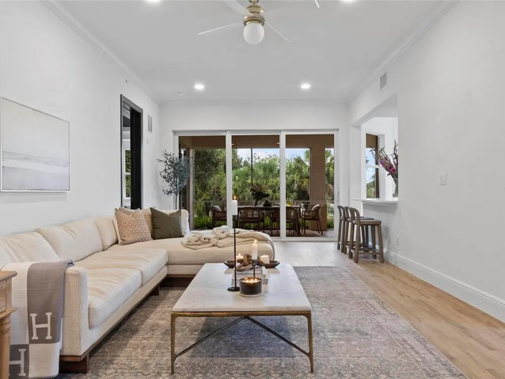Introducing The Oakmont at Grand Vista, Grand Haven’s newest Intracoastal development. This 3-bedroom, 3-bath ground-level corner residence spans 2,167 square feet and represents an incredible opportunity to enjoy a peaceful and relaxed coastal lifestyle. Perfectly positioned just steps from the Grand Haven Golf Club clubhouse, this home offers serene views and the gentle ambiance of the Intracoastal Waterway. Concrete block construction, high-impact windows and doors, and a Flood Zone X location ensure strength, safety, and lasting peace of mind. Inside, 10-foot ceilings, crown molding, and 7-inch baseboards establish an open, elegant atmosphere. The gourmet kitchen showcases European-style cabinetry with deep pull-out drawers, luxury quartz countertops, stainless steel GE appliances, and a custom Italian tile backsplash. The formal dining area and cozy café nook create a seamless flow for entertaining or unwinding at home. The primary suite is a tranquil retreat, featuring dual closets with custom built-ins and a spa-inspired bath with a freestanding soaking tub, walk-in shower, dual vanities, and private water closet. Two guest suites—one with its own ensuite bath—offer comfort and privacy for family and visitors. Additional highlights include a laundry room with sink and storage, a private 2-car garage with epoxy floor, and a screened-in patio with tile flooring—perfect for morning coffee or evening relaxation. Residents of Grand Vista enjoy resort-style amenities including a pool, fitness center, café, tennis and pickleball courts, and scenic walking trails along the Intracoastal. With low monthly fees covering water, sewer, cable, internet, maintenance, etc. The Oakmont combines thoughtful design, convenience, and tranquility in one of Palm Coast’s most desirable communities.