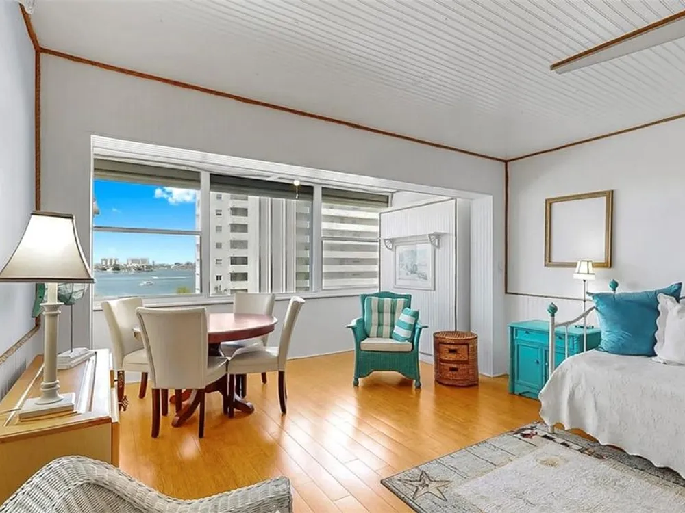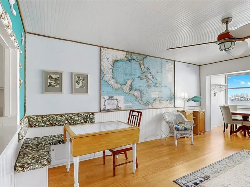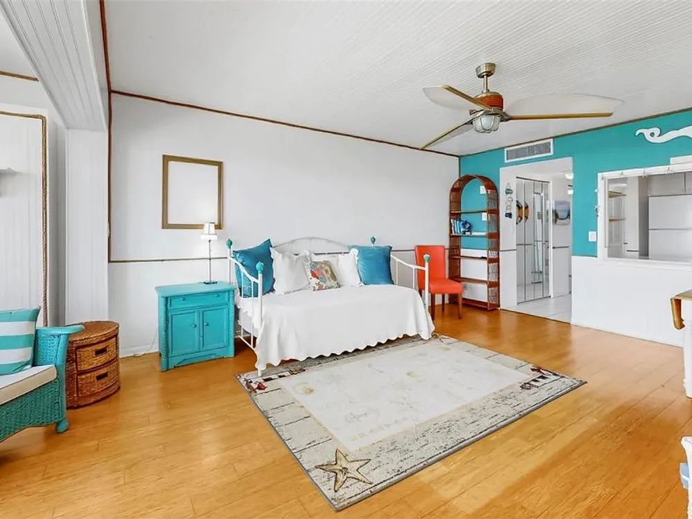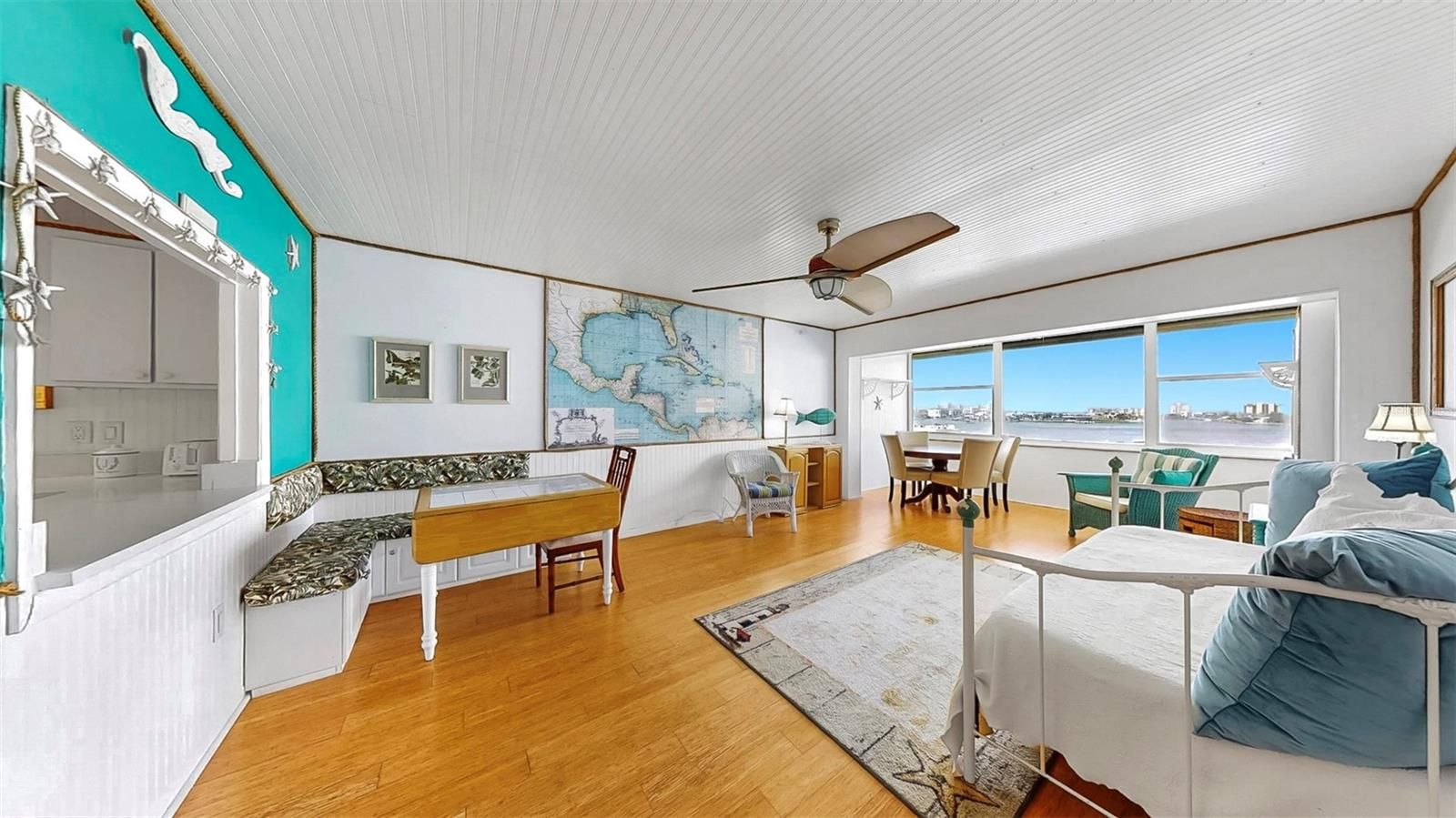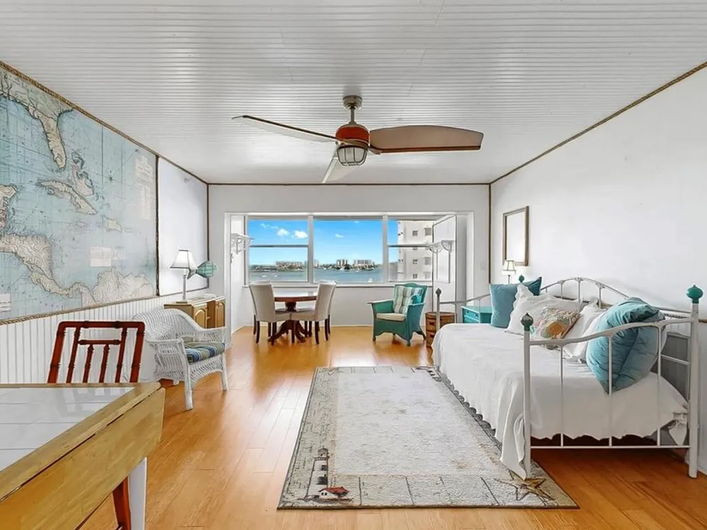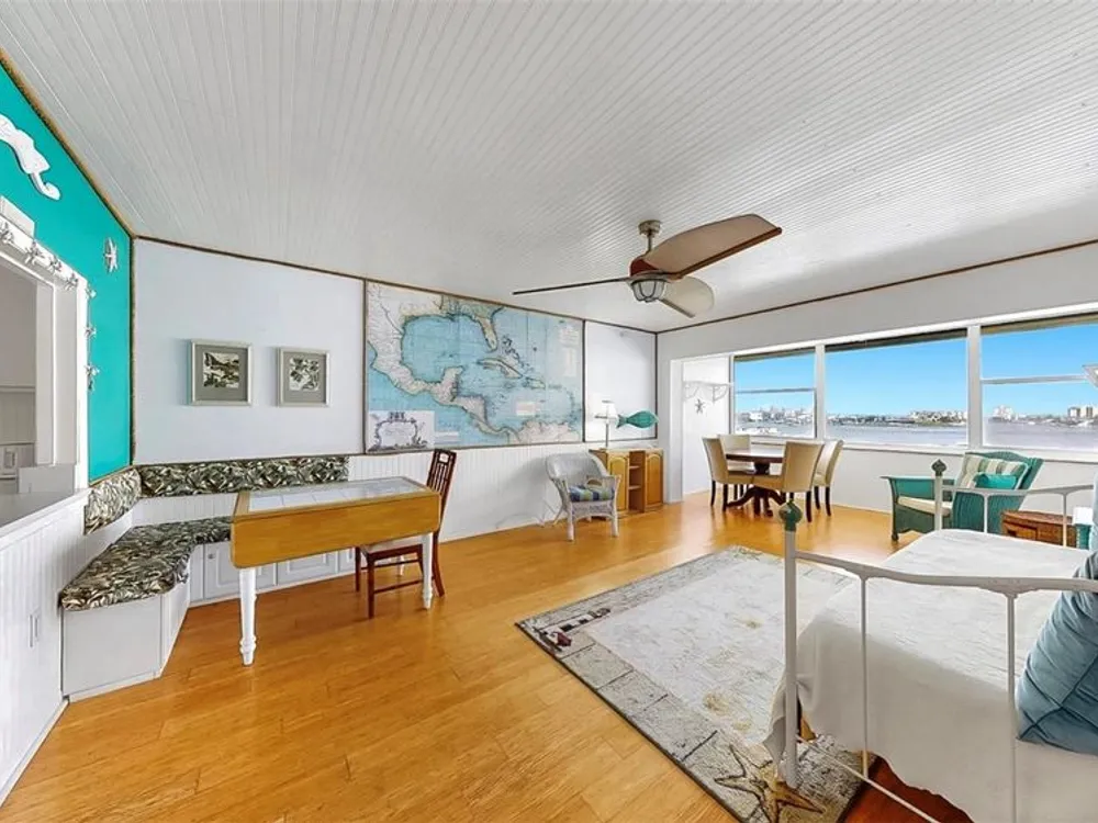 Catch every sunset from this rare waterfront studio with wide open western views that feel like a private postcard. Inside you’ll find a bright and breezy layout with a full-size kitchen, beadboard ceiling, bamboo flooring, and a fun Key West flair. The windows have been replaced and there are storm shutters for peace of mind. Mechanical updates include a water heater from 2016 and an A C from October 2019. Sold fully furnished with a queen Murphy bed so you can maximize space for relaxing or entertaining. This Housing for Older Persons Act compliant 55 plus waterfront community is gated with 24 hour security and loaded with amenities. Enjoy two sparkling pools that are cooled in summer and heated in winter, fishing docks, covered picnic shelters, and barbecue grills. The clubhouse hosts stage shows, potlucks, dances, bingo, darts, cards, and plenty of games, plus tennis, pickleball, shuffleboard, water aerobics, saunas, and a fitness center led by a full-time social director. Stroll around the lagoon and take in the tropical landscaping. Walk to shopping, Publix, restaurants, banking, and the American Legion. The beautiful Gulf beaches are about 1 mile away, with Seminole City Center and the VA hospital just minutes away. Covered boat slips and kayak space are available for rent when offered. Come live your dream on the water.