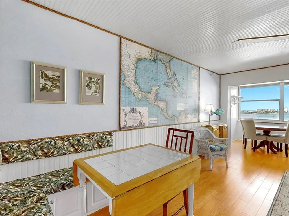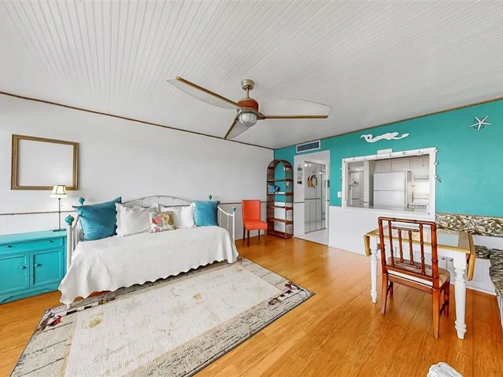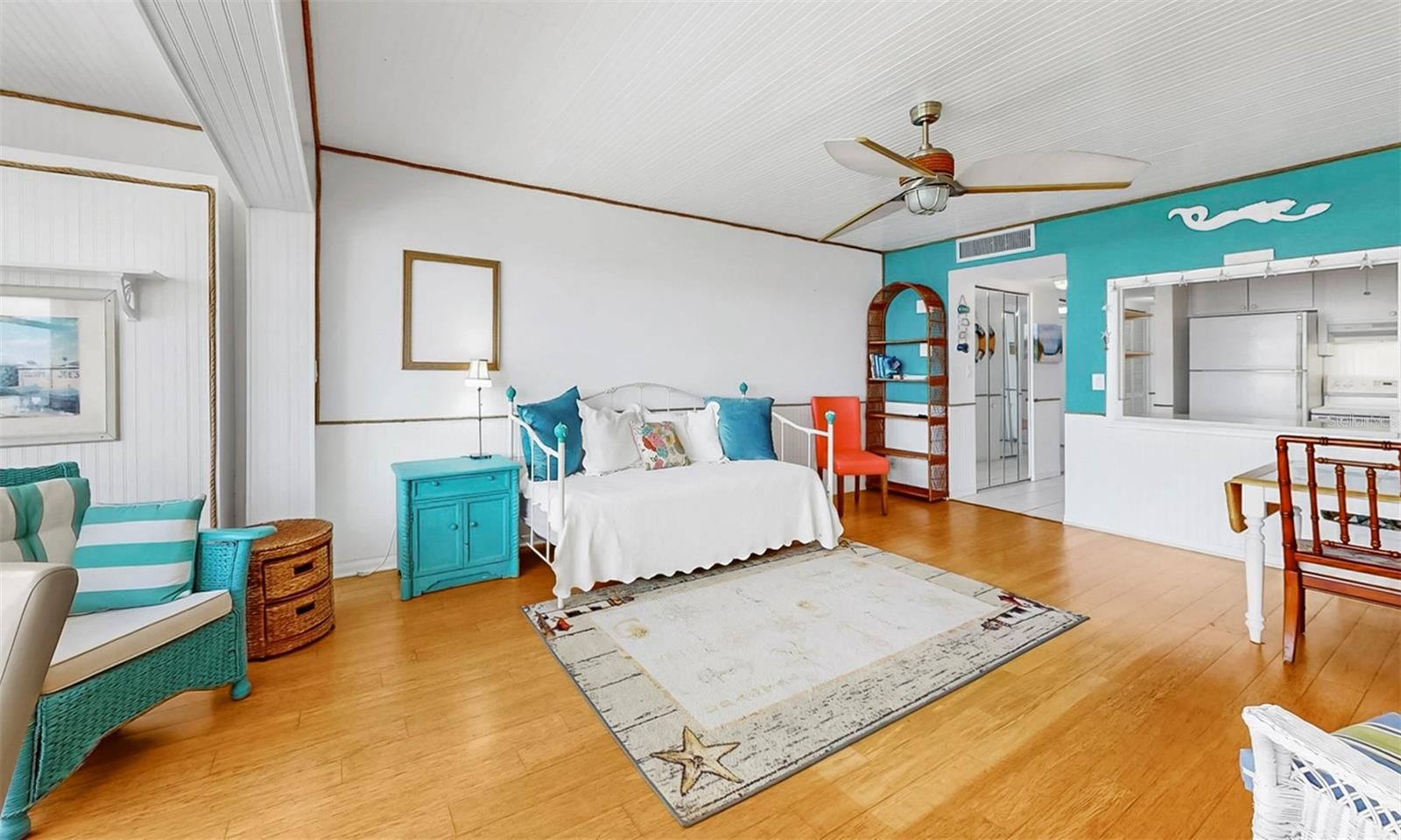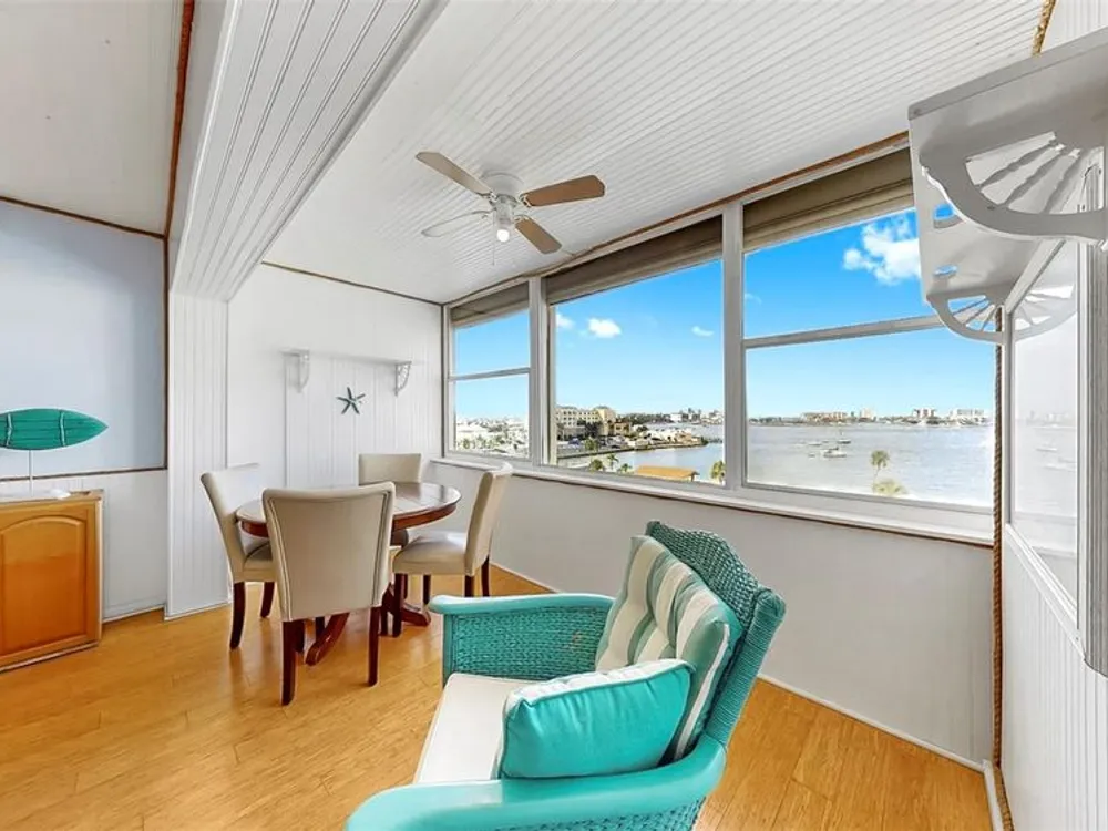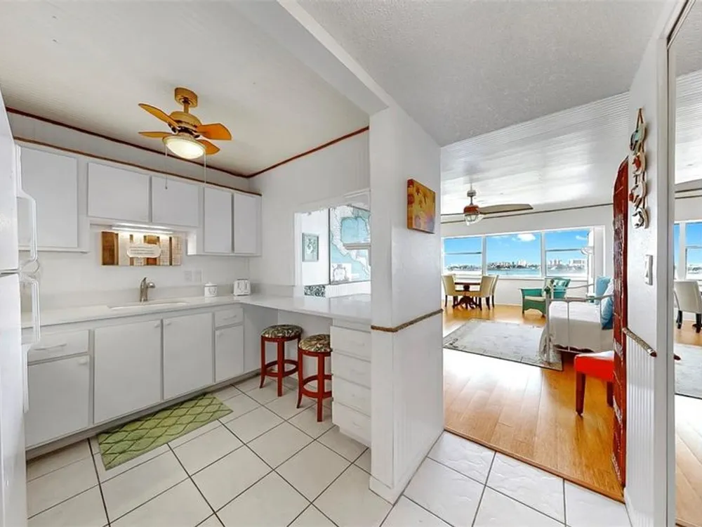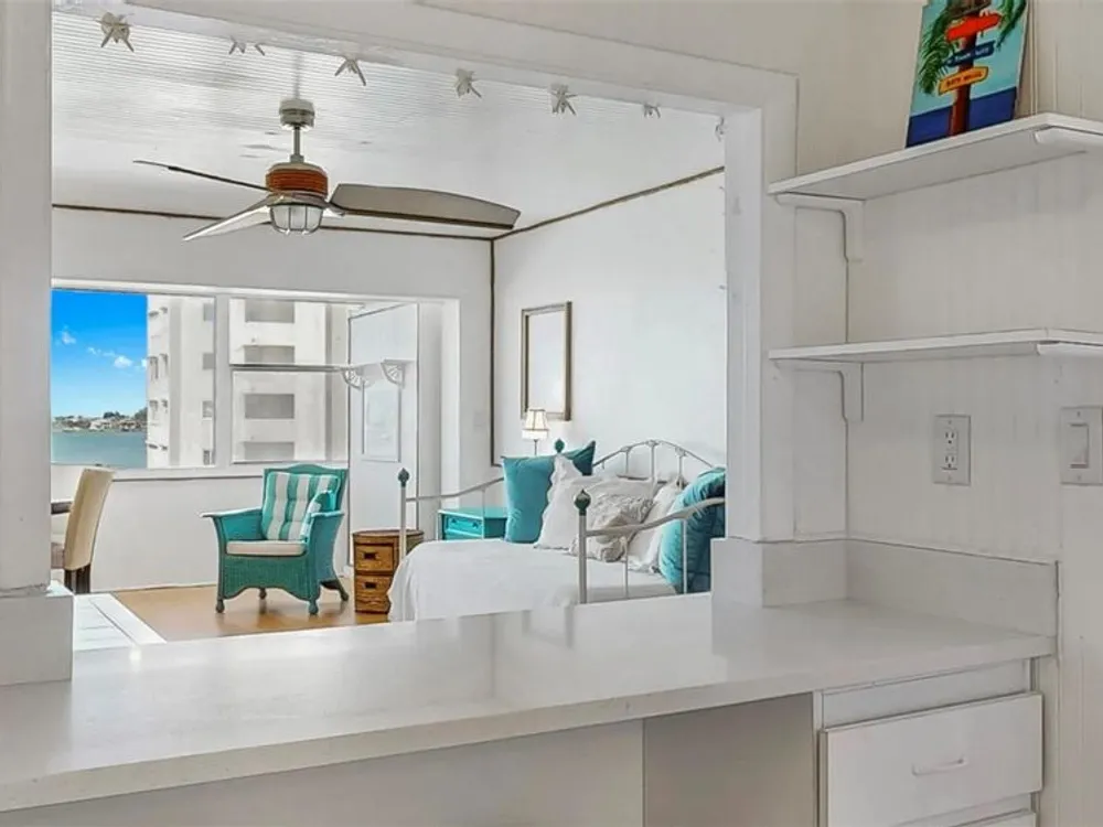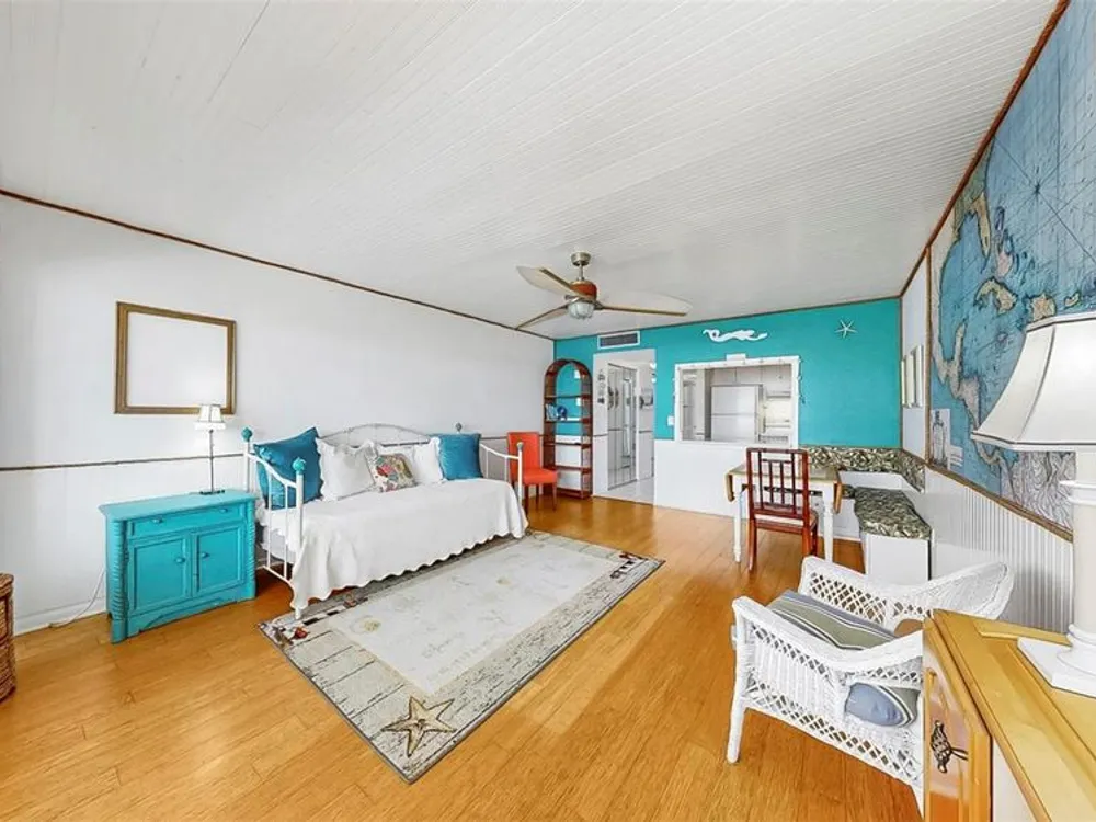 Catch every sunset from this rare waterfront studio with wide open western views that feel like a private postcard. Inside you’ll find a bright and breezy layout with a full-size kitchen, beadboard ceiling, bamboo flooring, and a fun Key West flair. The windows have been replaced and there are storm shutters for peace of mind. Mechanical updates include a water heater from 2016 and an A C from October 2019. Sold fully furnished with a queen Murphy bed so you can maximize space for relaxing or entertaining. This Housing for Older Persons Act compliant 55 plus waterfront community is gated with 24 hour security and loaded with amenities. Enjoy two sparkling pools that are cooled in summer and heated in winter, fishing docks, covered picnic shelters, and barbecue grills. The clubhouse hosts stage shows, potlucks, dances, bingo, darts, cards, and plenty of games, plus tennis, pickleball, shuffleboard, water aerobics, saunas, and a fitness center led by a full-time social director. Stroll around the lagoon and take in the tropical landscaping. Walk to shopping, Publix, restaurants, banking, and the American Legion. The beautiful Gulf beaches are about 1 mile away, with Seminole City Center and the VA hospital just minutes away. Covered boat slips and kayak space are available for rent when offered. Come live your dream on the water.