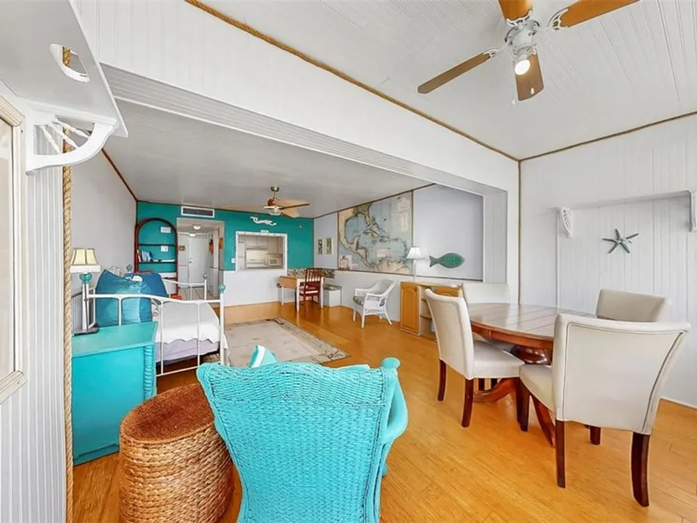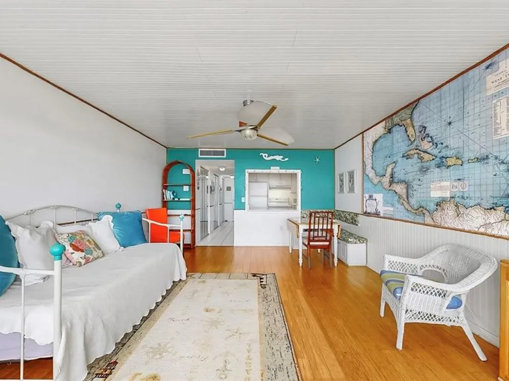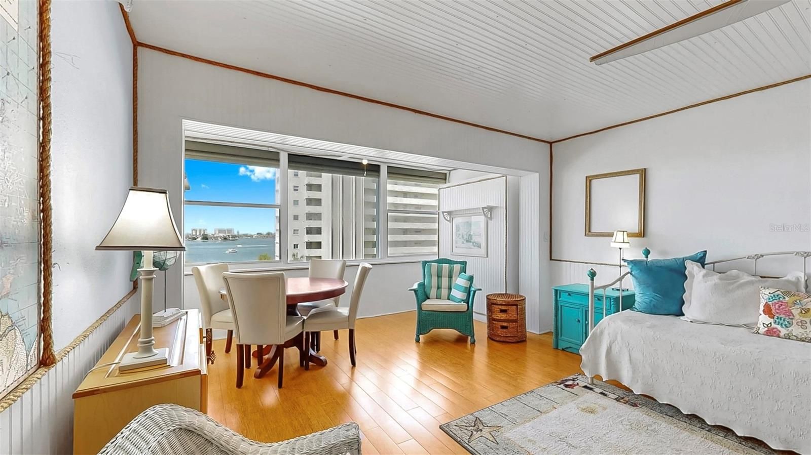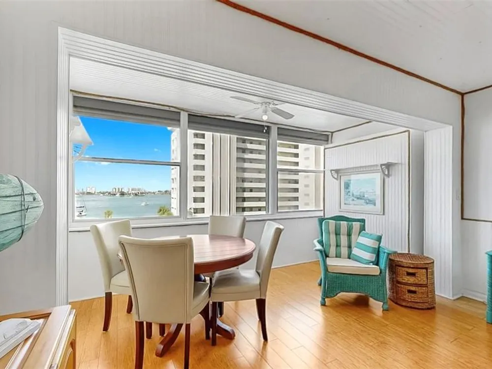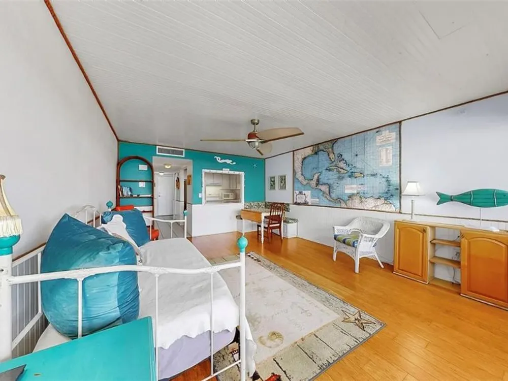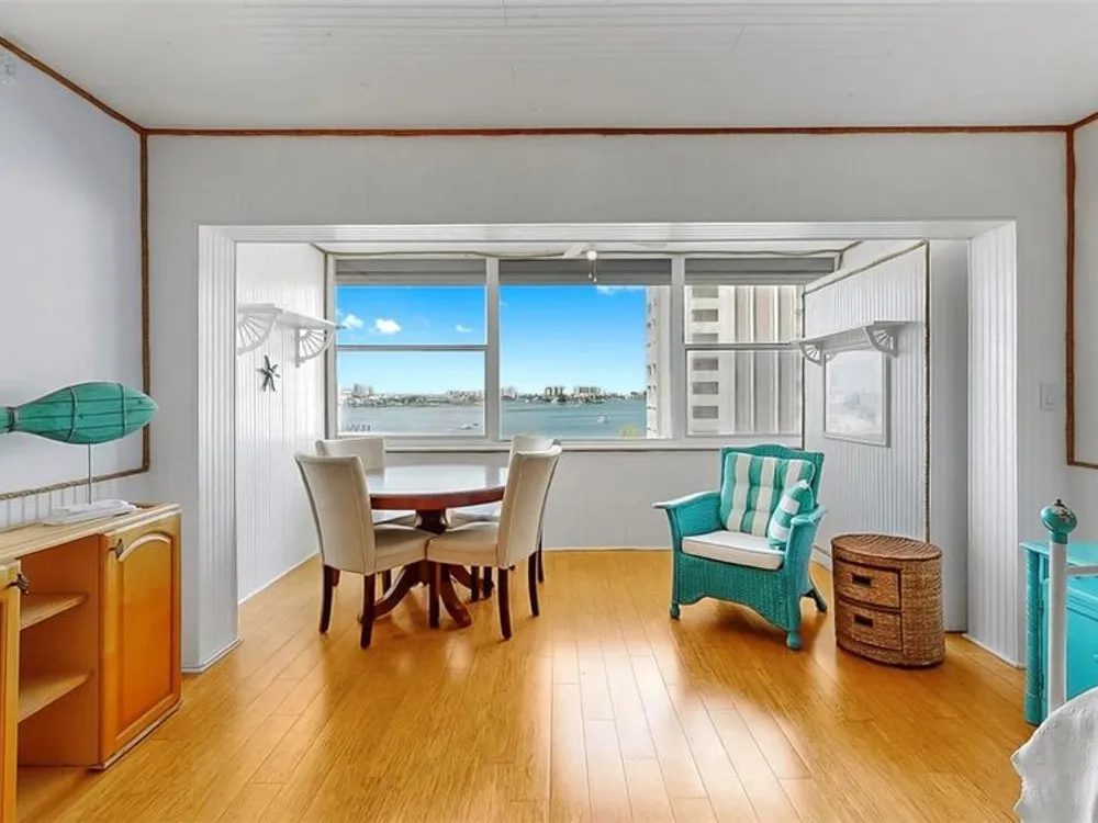Catch every sunset from this rare waterfront studio with wide open western views that feel like a private postcard. Inside you’ll find a bright and breezy layout with a full-size kitchen, beadboard ceiling, bamboo flooring, and a fun Key West flair. The windows have been replaced and there are storm shutters for peace of mind. Mechanical updates include a water heater from 2016 and an A C from October 2019. Sold fully furnished with a queen Murphy bed so you can maximize space for relaxing or entertaining. This Housing for Older Persons Act compliant 55 plus waterfront community is gated with 24 hour security and loaded with amenities. Enjoy two sparkling pools that are cooled in summer and heated in winter, fishing docks, covered picnic shelters, and barbecue grills. The clubhouse hosts stage shows, potlucks, dances, bingo, darts, cards, and plenty of games, plus tennis, pickleball, shuffleboard, water aerobics, saunas, and a fitness center led by a full-time social director. Stroll around the lagoon and take in the tropical landscaping. Walk to shopping, Publix, restaurants, banking, and the American Legion. The beautiful Gulf beaches are about 1 mile away, with Seminole City Center and the VA hospital just minutes away. Covered boat slips and kayak space are available for rent when offered. Come live your dream on the water.