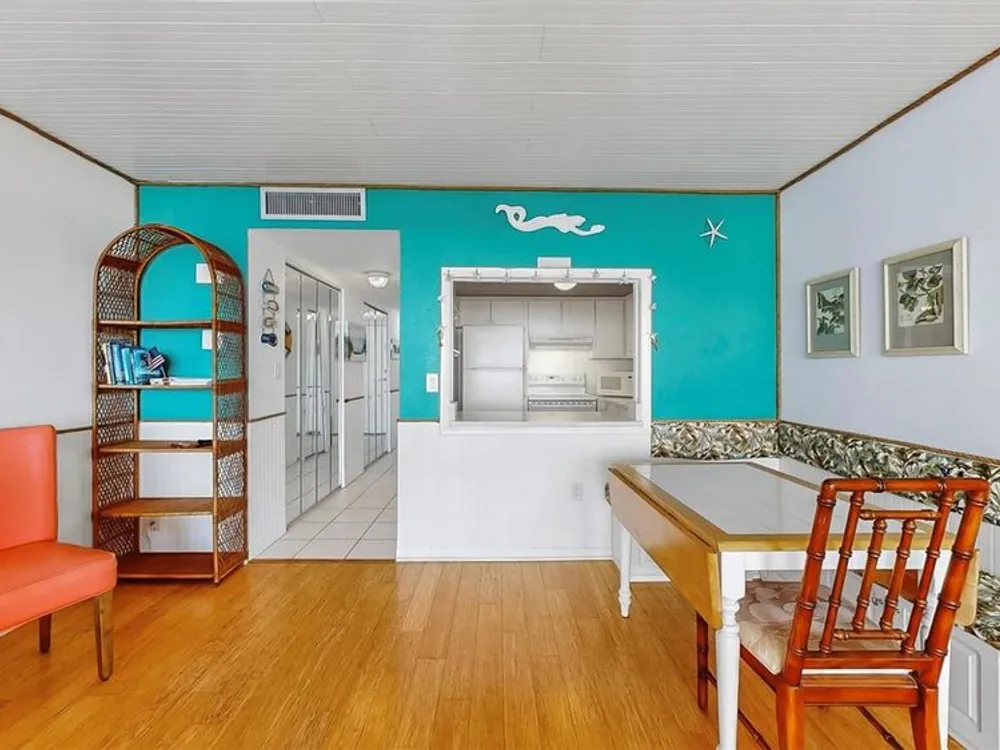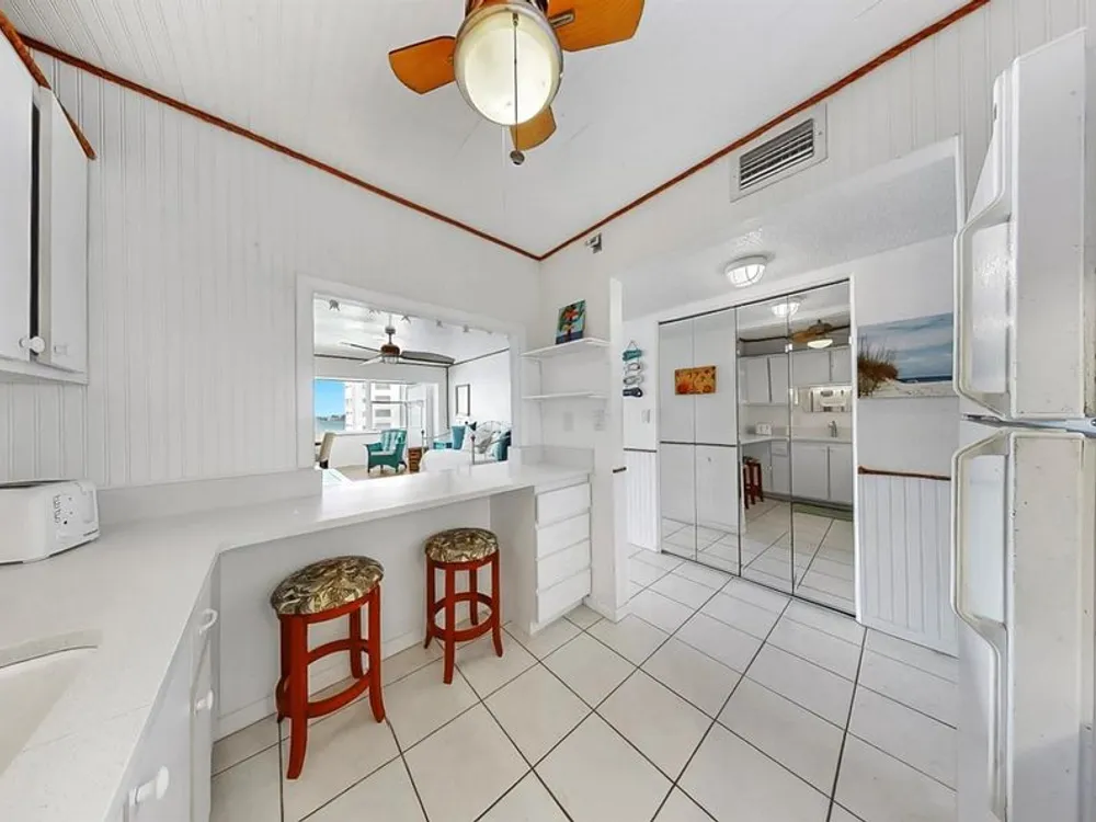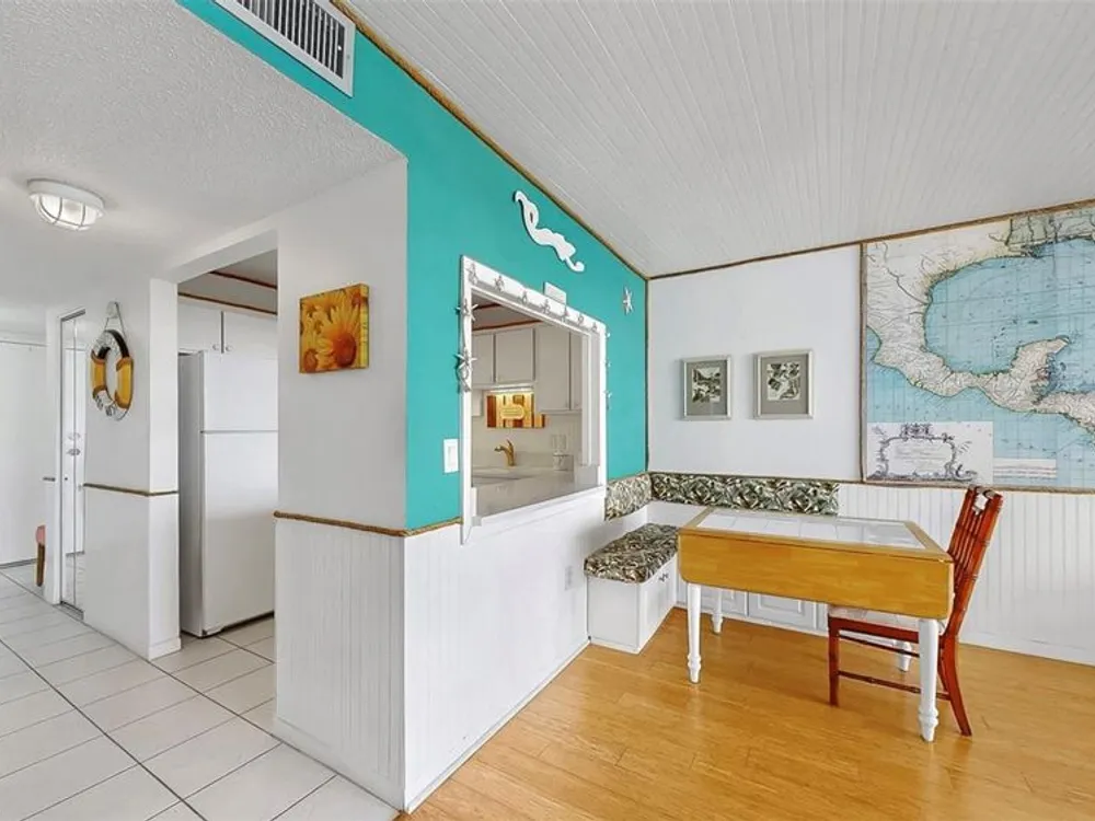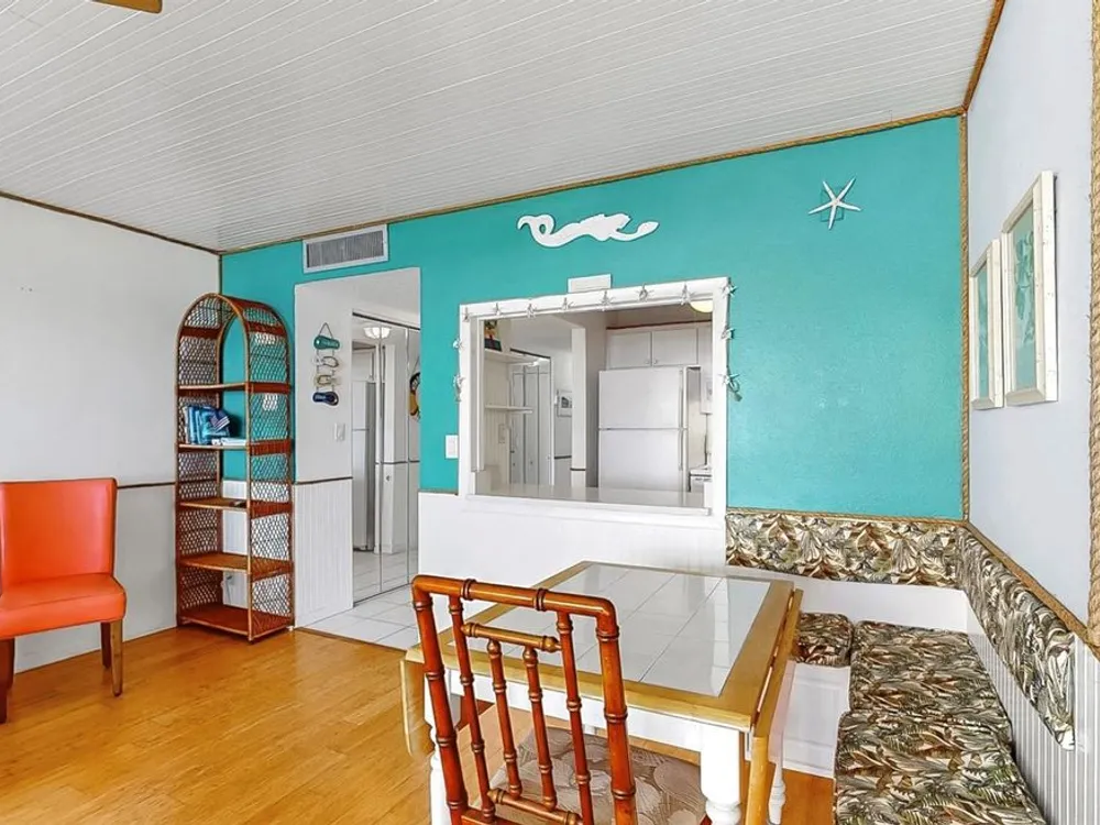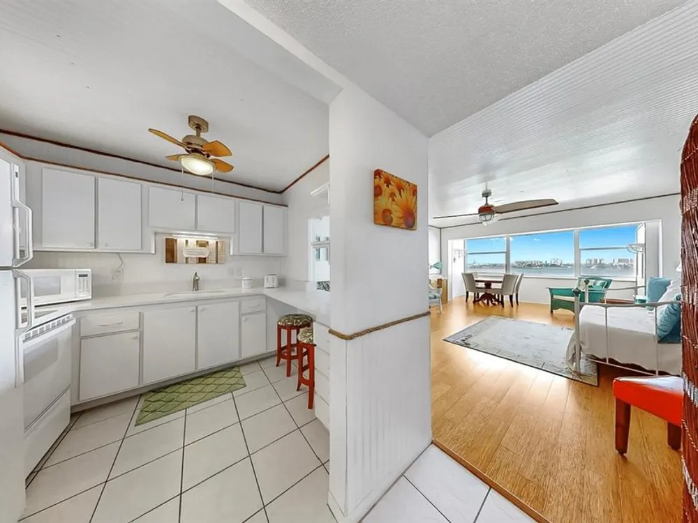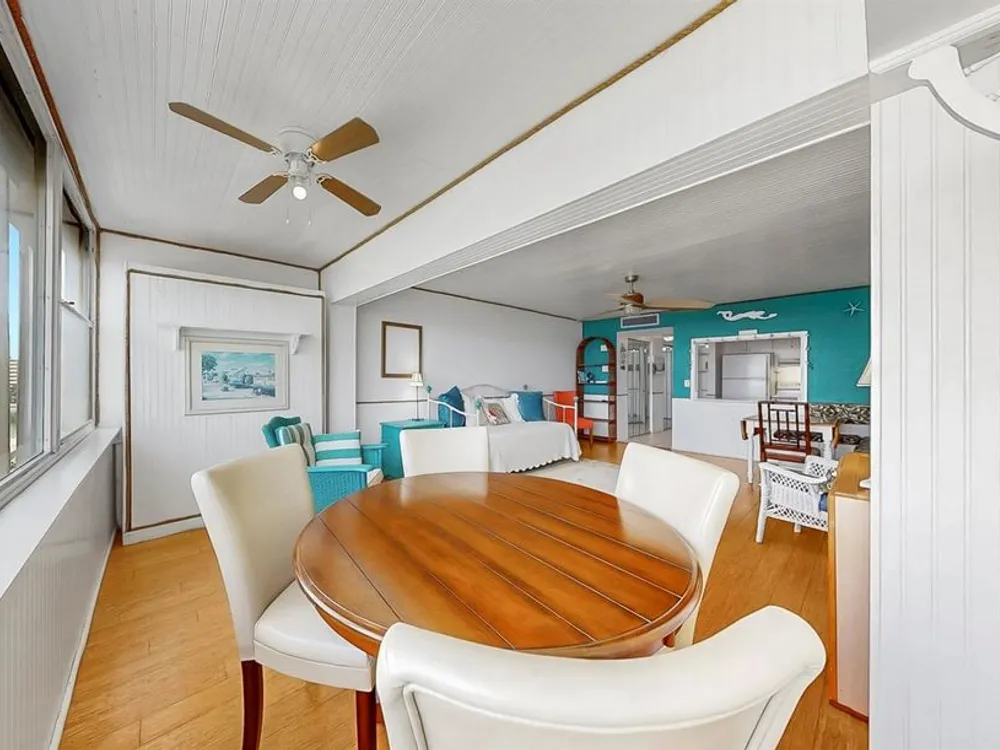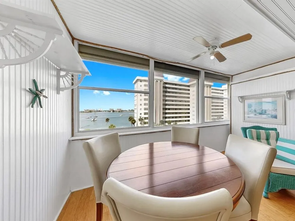 Catch every sunset from this rare waterfront studio with wide open western views that feel like a private postcard. Inside you’ll find a bright and breezy layout with a full-size kitchen, beadboard ceiling, bamboo flooring, and a fun Key West flair. The windows have been replaced and there are storm shutters for peace of mind. Mechanical updates include a water heater from 2016 and an A C from October 2019. Sold fully furnished with a queen Murphy bed so you can maximize space for relaxing or entertaining. This Housing for Older Persons Act compliant 55 plus waterfront community is gated with 24 hour security and loaded with amenities. Enjoy two sparkling pools that are cooled in summer and heated in winter, fishing docks, covered picnic shelters, and barbecue grills. The clubhouse hosts stage shows, potlucks, dances, bingo, darts, cards, and plenty of games, plus tennis, pickleball, shuffleboard, water aerobics, saunas, and a fitness center led by a full-time social director. Stroll around the lagoon and take in the tropical landscaping. Walk to shopping, Publix, restaurants, banking, and the American Legion. The beautiful Gulf beaches are about 1 mile away, with Seminole City Center and the VA hospital just minutes away. Covered boat slips and kayak space are available for rent when offered. Come live your dream on the water.