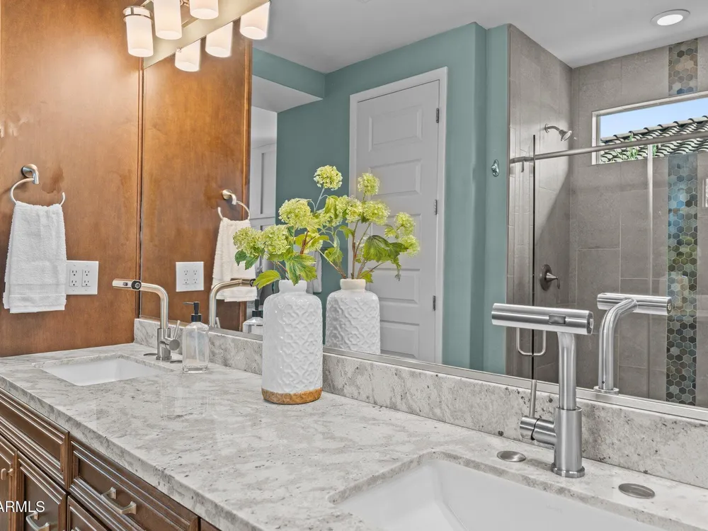 $150K + in UPGRADES! Quartz Kitchen Counters*Granite Counters*Tile & Carpet Upgrades*Profile Appliances*Built in Cabinet Package*Tile Backsplash*Ceramic Tile in both Showers*Plantation Shutters* 5 Ceiling Fans w Smart Switches*8 Ft Rockport Doors*Custom Accent Walls*Powder Room UPgrades*Side door for Garage* 22K SOLAR OWNED! Snake Screen Fencing*Irrigation System*Telescopic Glass Patio Doors*Garage Extension* Paved Drive w 4 Ft width extension*Front & Back Porch extended Pavers*SMART HOME*2 MASTER SPLIT SUITES w/ Large ENSUITE BATHS*1/2 GUEST BATH*OFFICE*TRASH ENCLOSURE*PAVER ACCESS* Must see the INVESTMENTS made to this beautiful home! Open for TOURs TODAY-