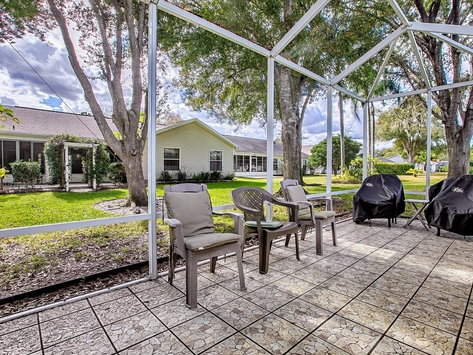 “Move in with confidence—big-ticket updates already done!” Beautifully maintained 2-bedroom, 2-bath home with bonus room located on a desirable corner lot in The Plantation at Leesburg, a premier 55+ gated community. Pride of ownership is evident throughout this well-cared-for residence. Major upgrades include a new roof (July 2023), new A/C (March 2024), and a new refrigerator (2025), offering peace of mind for years to come. The home features a split floor plan, ideal for privacy when hosting guests, and a bright kitchen with a dedicated dining area. The spacious owner’s suite includes a full bathroom and a large walk-in closet. The versatile bonus room is perfect for a den, home office, or craft room. Enjoy Florida living from the screened-in lanai, overlooking beautifully maintained landscaping. Built-in cabinetry in the garage provides ample additional storage. The Plantation at Leesburg is renowned for its resort-style amenities and active social lifestyle, including: Three clubhouses Three pools and spas/hot tubs Two championship golf courses Tennis, pickleball, and softball facilities Two state-of-the-art fitness centers Scenic walking trails Numerous weekly activities and clubs Residents can take their golf cart to the on-site restaurant and lounge, offering weekly entertainment, karaoke, bar bingo, and a variety of popular dinners and appetizers.Low HOA • 24-hour guard-gated security • On-site management
