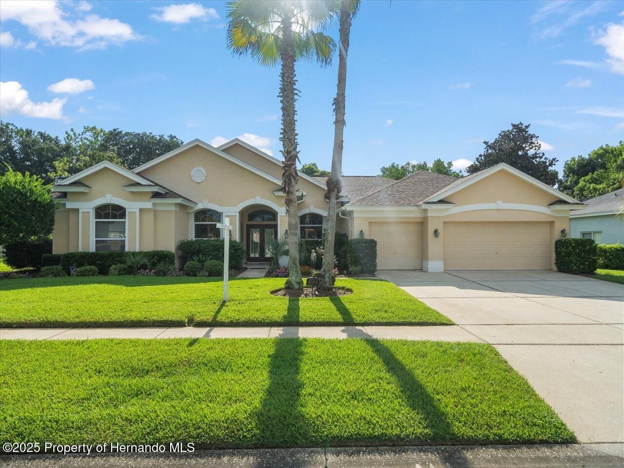 Best Value in Silverthorn! Wonderful and spacious with 2804 sf of living area, this 4 bedroom plus den 3 bath 3 car garage home with heated pool and spa is located in the beautiful gated golf community of Silverthorn. Many updates including the kitchen with granite countertops, large pantry, new roof and HVAC 2023, magnificent landscaping on this private lot, gorgeous lanai area and much more. Community amenities include a community center, tennis, pickleball, basketball courts, fitness center, pool, clubhouse, restaurant and bar. Conveniently located near loads of shopping, excellent restaurants, medical facilities and minutes from the Suncoast Parkway for quick access to Tampa International Airport, St. Pete and Clearwater. Make an appointment today for your Florida dream home.