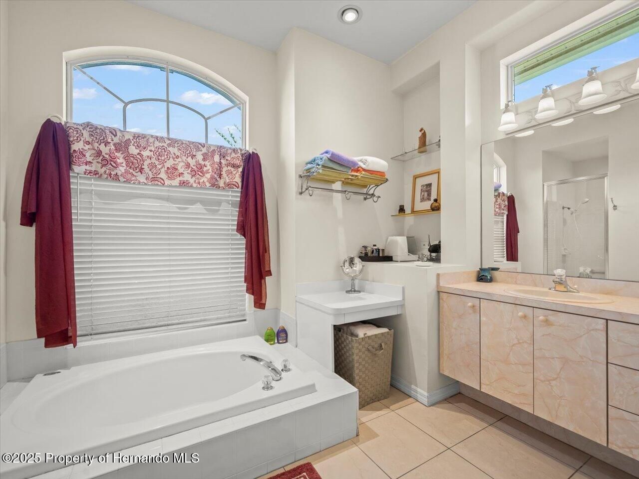 - Breakfast Bar, Breakfast Nook, Ceiling Fan(s), Double Vanity, Entrance Foyer, His and Hers Closets, Pantry, Primary Bathroom -Tub with Separate Shower, Vaulted Ceiling(s), Walk-In Closet(s), Split Plan
