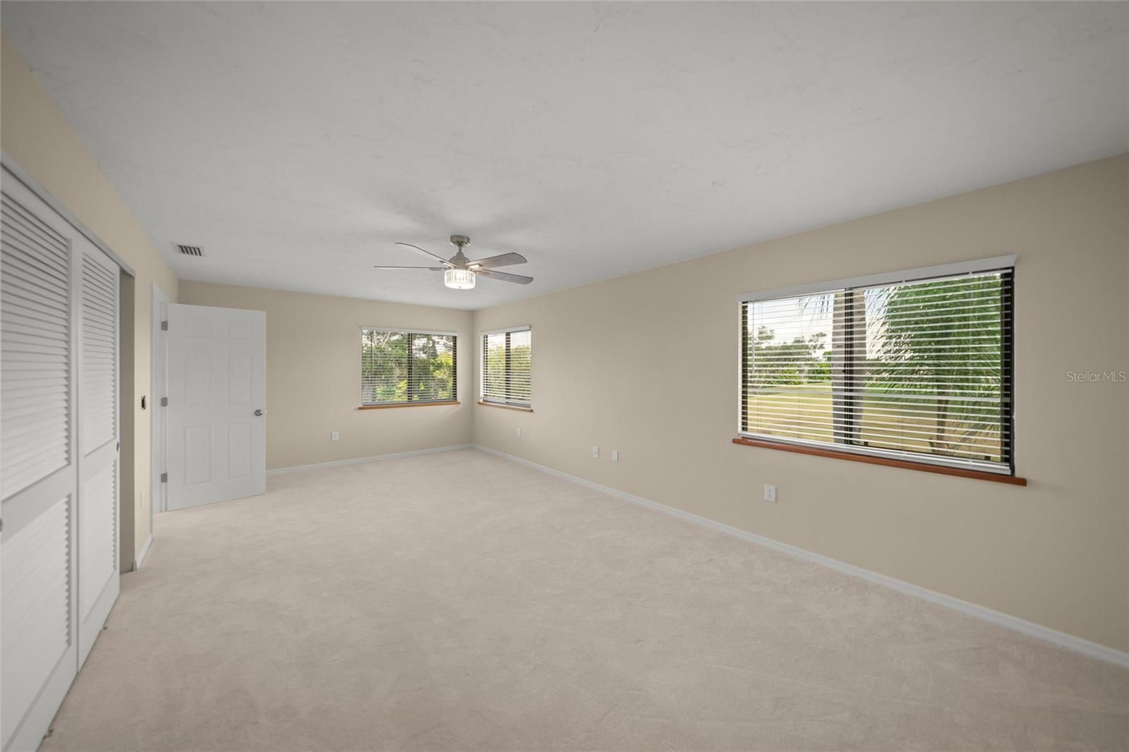 - Built-in Features, Cathedral Ceiling(s), Ceiling Fan(s), Eat-in Kitchen, High Ceilings, Open Floorplan, Main Level Primary, Solid Surface Counters, Solid-Wood Cabinets, Split Bedrooms, Stone Counters, Vaulted Ceiling(s), Walk-In Closet(s), Window Treatments