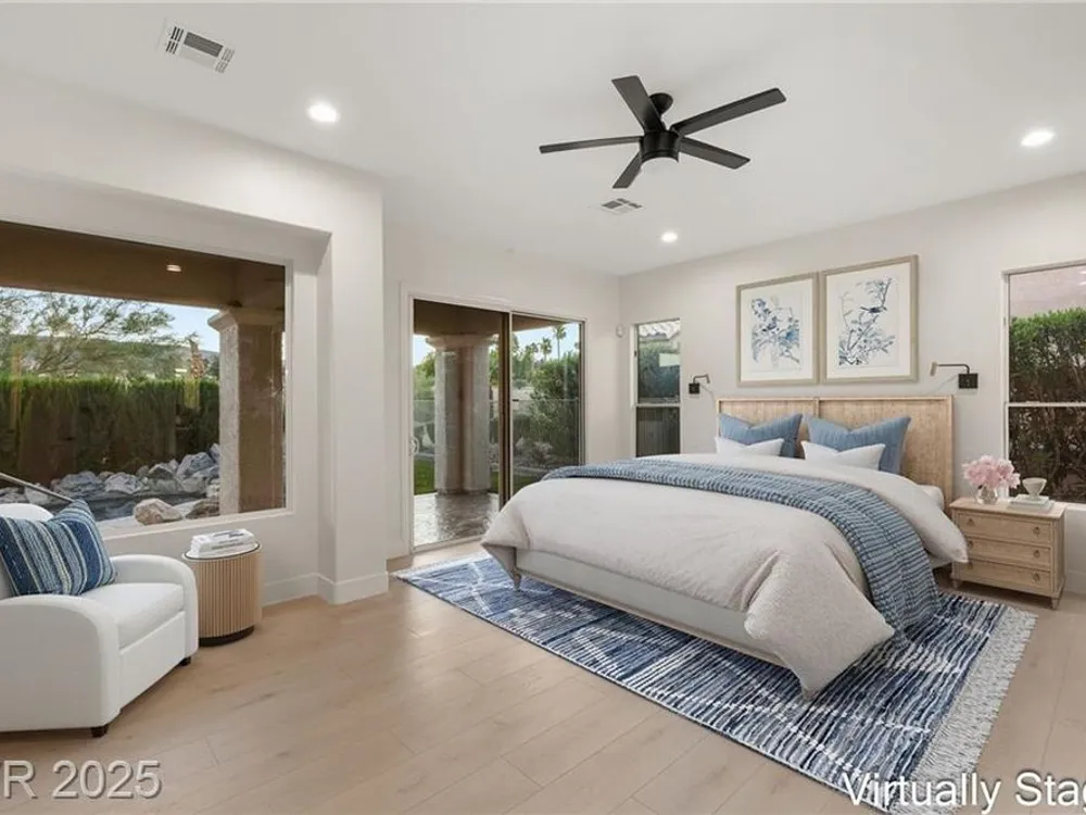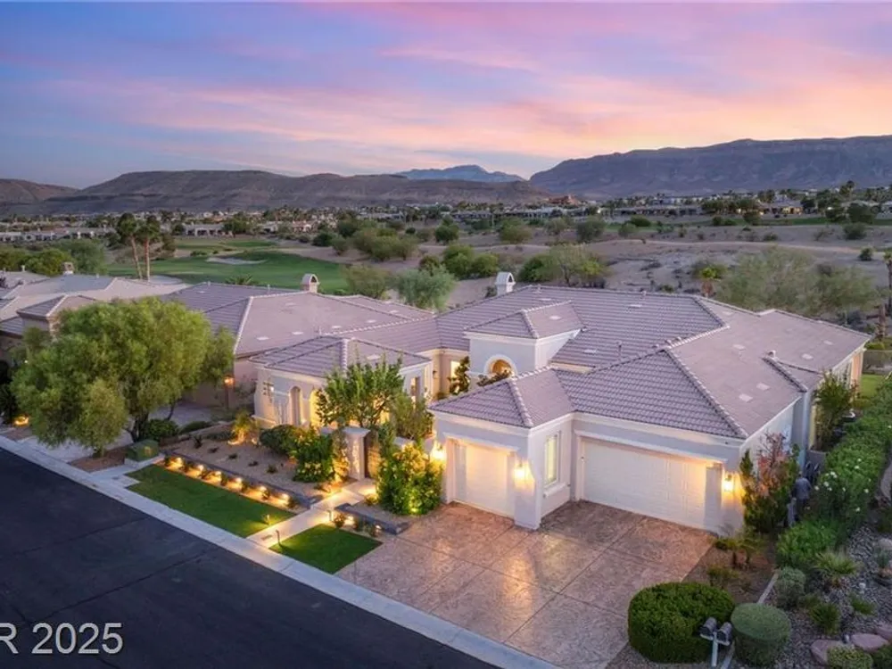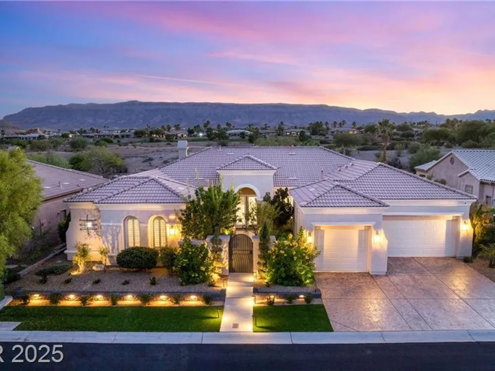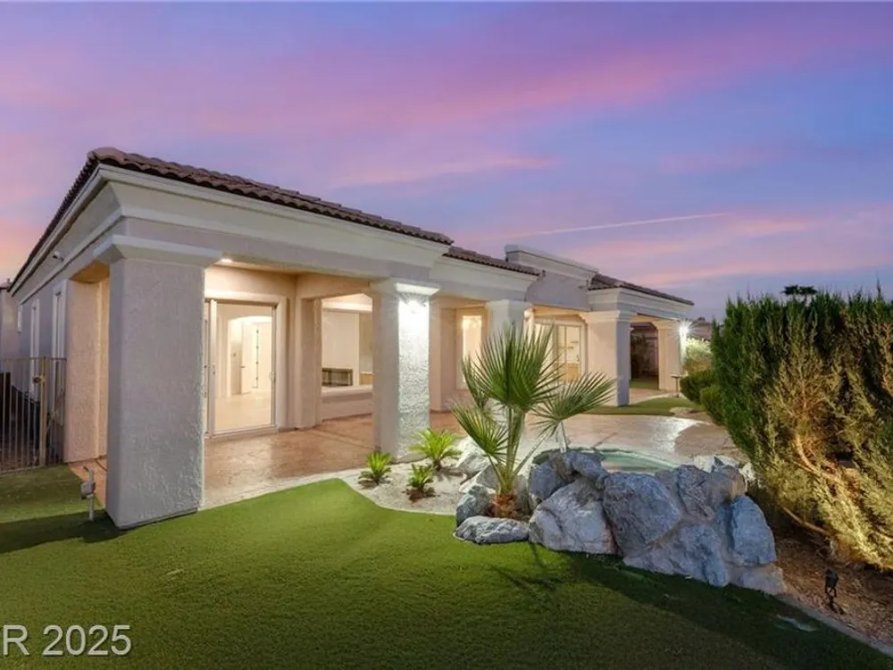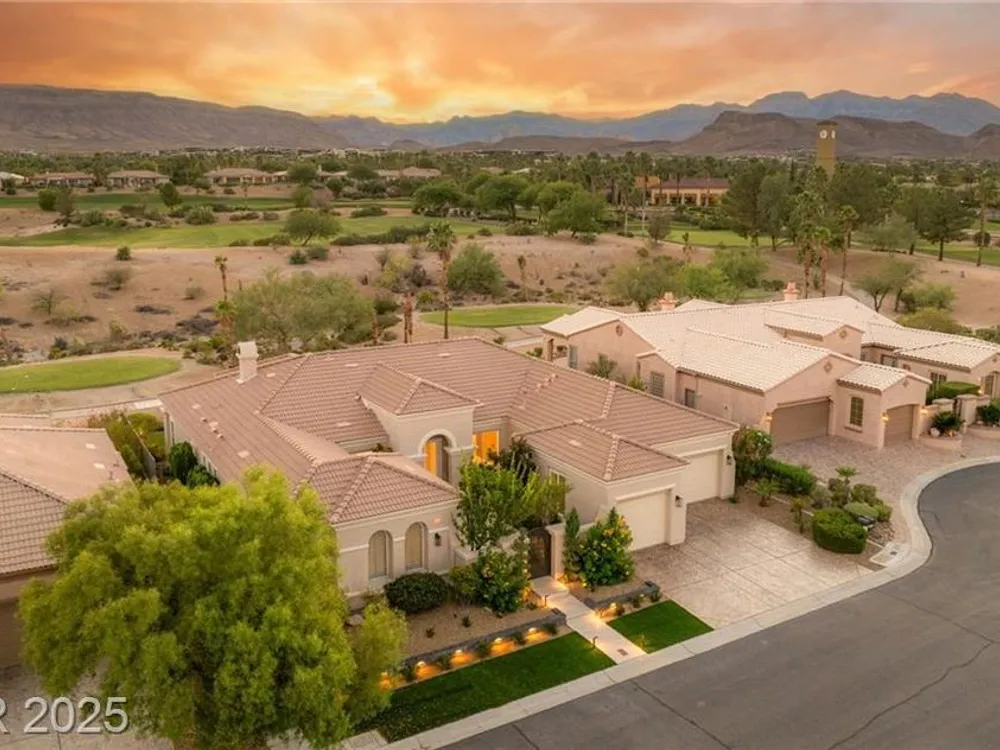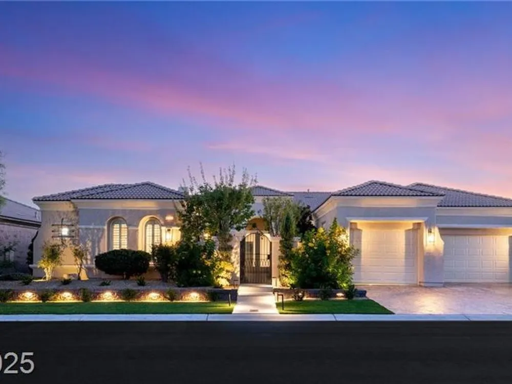 Welcome to 4555 Riva de Romanza, a transitional single-story retreat located on a prime cul-de-sac golf course lot behind the guard gates of Siena in Summerlin. This completely renovated & beautifully appointed 3-bedroom 4 bath offers breathtaking views of the golf course & mountain vistas. The open-concept layout is perfect for entertaining, featuring a gourmet kitchen with GE Café appliances, custom two-tone café & white cabinetry, quartz counters, & gold accented hardware. Enjoy expansive open living spaces w/ large stone flooring & luxury wood plank,blending style & comfort.The home features smart home technology, with a security system linked to your smartphone.The spa-inspires bathrooms are meticulously designed with high-end imported tiles & designer materials.The backyard oasis, where soothing waterfall spa and golf course views make for the perfect relaxation or gathering space. Siena residents enjoy exclusive access to resort-style amenities, golf course,& 24-hour security!