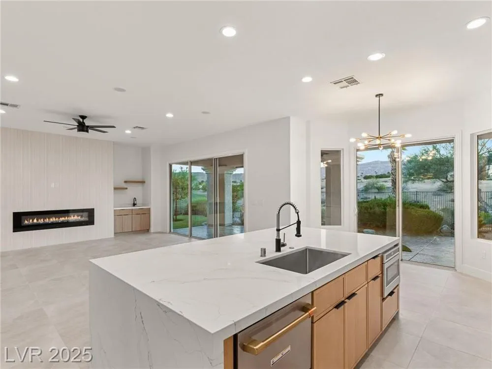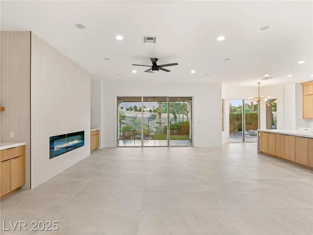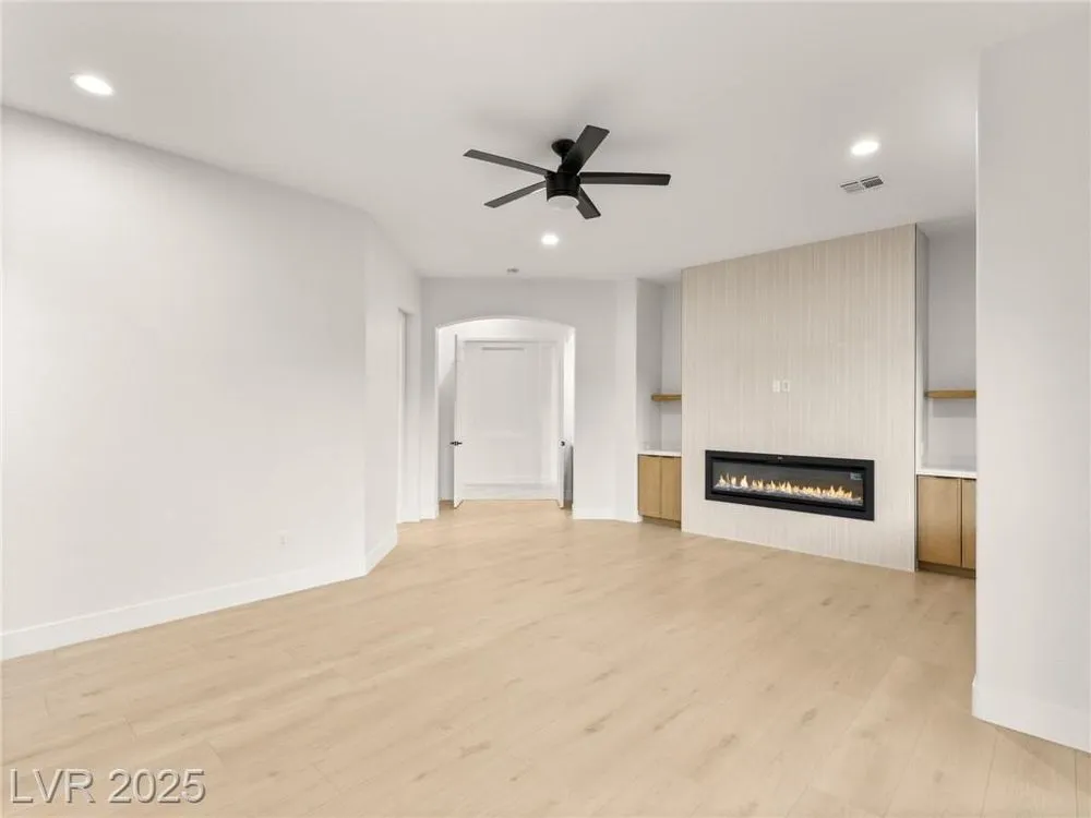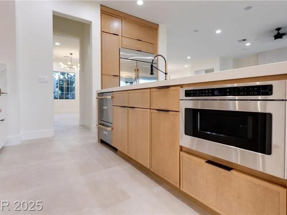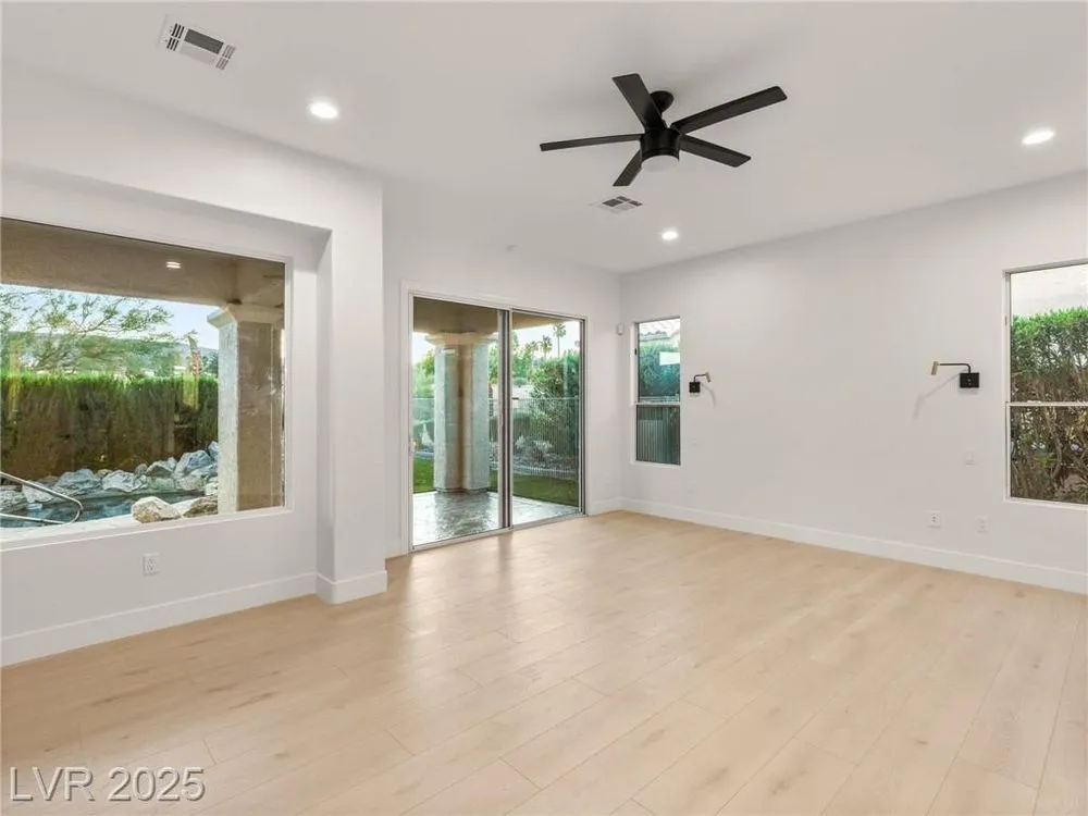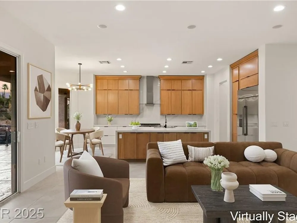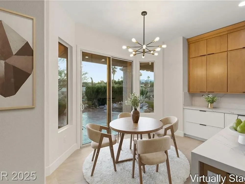 Welcome to 4555 Riva de Romanza, a transitional single-story retreat located on a prime cul-de-sac golf course lot behind the guard gates of Siena in Summerlin. This completely renovated & beautifully appointed 3-bedroom 4 bath offers breathtaking views of the golf course & mountain vistas. The open-concept layout is perfect for entertaining, featuring a gourmet kitchen with GE Café appliances, custom two-tone café & white cabinetry, quartz counters, & gold accented hardware. Enjoy expansive open living spaces w/ large stone flooring & luxury wood plank,blending style & comfort.The home features smart home technology, with a security system linked to your smartphone.The spa-inspires bathrooms are meticulously designed with high-end imported tiles & designer materials.The backyard oasis, where soothing waterfall spa and golf course views make for the perfect relaxation or gathering space. Siena residents enjoy exclusive access to resort-style amenities, golf course,& 24-hour security!