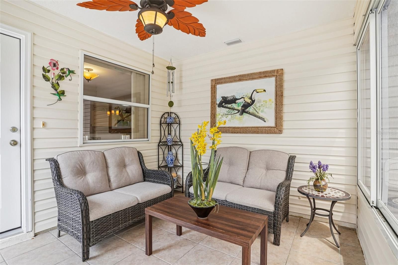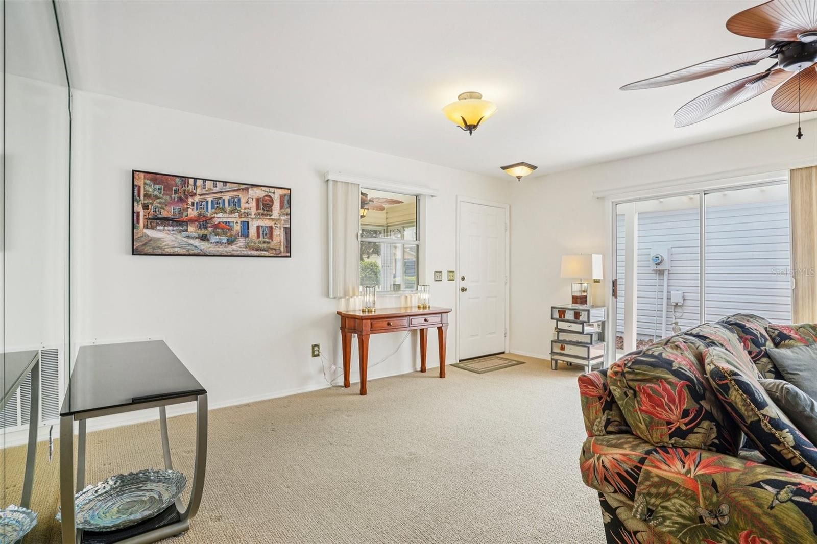 Move-in ready TURNKEY Colony patio villa with NO BOND! Features a GLASS-enclosed lanai that is under A/C, has sliding panels and tiled flooring so great regardless the weather for both morning and evening enjoyment. Many updates to this home: NEW Roof 2024, UPDATED master bath 2025, NEW garage door 2026, NEW microwave/oven/washer/dryer 2024, NEW water softener 2026, A/C 2019, water heater 2018. Enjoy lower electric bills with 2025 installed solar panels on a low, simple monthly payment plan. Bright, open floor plan with solar tubes throughout, eat-in kitchen, spacious living room and bedrooms. You will love the comfort and convenience of the INSIDE laundry. Want to sit outside, you can do that too on your patio under your pergola. Your garage fits a full-size vehicle plus a golf cart. Everything you in the home stays, this is a great turnkey offering and ready for you to move in or begin renting right away! This comfy villa is close in proximity to Lake-Sumter Landing and Spanish Springs Town Centers, perfect for all The Villages fun, recreation and lifestyle. Home is vacant, easy to have a private showing today!