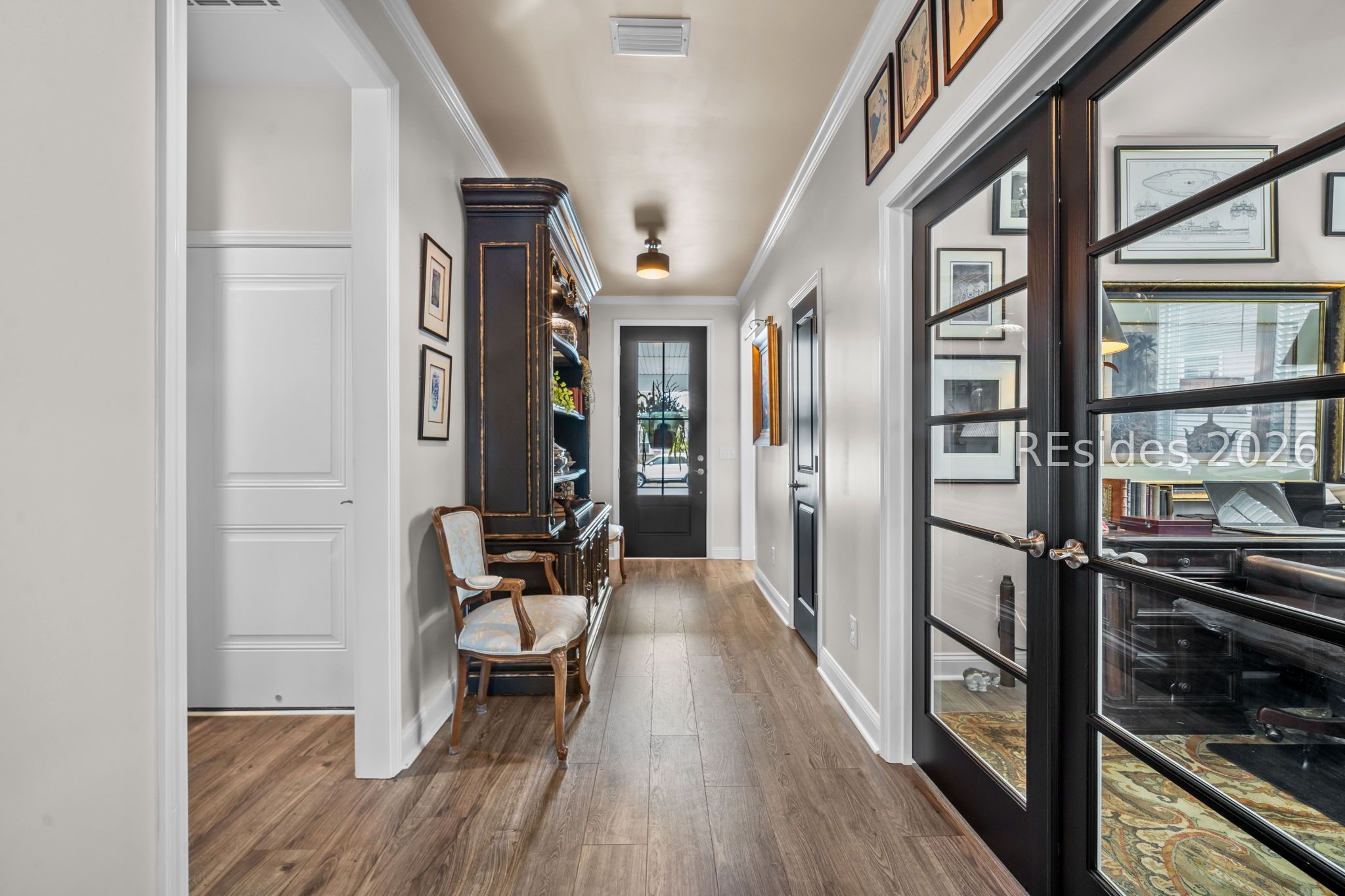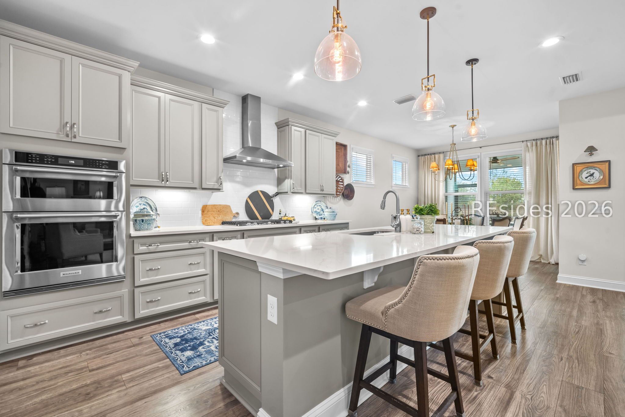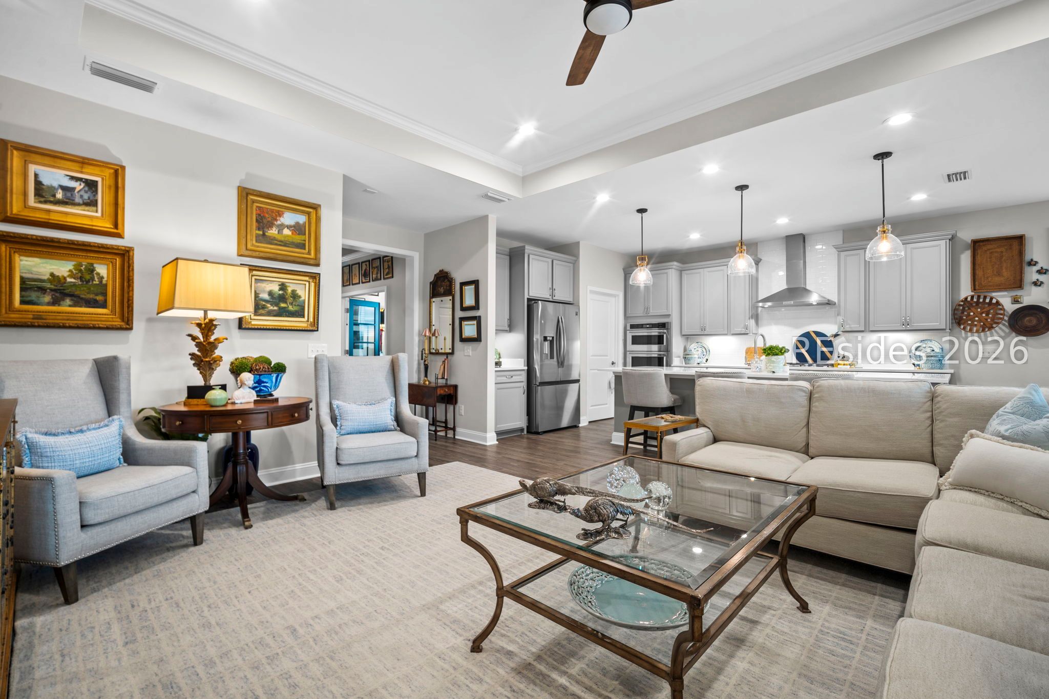 Enjoy a prime location just steps from the brand-new amenity center in Argent West and move right into this stunning Prestige Model home. This beautifully appointed residence offers two bedrooms, two-and-a-half baths, and a versatile flex room. The spacious working kitchen features stone gray cabinetry, quartz countertops, Kitchen Aid appliances, under-cabinet lighting, and an oversized pantry. The gathering room opens to an extended screened porch and additional patio space, perfect for indoor-outdoor living. Both bedrooms include private en suite baths with tile flooring and raised vanities, while the custom-designed his-and-hers closet by Inspired Closets adds exceptional convenience. Hardwood floors, upgraded lighting, painted accent doors, six ceiling fans, and wood blinds throughout are just a few of the many upgrades. A large laundry room and a four-foot extended garage with built-in cabinetry and an epoxy floor complete this exceptional home. Why wait to build when this one truly has it all?