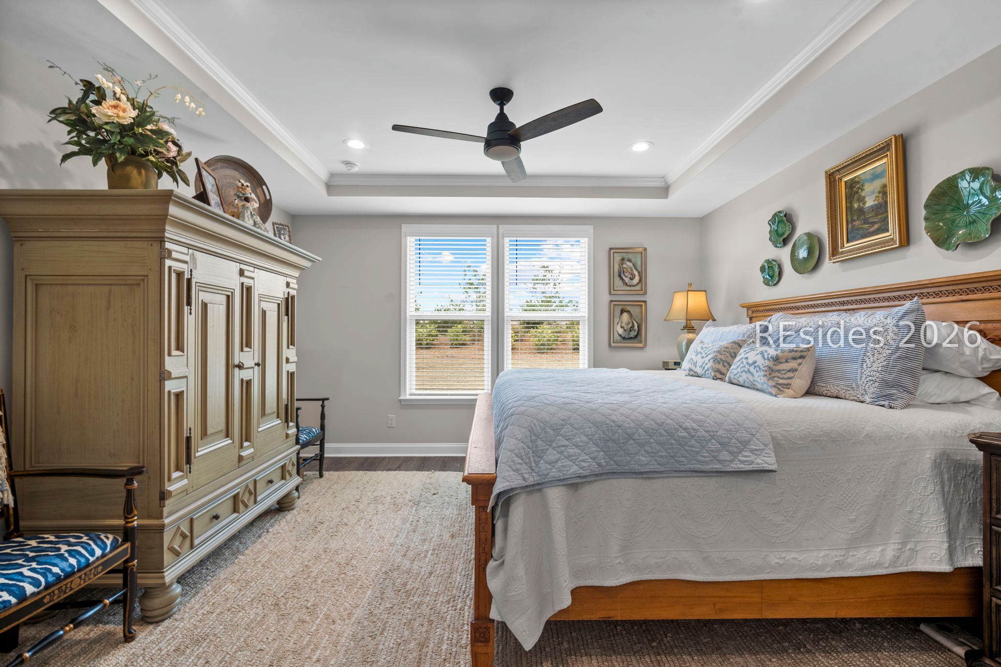 - Tray Ceiling(s), Ceiling Fan(s), Main Level Primary, Multiple Primary Bathrooms, Smooth Ceilings, Separate Shower, Window Treatments, Entrance Foyer, Pantry