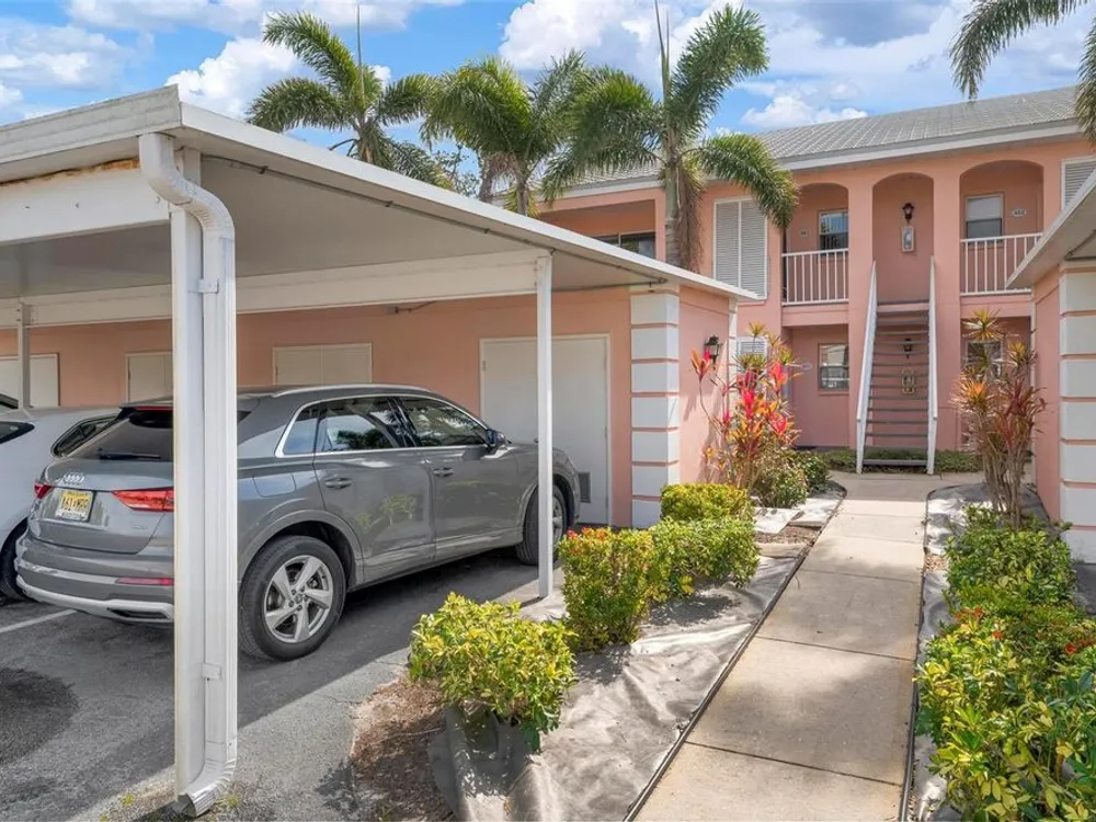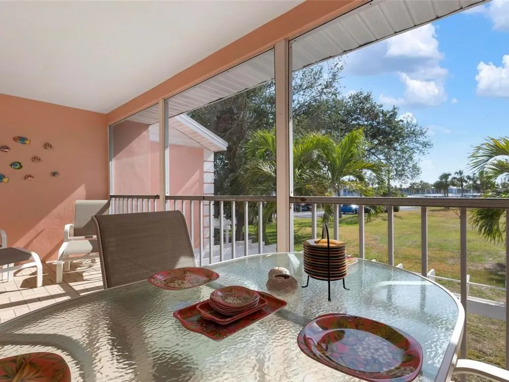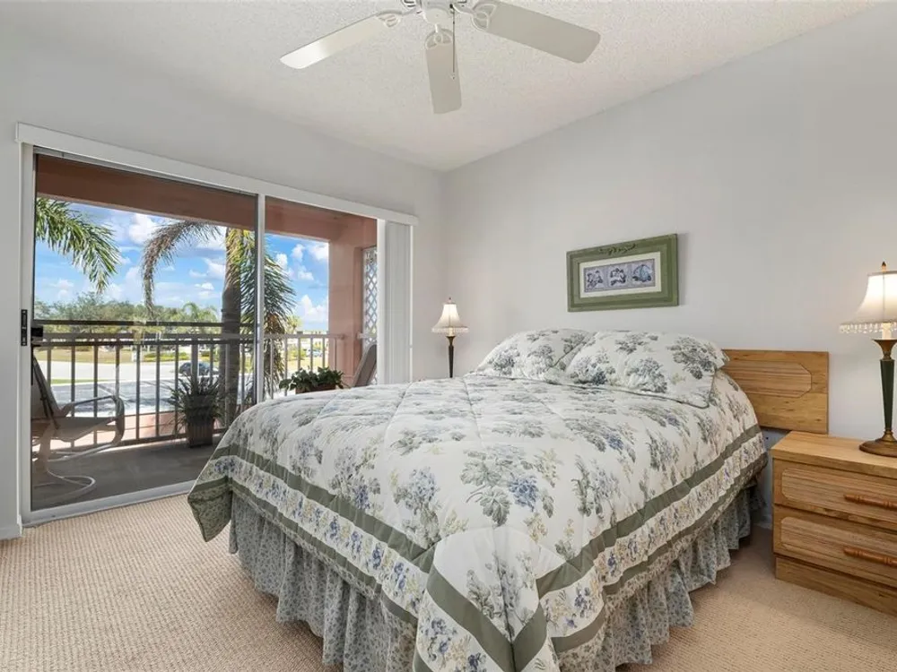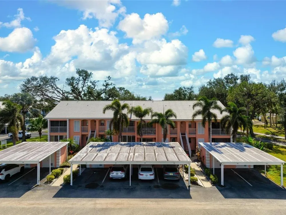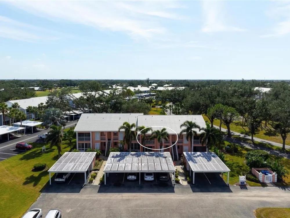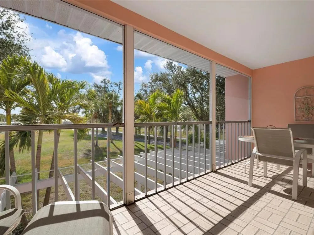 Seller wants to make a deal! Brand new Air Conditioner with transferable warranties installation is scheduled for March 20, 2025. The hot water heater was installed approximately two years ago, new metal roofs were completed in 2024. Move into this pleasant condo with southern tropical views of Farmington Vistas through the picturesque palm trees and make it your home in paradise. If sandy beaches, biking, boating, fishing, golf, tennis/pickleball, professional sports, cultural venues, concerts under the stars and socializing with friends, suits your lifestyle then you will be delighted with this sun-kissed 2 bedroom, 2 bath condo offered TURN-KEY FURNISHED. This maintenance-free condo enjoys vaulted ceilings in the main living area with rays of sunlight throughout courtesy of the southern exposure. Guests will love the privacy of the 2nd bedroom with their own private screened balcony looking out over tropical landscape. The new wind resistant metal roofs are now complete throughout the complex providing peace of mind to you and your neighbors. At days end prepare dinner at the barbeque station conveniently placed outside your building and serve dinner on the screened lanai basking in the beautiful hues of the setting sun, warm Gulf breezes and the evening serenade of Floridian wildlife while making plans for the next day. Just steps away, is the Jr Olympic sized heated pool, community clubhouse for a refreshing dip or engaging with your neighbors at your leisure. Membership at the Country Club is optional but offers 2 golf courses, tennis, pickleball, fitness, bocce ball, a monthly calendar filled with social events and delectable dining. The well established, amenity rich Plantation development is conveniently located just minutes to 3 public beaches, Downtown Venice, biking trails, Cool Today Park (home of the Braves spring training) and numberous shopping and dining locales. All you need is your clothes, toothbrush and a few groceries to start enjoying paradise.
