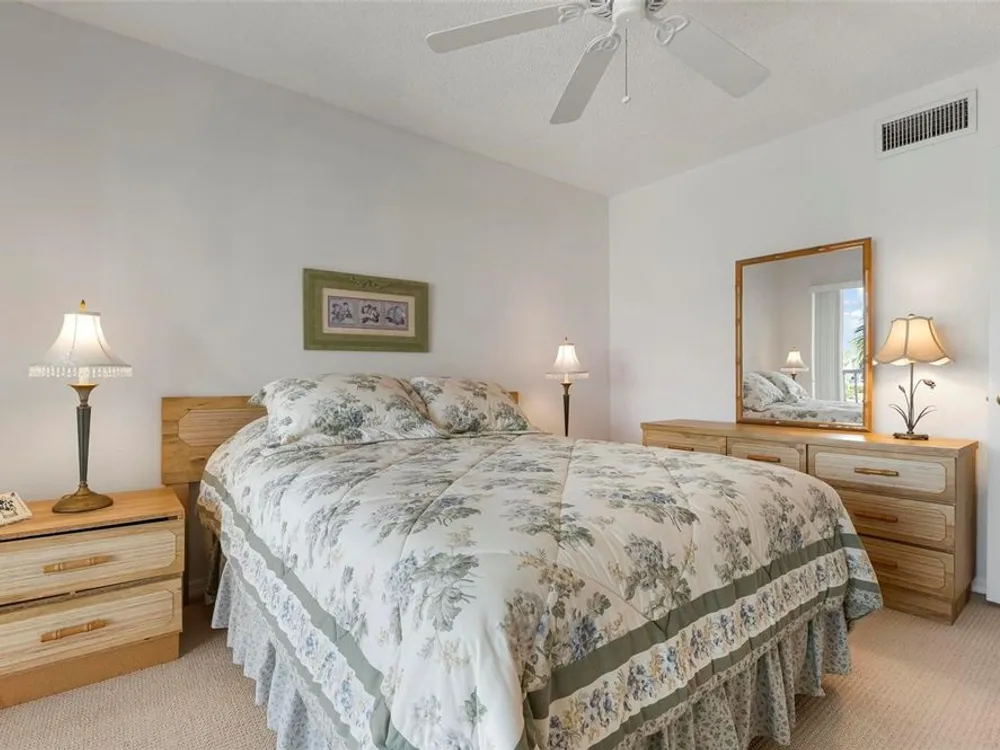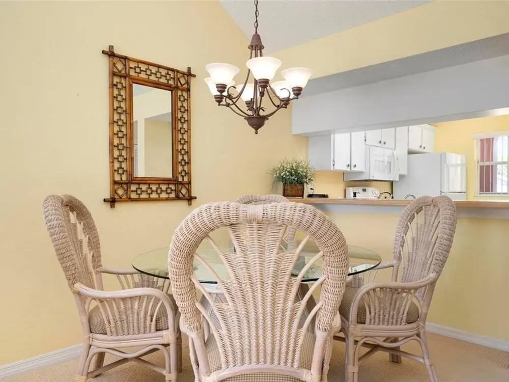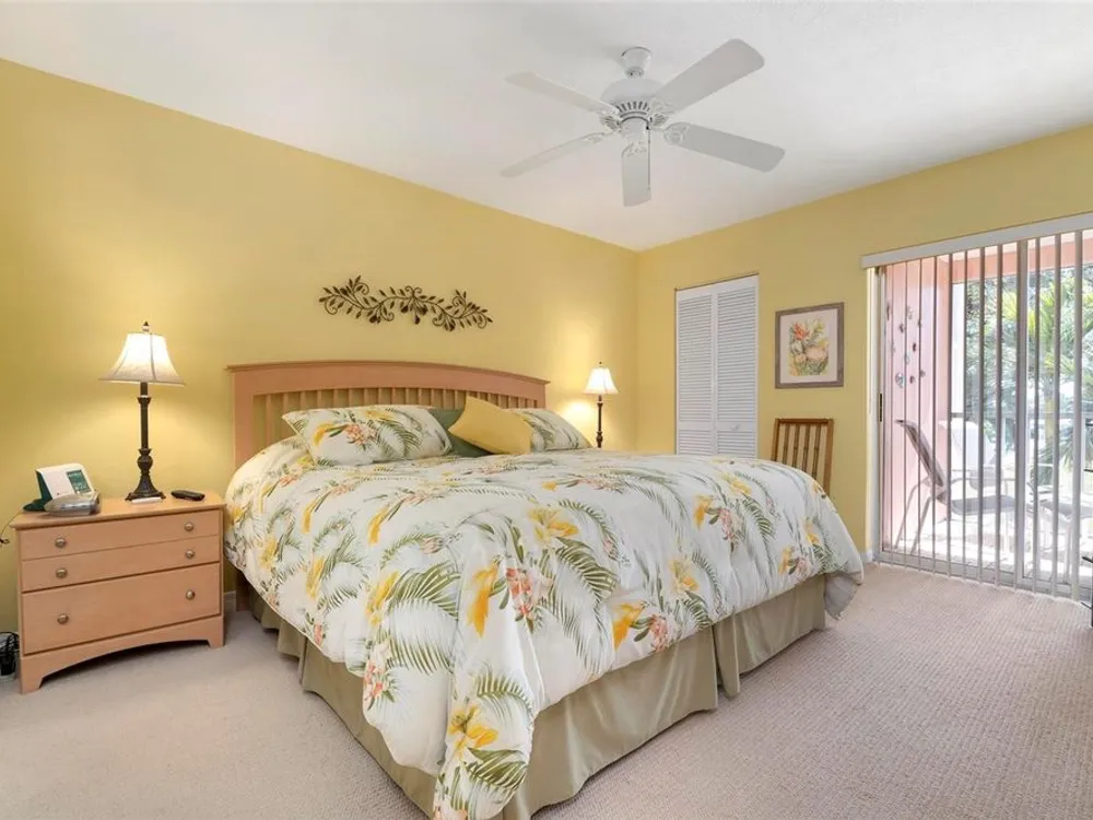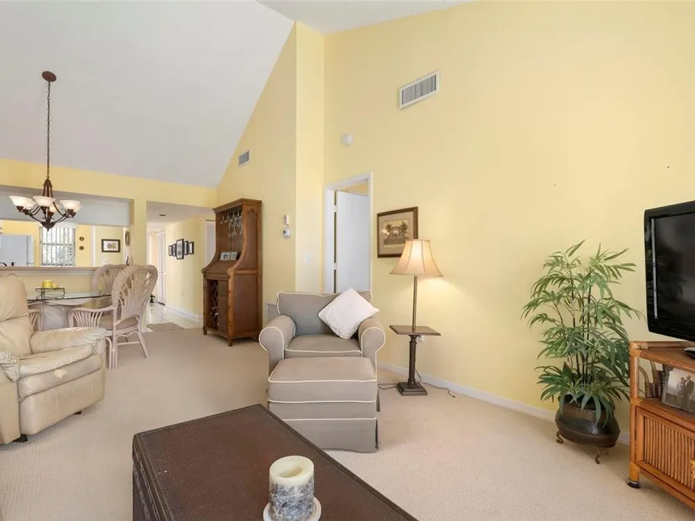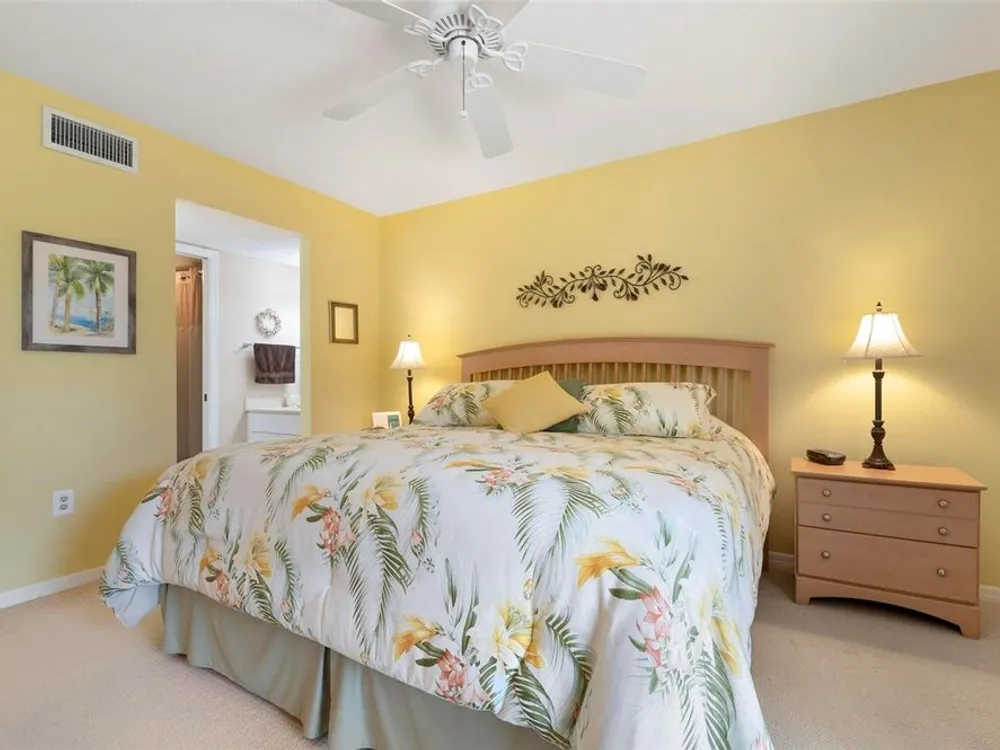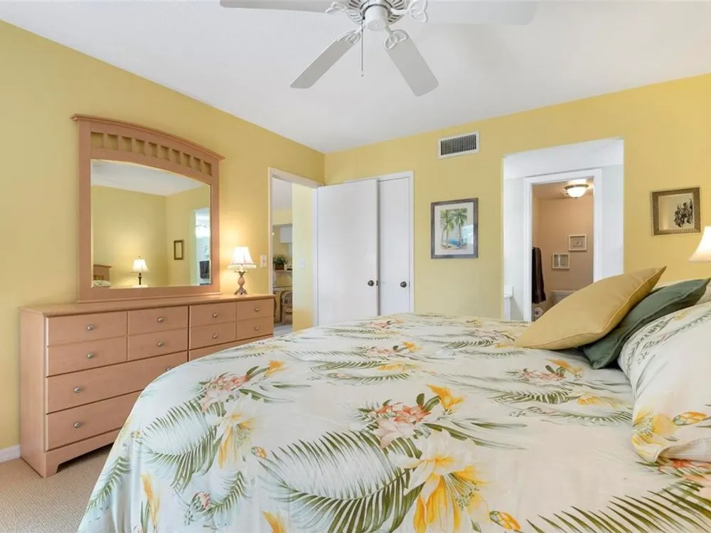 Seller wants to make a deal! Brand new Air Conditioner with transferable warranties installation is scheduled for March 20, 2025. The hot water heater was installed approximately two years ago, new metal roofs were completed in 2024. Move into this pleasant condo with southern tropical views of Farmington Vistas through the picturesque palm trees and make it your home in paradise. If sandy beaches, biking, boating, fishing, golf, tennis/pickleball, professional sports, cultural venues, concerts under the stars and socializing with friends, suits your lifestyle then you will be delighted with this sun-kissed 2 bedroom, 2 bath condo offered TURN-KEY FURNISHED. This maintenance-free condo enjoys vaulted ceilings in the main living area with rays of sunlight throughout courtesy of the southern exposure. Guests will love the privacy of the 2nd bedroom with their own private screened balcony looking out over tropical landscape. The new wind resistant metal roofs are now complete throughout the complex providing peace of mind to you and your neighbors. At days end prepare dinner at the barbeque station conveniently placed outside your building and serve dinner on the screened lanai basking in the beautiful hues of the setting sun, warm Gulf breezes and the evening serenade of Floridian wildlife while making plans for the next day. Just steps away, is the Jr Olympic sized heated pool, community clubhouse for a refreshing dip or engaging with your neighbors at your leisure. Membership at the Country Club is optional but offers 2 golf courses, tennis, pickleball, fitness, bocce ball, a monthly calendar filled with social events and delectable dining. The well established, amenity rich Plantation development is conveniently located just minutes to 3 public beaches, Downtown Venice, biking trails, Cool Today Park (home of the Braves spring training) and numberous shopping and dining locales. All you need is your clothes, toothbrush and a few groceries to start enjoying paradise.