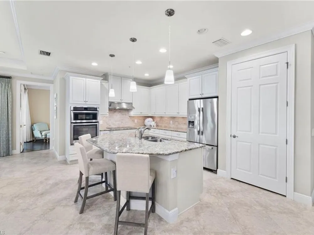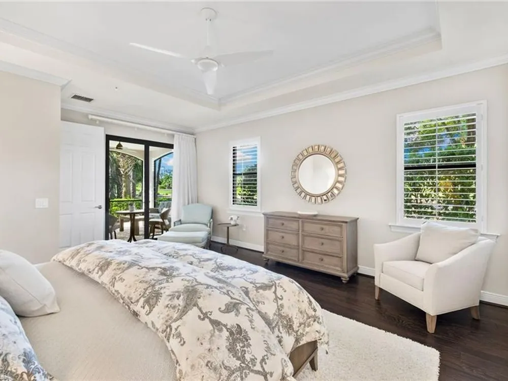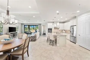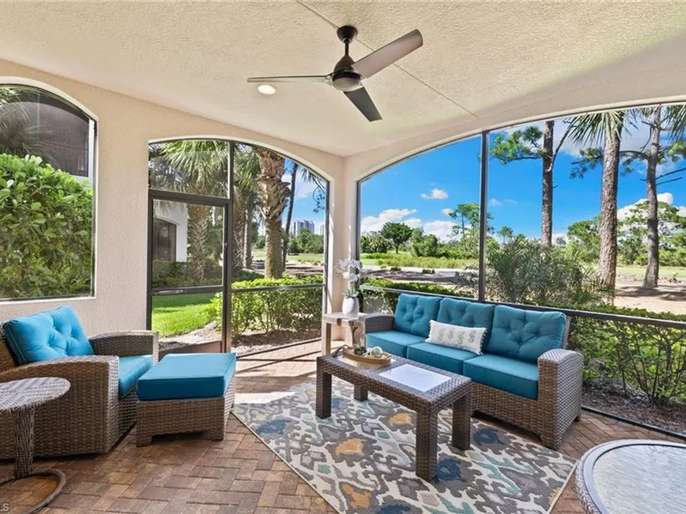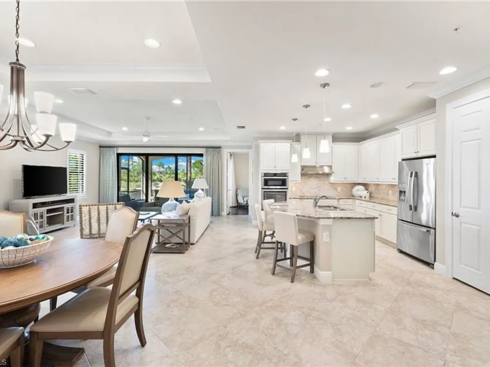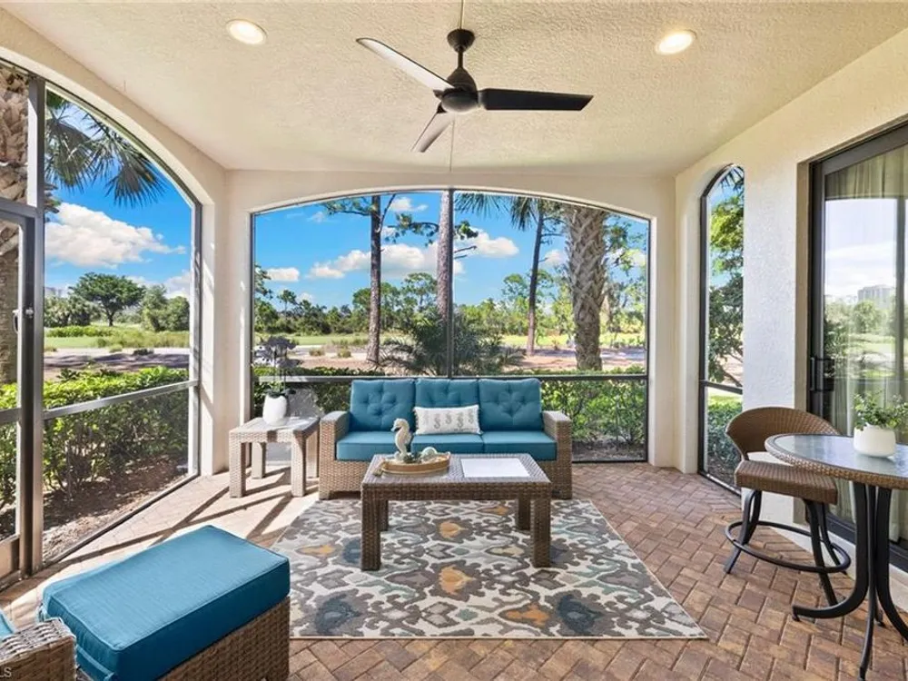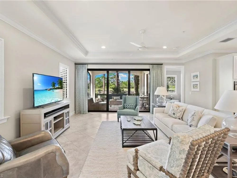 Welcome to Terzetto at The Colony – an exclusive gated community designed for those who seek the perfect blend of luxury, privacy and convenience! This pristine, Never Flooded, impeccably maintained 3-bedroom, 2.5-bath residence showcases the freshness and elegance of a brand-new home and comes Turnkey with high-quality Ethan Allen furnishings. Offering over 2,100 sq. ft. of spacious open-concept living, you’ll be able to appreciate the low-maintenance ease of condominium living with the privacy and comfort of a single-family home. Step inside to find the most elegant details throughout including crown molding, tray ceilings, custom plantation shutters, and custom drapery. The open kitchen features stainless steel appliances, a large island, and an open concept which is perfect for entertaining. The thoughtful split-bedroom floorplan provides privacy for guests, while the high ceilings enhance the airy, light-filled living spaces. Additional upgrades include an Aprilaire dehumidifier, whole-home water conditioning system, impact windows & doors for peace of mind and an epoxy-finished two-car garage. The expansive screened lanai showcases peaceful, breathtaking golf course views, the perfect backdrop for entertaining or quiet relaxation. As a resident of The Colony at Pelican Landing, you’ll enjoy an unrivaled lifestyle with access to exceptional amenities: The exclusive Bay Club, a private, residents-only dining facility on Estero Bay, a 34-acre private Beach Park with boat shuttle access on Big Hickory Island, Community center with attended fitness facilities, tennis and pickleball courts, bocce, sailing, and kayak parks. Optional golf memberships may be available at The Colony Golf & Country Club or The Nest Golf Club. Beyond the gates, convenience abounds: Coconut Point Mall is just 1.5 miles away offering premier shopping and dining, while Southwest Florida International Airport (RSW) is a short drive for effortless travel. This residence is the perfect blend of luxury, comfort, and lifestyle in one of Southwest Florida’s most sought-after communities.