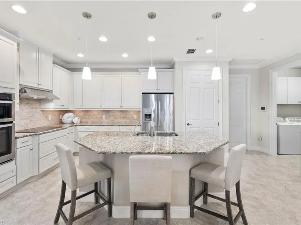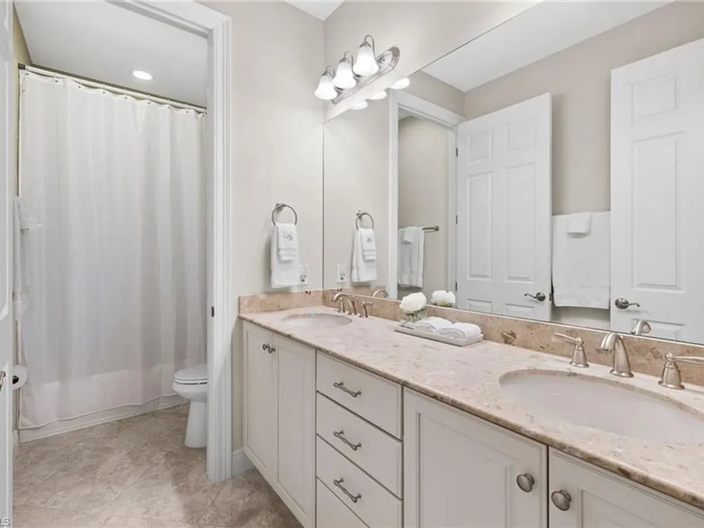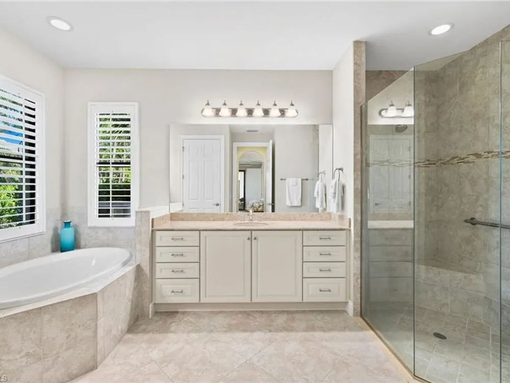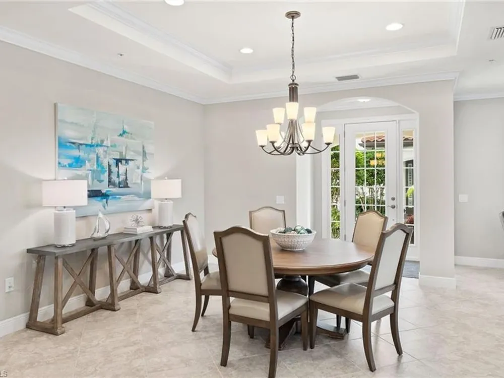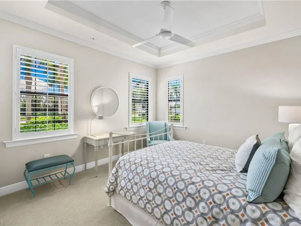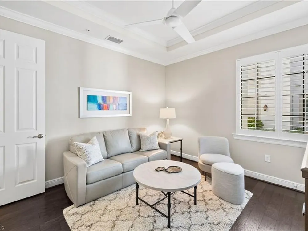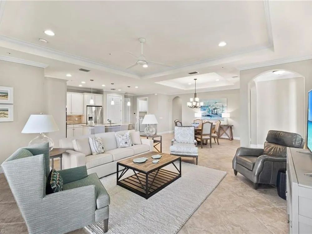 Welcome to Terzetto at The Colony – an exclusive gated community designed for those who seek the perfect blend of luxury, privacy and convenience! This pristine, Never Flooded, impeccably maintained 3-bedroom, 2.5-bath residence showcases the freshness and elegance of a brand-new home and comes Turnkey with high-quality Ethan Allen furnishings. Offering over 2,100 sq. ft. of spacious open-concept living, you’ll be able to appreciate the low-maintenance ease of condominium living with the privacy and comfort of a single-family home. Step inside to find the most elegant details throughout including crown molding, tray ceilings, custom plantation shutters, and custom drapery. The open kitchen features stainless steel appliances, a large island, and an open concept which is perfect for entertaining. The thoughtful split-bedroom floorplan provides privacy for guests, while the high ceilings enhance the airy, light-filled living spaces. Additional upgrades include an Aprilaire dehumidifier, whole-home water conditioning system, impact windows & doors for peace of mind and an epoxy-finished two-car garage. The expansive screened lanai showcases peaceful, breathtaking golf course views, the perfect backdrop for entertaining or quiet relaxation. As a resident of The Colony at Pelican Landing, you’ll enjoy an unrivaled lifestyle with access to exceptional amenities: The exclusive Bay Club, a private, residents-only dining facility on Estero Bay, a 34-acre private Beach Park with boat shuttle access on Big Hickory Island, Community center with attended fitness facilities, tennis and pickleball courts, bocce, sailing, and kayak parks. Optional golf memberships may be available at The Colony Golf & Country Club or The Nest Golf Club. Beyond the gates, convenience abounds: Coconut Point Mall is just 1.5 miles away offering premier shopping and dining, while Southwest Florida International Airport (RSW) is a short drive for effortless travel. This residence is the perfect blend of luxury, comfort, and lifestyle in one of Southwest Florida’s most sought-after communities.